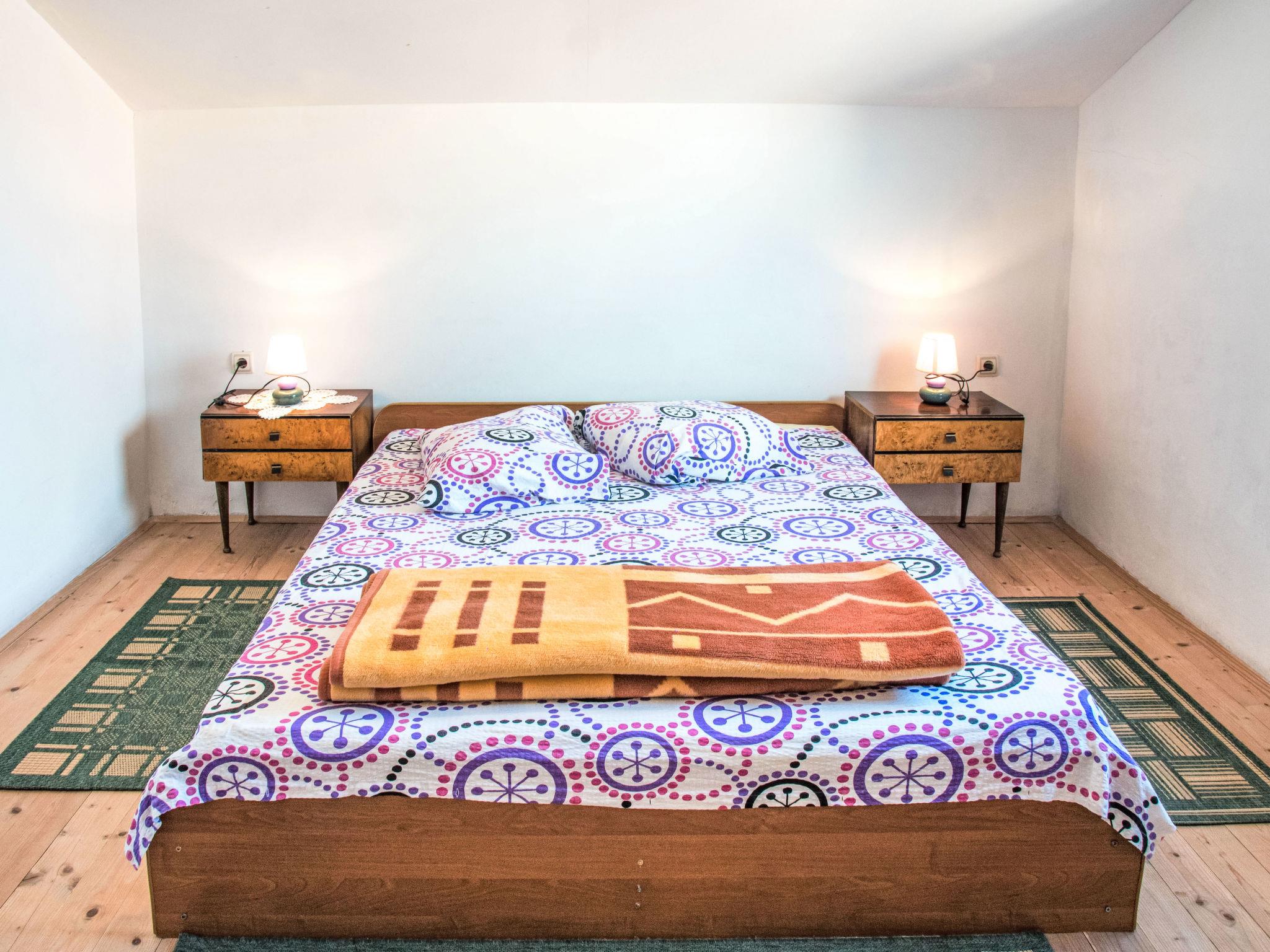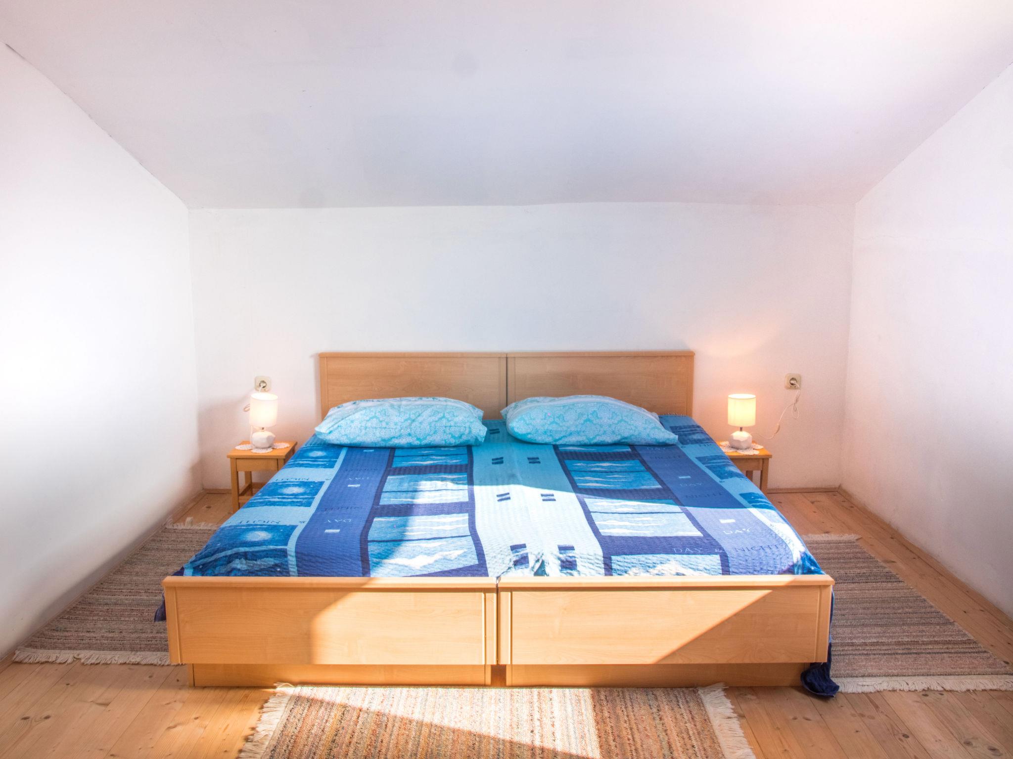 3-room apartment 70 m2 on 2 levels on 2nd floor, south facing position. Living/dining room 20 m2 with 2 sofabeds (110 cm, length 190 cm), satellite TV (flat screen), air conditioning. Exit to the balcony. Open kitchen (2 hot plates, microwave, freezer, electric coffee machine). Shower/WC. No heating option. Top floor: 2 rooms with sloping ceilings, ceiling height 150 - 245 cm, each room with 1 double bed (2 x 90 cm, length 190 cm). Balcony 5 m2. Balcony furniture. Marvellous view of the sea. Facilities: Internet (WiFi, free). Maximum 1 pet/ dog allowed.