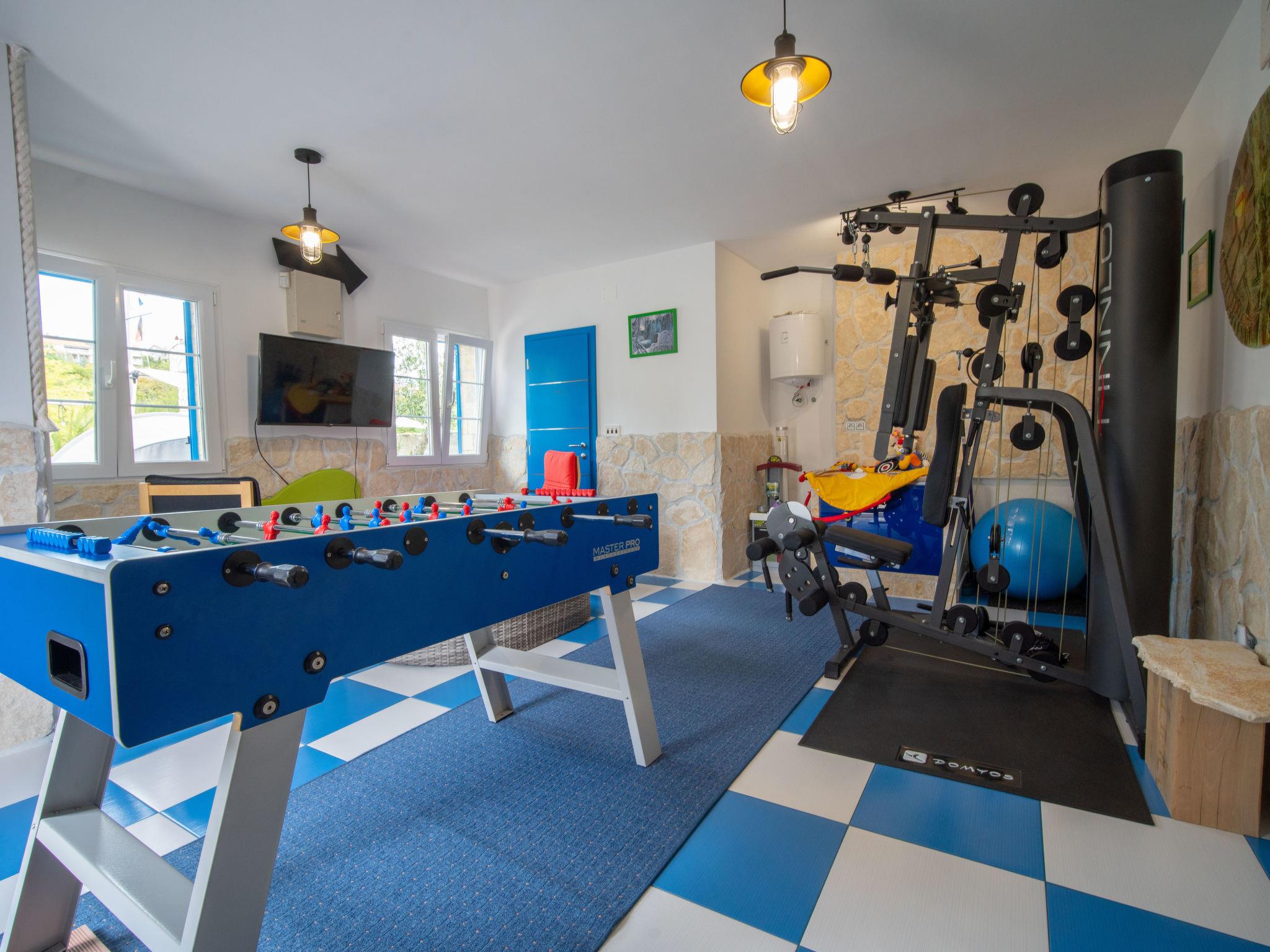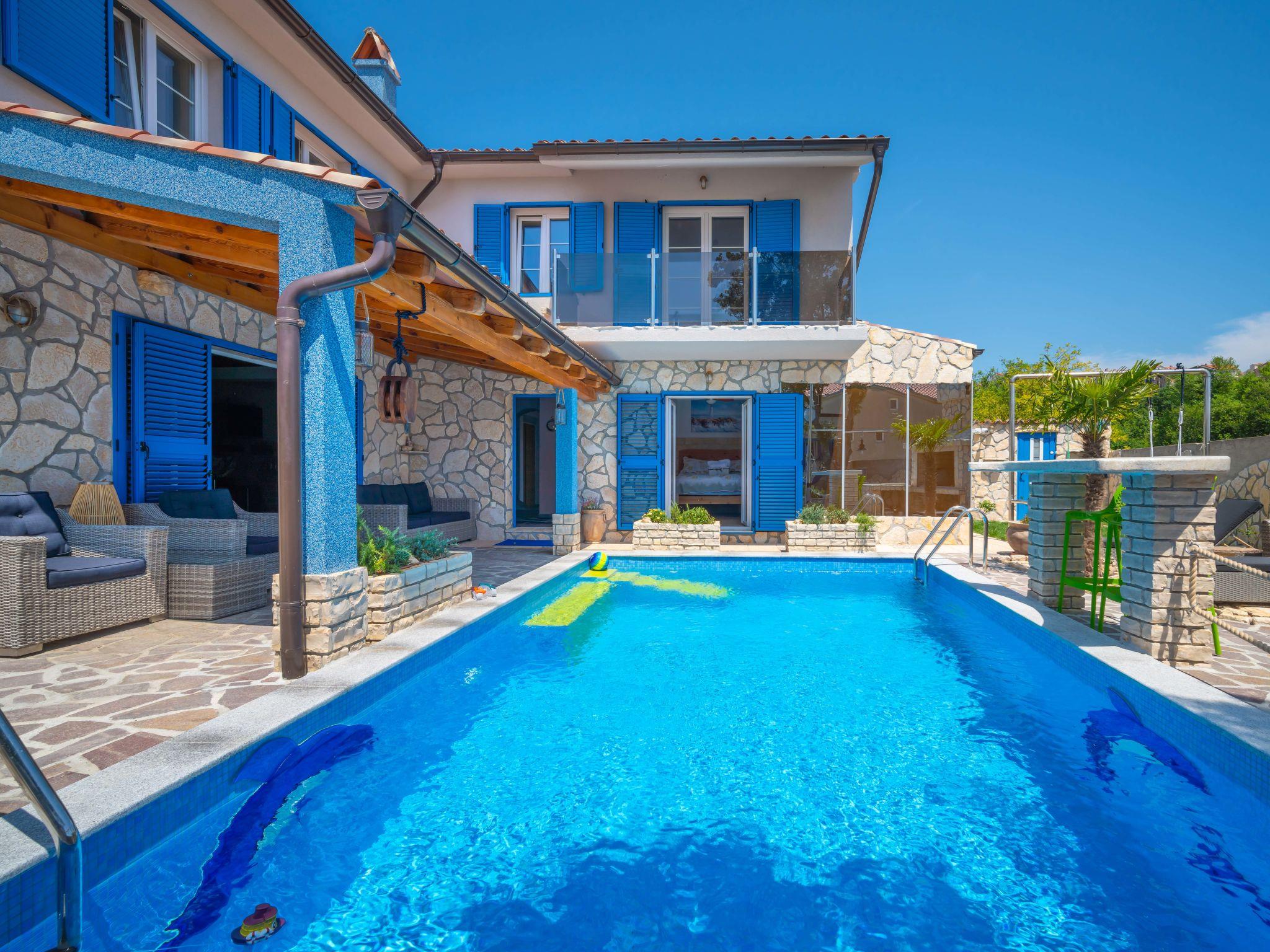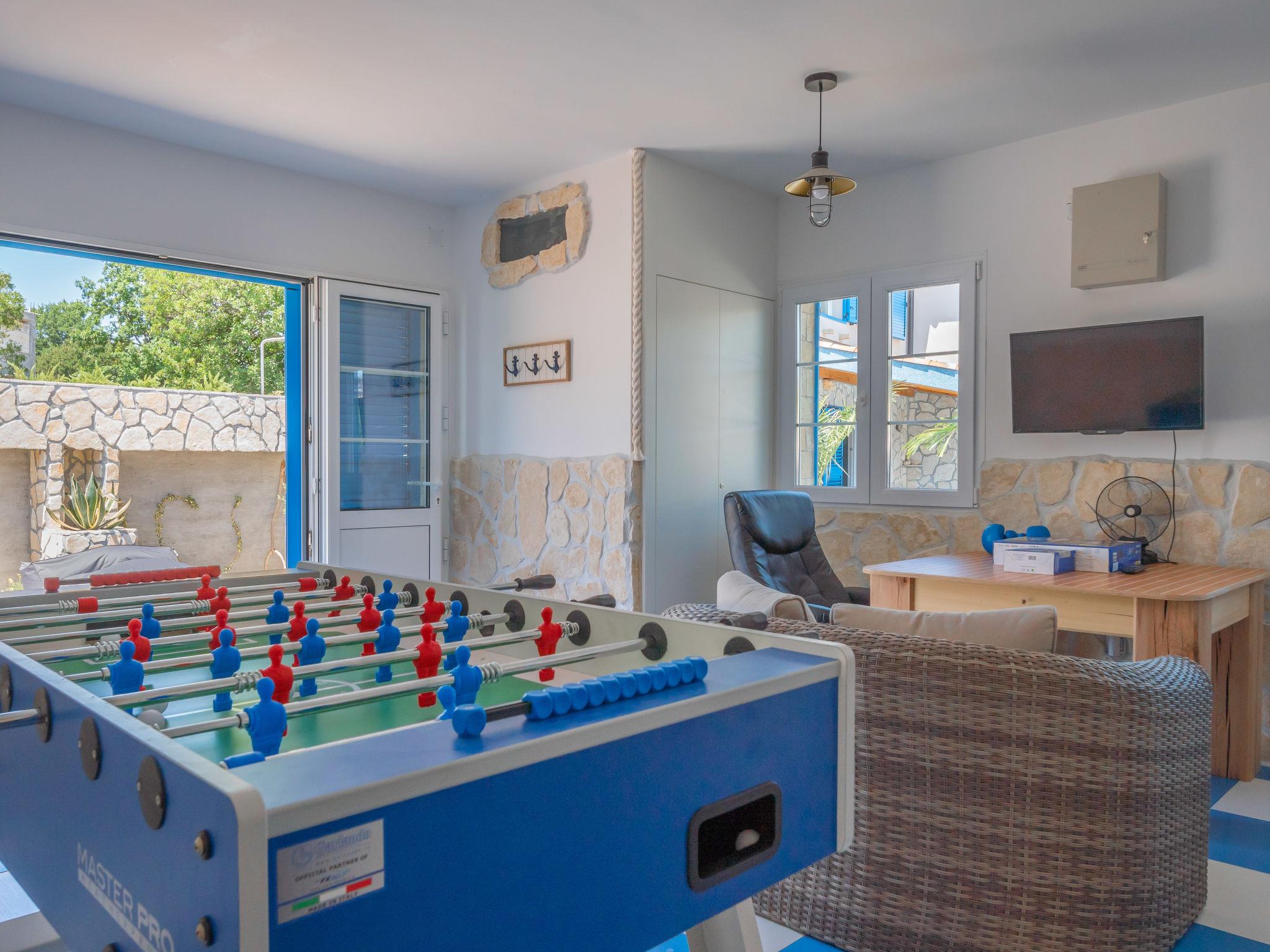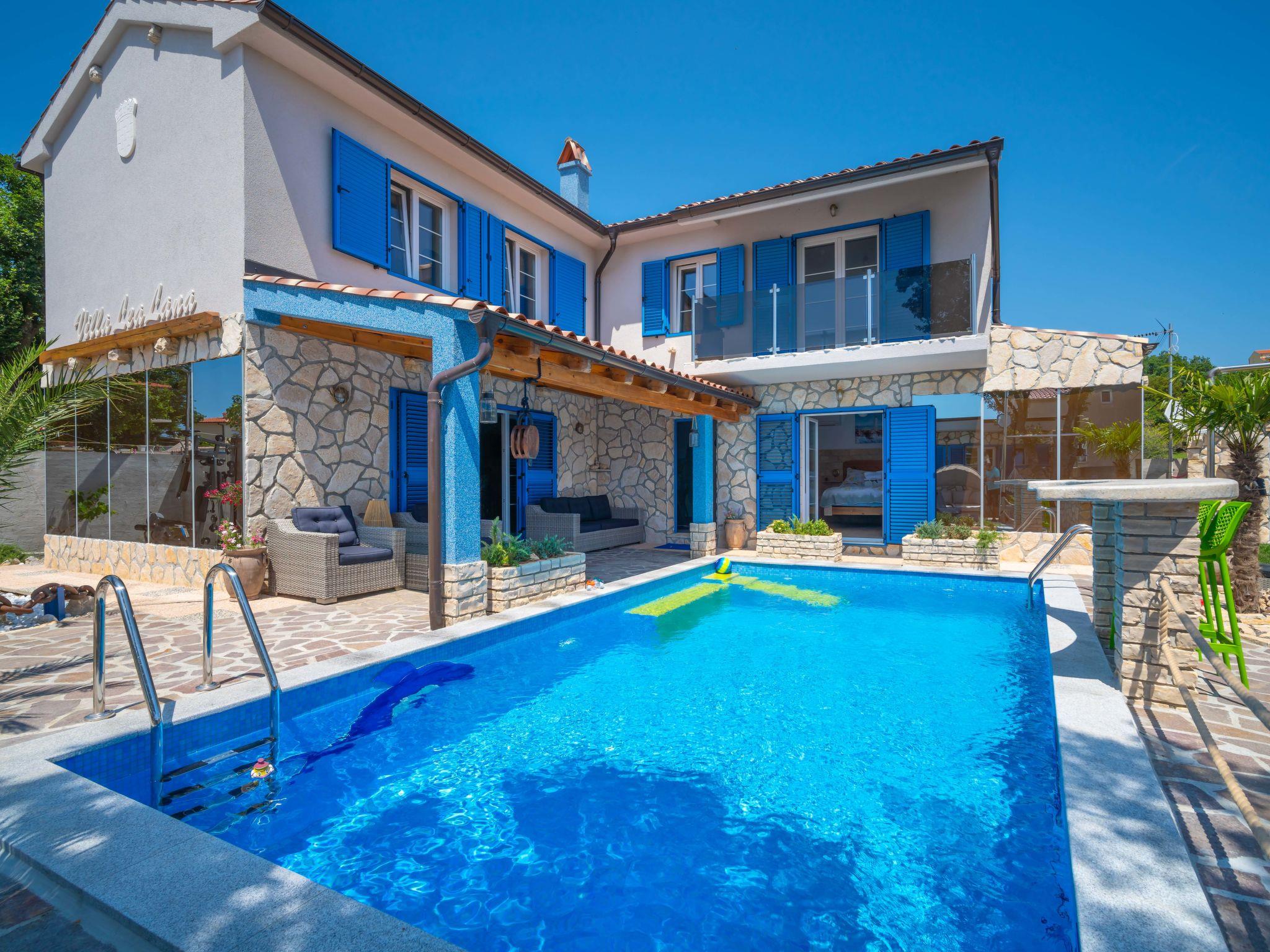 Villa "Lea Lana", 2 storeys. 500 m from the centre of Novi Vinodolski, in a quiet, sunny position, 700 m from the sea, 900 m from the beach. Private: property 1'000 m2 (fenced) with wildlife garden, swimming pool angular (7 x 4 m, depth 150 cm, seasonal availability: 01.May. - 15.Oct.) with internal staircase. WC in the pool area, outdoor shower, hot tub, pool house, table tennis, terrace (50 m2), garden furniture, barbecue, children's playground (slide, swing). In the house: internet access, table football, burglar alarm system, washing machine. Parking (for 3 cars) at the house on the premises. Shop, supermarket, restaurant 500 m, bus stop 1.4 km, pebble beach, public bathing area, concrete beach 900 m. Please note: suitable for families. Groups of teenagers on request only. By groups of young people double deposit is requested on arrival. Organizing a party is not allowed. Pool house arranged as a playroom (table football, darts, play station). Available: multifunctional exercise machine. Welcome drink and snack upon arrival.