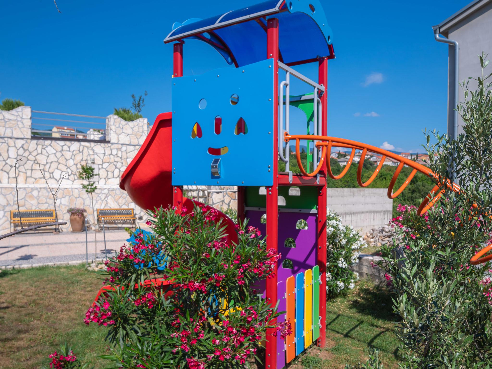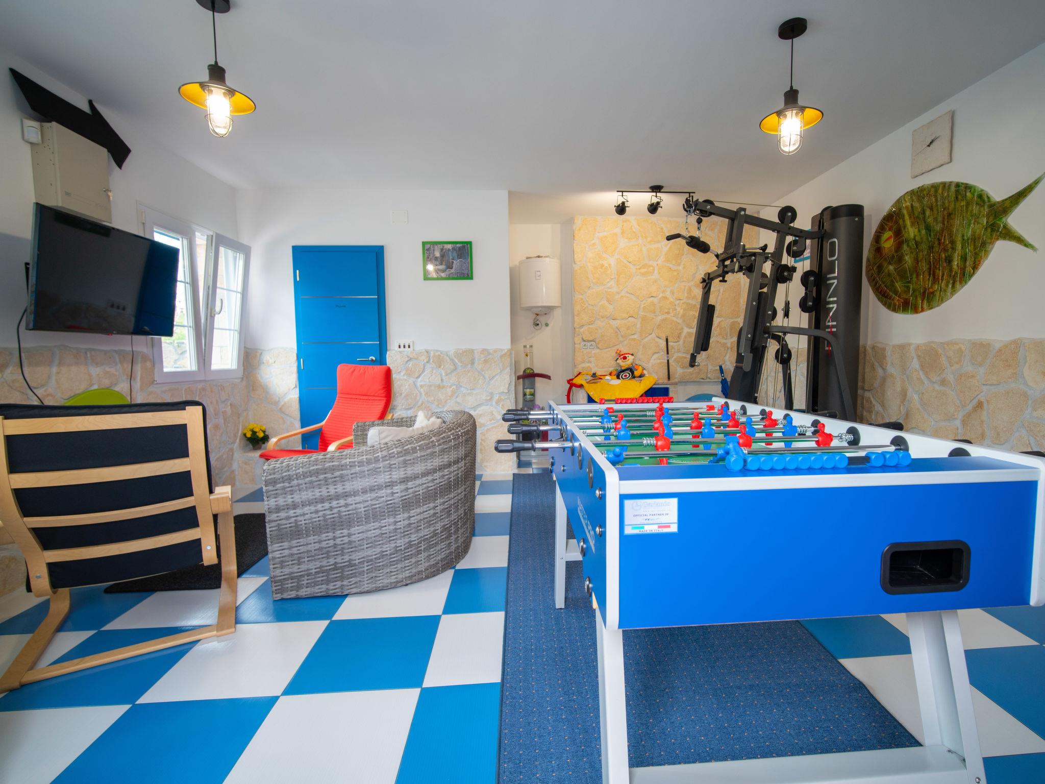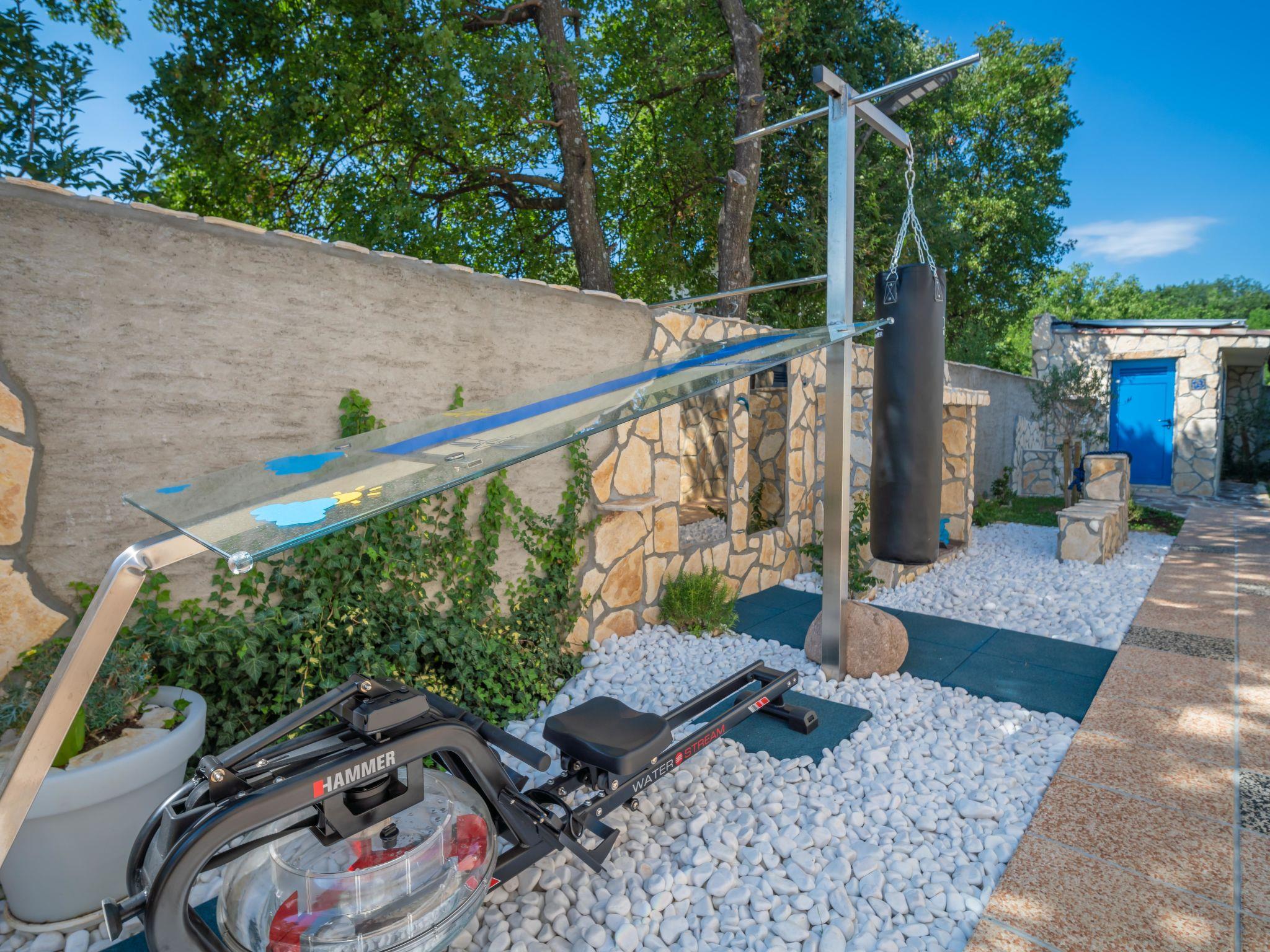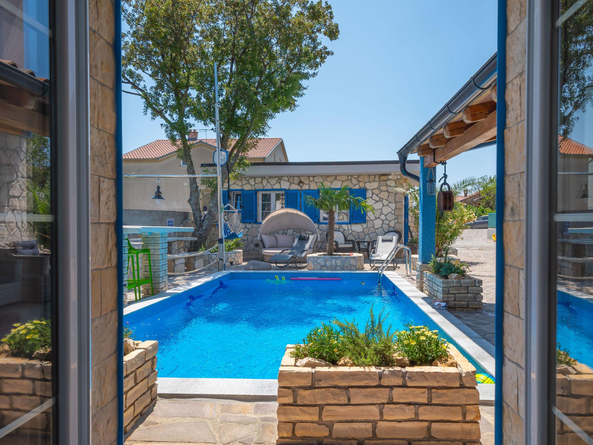 Villa "Lea Lana", 2 storeys. 500 m from the centre of Novi Vinodolski, in a quiet, sunny position, 700 m from the sea, 900 m from the beach. Private: property 1'000 m2 (fenced) with wildlife garden, swimming pool angular (7 x 4 m, depth 150 cm, seasonal availability: 01.May. - 15.Oct.) with internal staircase. WC in the pool area, outdoor shower, hot tub, pool house, table tennis, terrace (50 m2), garden furniture, barbecue, children's playground (slide, swing). In the house: internet access, table football, burglar alarm system, washing machine. Parking (for 3 cars) at the house on the premises. Shop, supermarket, restaurant 500 m, bus stop 1.4 km, pebble beach, public bathing area, concrete beach 900 m. Please note: suitable for families. Groups of teenagers on request only. By groups of young people double deposit is requested on arrival. Organizing a party is not allowed. Pool house arranged as a playroom (table football, darts, play station). Available: multifunctional exercise machine. Welcome drink and snack upon arrival.