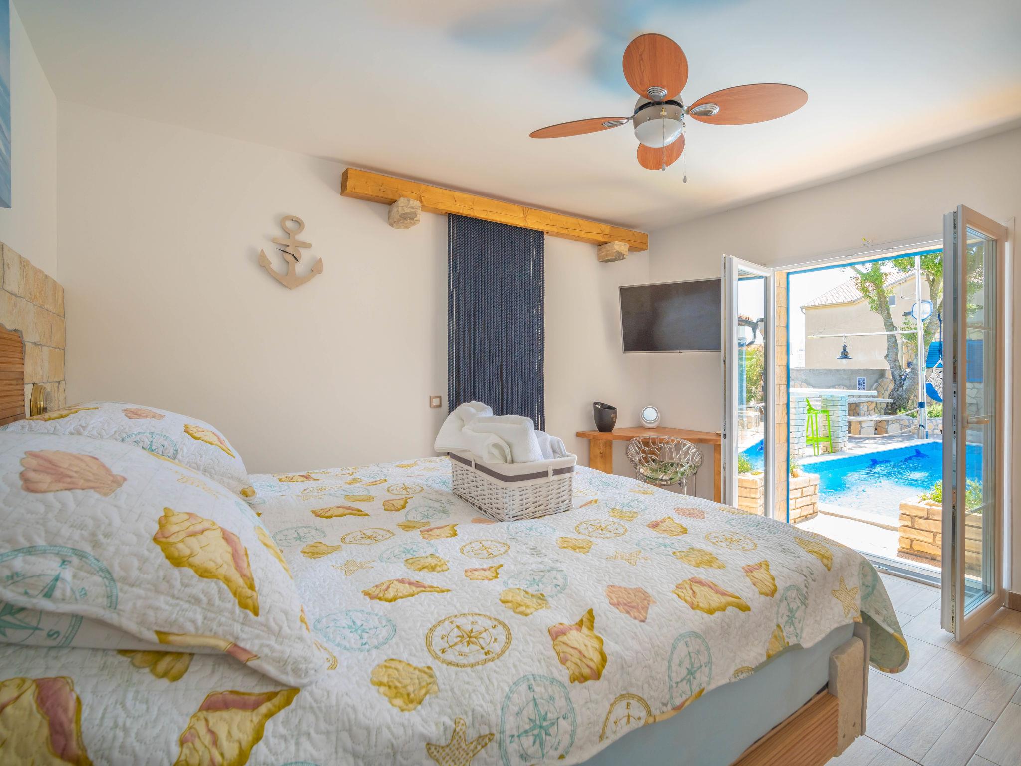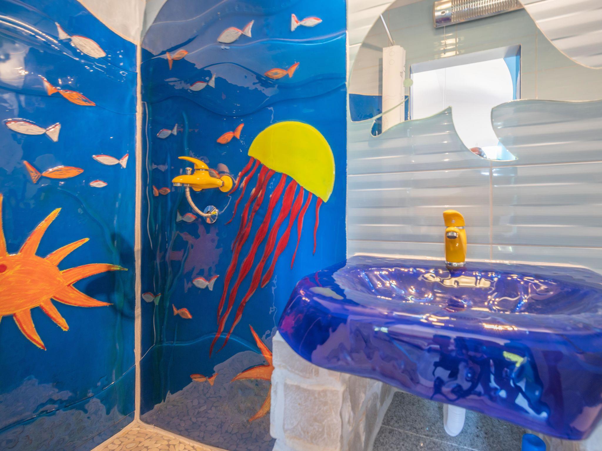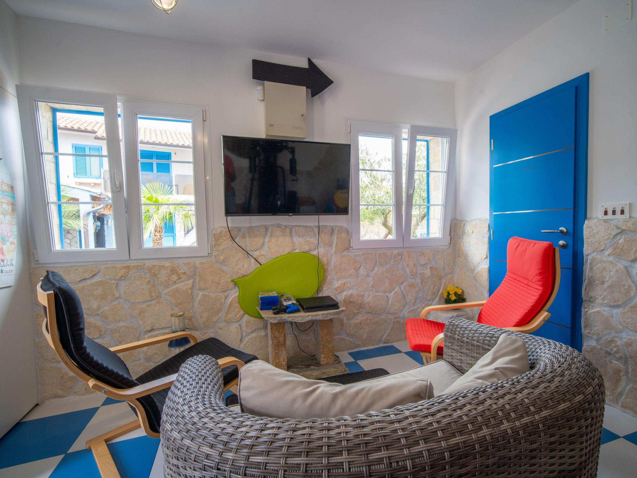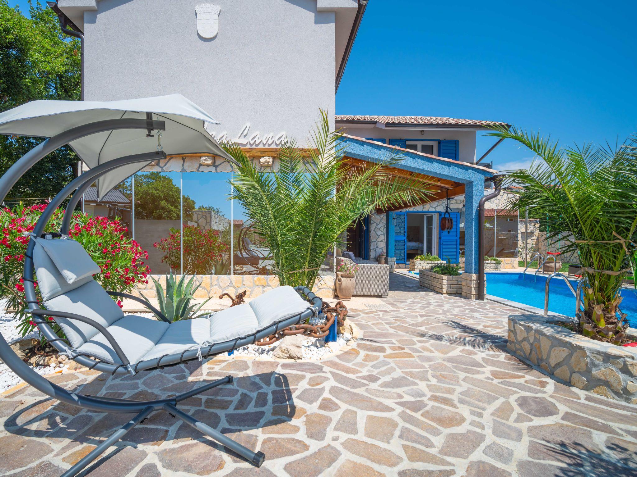 Villa "Lea Lana", 2 storeys. 500 m from the centre of Novi Vinodolski, in a quiet, sunny position, 700 m from the sea, 900 m from the beach. Private: property 1'000 m2 (fenced) with wildlife garden, swimming pool angular (7 x 4 m, depth 150 cm, seasonal availability: 01.May. - 15.Oct.) with internal staircase. WC in the pool area, outdoor shower, hot tub, pool house, table tennis, terrace (50 m2), garden furniture, barbecue, children's playground (slide, swing). In the house: internet access, table football, burglar alarm system, washing machine. Parking (for 3 cars) at the house on the premises. Shop, supermarket, restaurant 500 m, bus stop 1.4 km, pebble beach, public bathing area, concrete beach 900 m. Please note: suitable for families. Groups of teenagers on request only. By groups of young people double deposit is requested on arrival. Organizing a party is not allowed. Pool house arranged as a playroom (table football, darts, play station). Available: multifunctional exercise machine. Welcome drink and snack upon arrival.