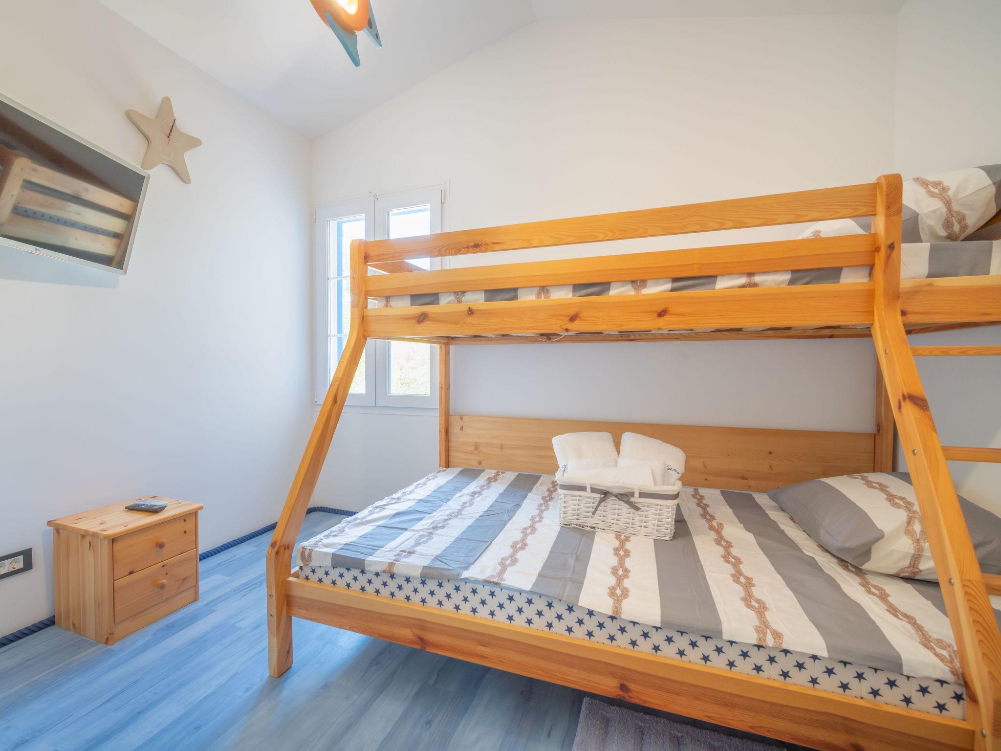 5-room villa 170 m2 on 2 levels. Living/dining room 48 m2 with satellite TV (flat screen), air conditioning. Exit to the terrace, to the swimming pool. 1 room with 1 double bed (2 x 90 cm, length 200 cm), bath/bidet/WC and satellite TV (flat screen), air conditioning. Exit to the terrace, to the swimming pool. Open kitchen (oven, dishwasher, 4 ceramic glass hob hotplates, microwave, freezer, electric coffee machine). Upper floor: 1 room with 1 double bed (2 x 90 cm, length 200 cm), shower/WC and satellite TV (flat screen), air conditioning. 1 room with 1 double bed (2 x 90 cm, length 200 cm), shower/WC and satellite TV (flat screen), air conditioning. Exit to the balcony. 1 children's room with 1 french bed (140 cm, length 200 cm), shower/WC and satellite TV (flat screen), air conditioning. Floor heating (extra). Balcony 5 m2, terrace 20 m2, roofed. Terrace furniture, deck chairs. View of the swimming pool. Facilities: baby cot. Internet (WiFi, free).