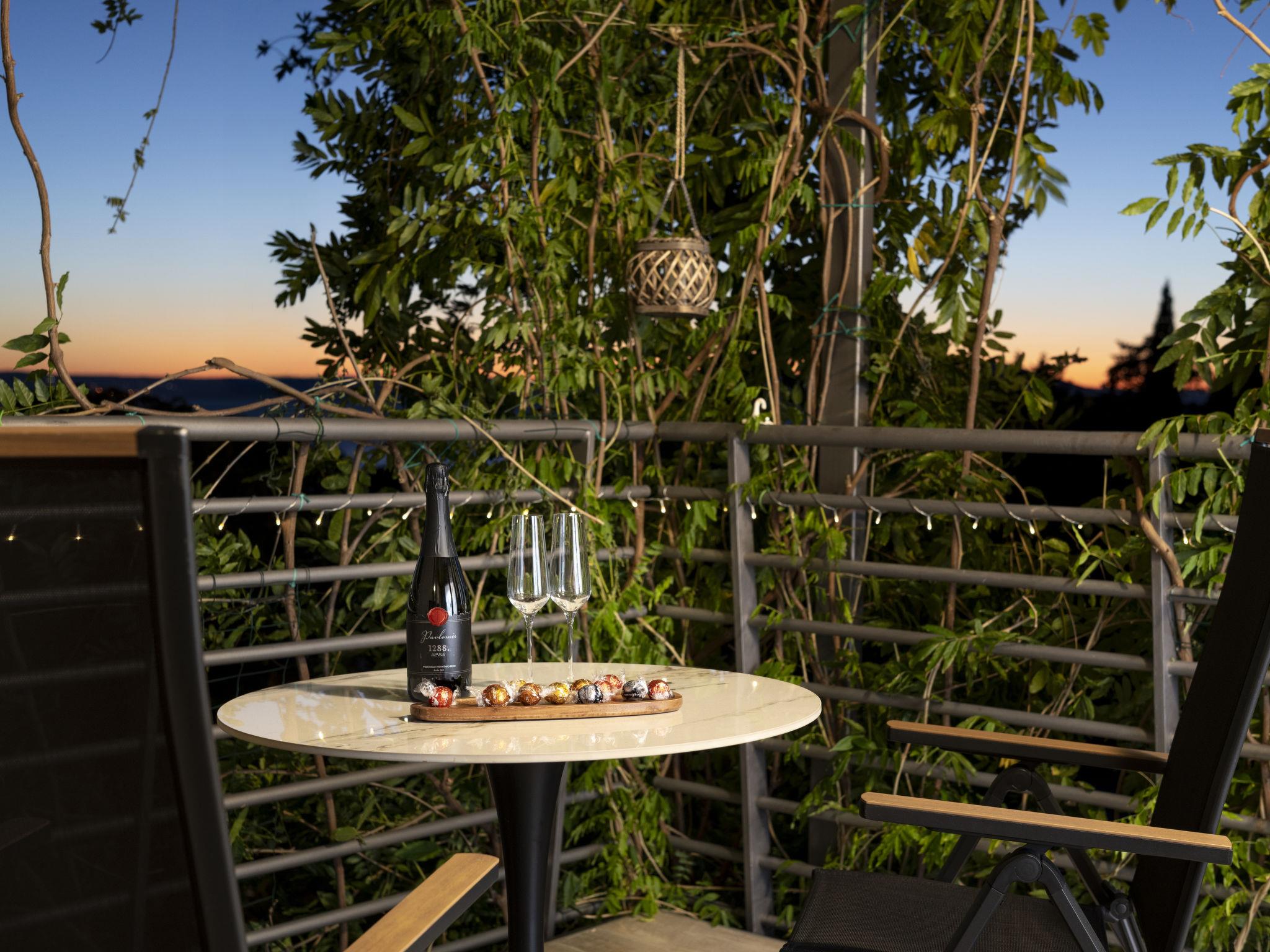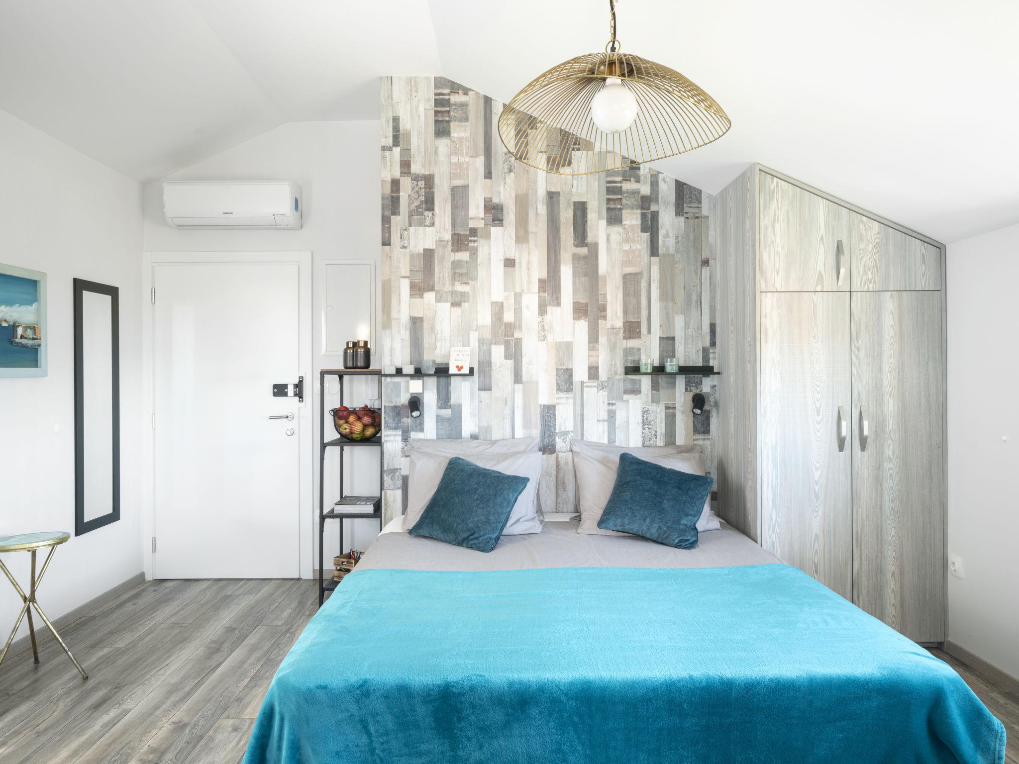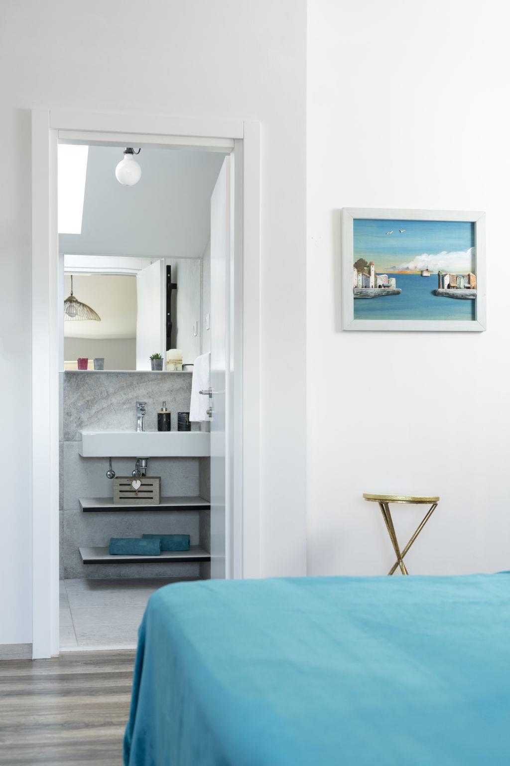 "Lovers lounge", 1-room studio 25 m2 on 2nd floor. Living/sleeping room with 1 french bed (180 cm, length 200 cm), satellite TV and air conditioning. Open kitchen (oven, 2 induction hot plates, toaster, kettle, microwave, freezer, electric coffee machine) with dining table. Exit to the terrace. Shower/WC. Floor heating, forced-air heating. Terrace 7 m2. Balcony furniture. Facilities: safe, iron, baby cot, hair dryer. Internet (WiFi, free). Please note: fire extinguisher.