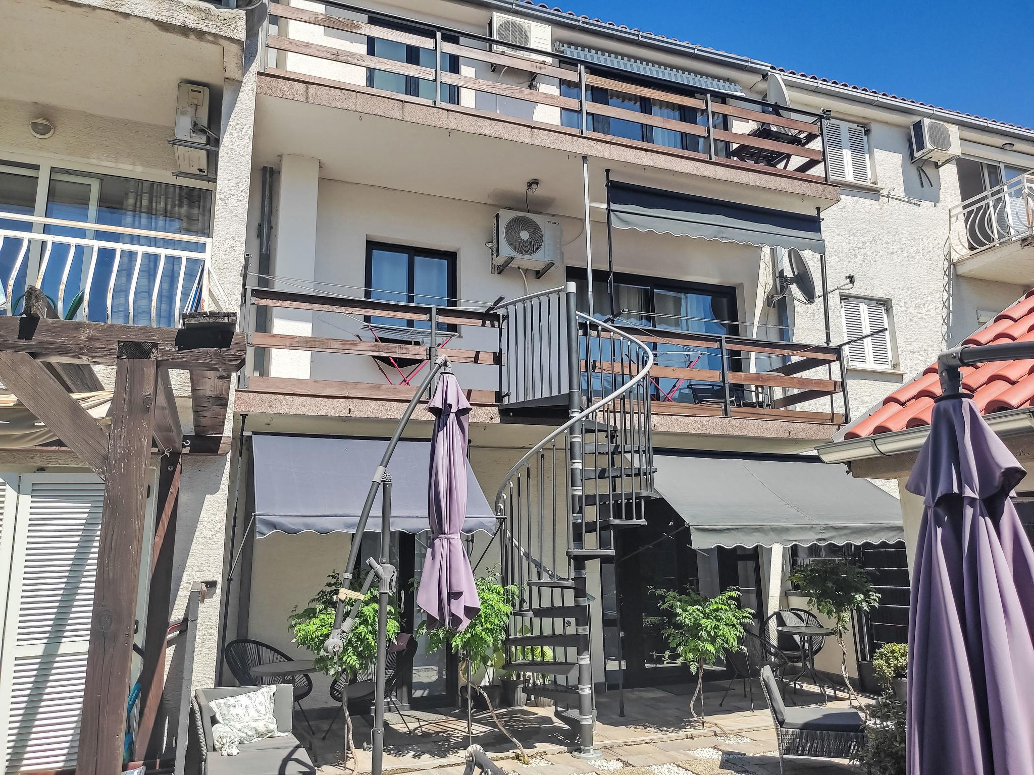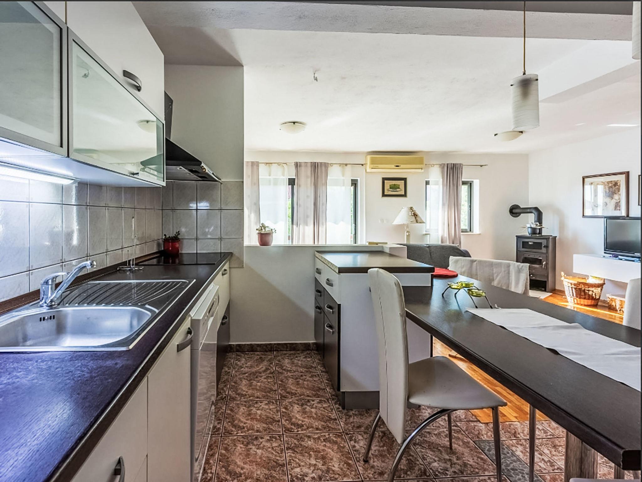 Novi Vinodolski: Apartment house "Deleut", 3 storeys. 1 km from the centre of Novi Vinodolski, 1.8 km from the sea, 1.8 km from the beach. Private: property 400 m2 (fenced). Pergola, terrace (50 m2), barbecue, barbecue house. In the house: internet access, washing machine. Parking at the house on the premises. Shop, restaurant 800 m, bus stop 1 km, pebble beach 1.8 km. Please note: the owner lives on the same property.