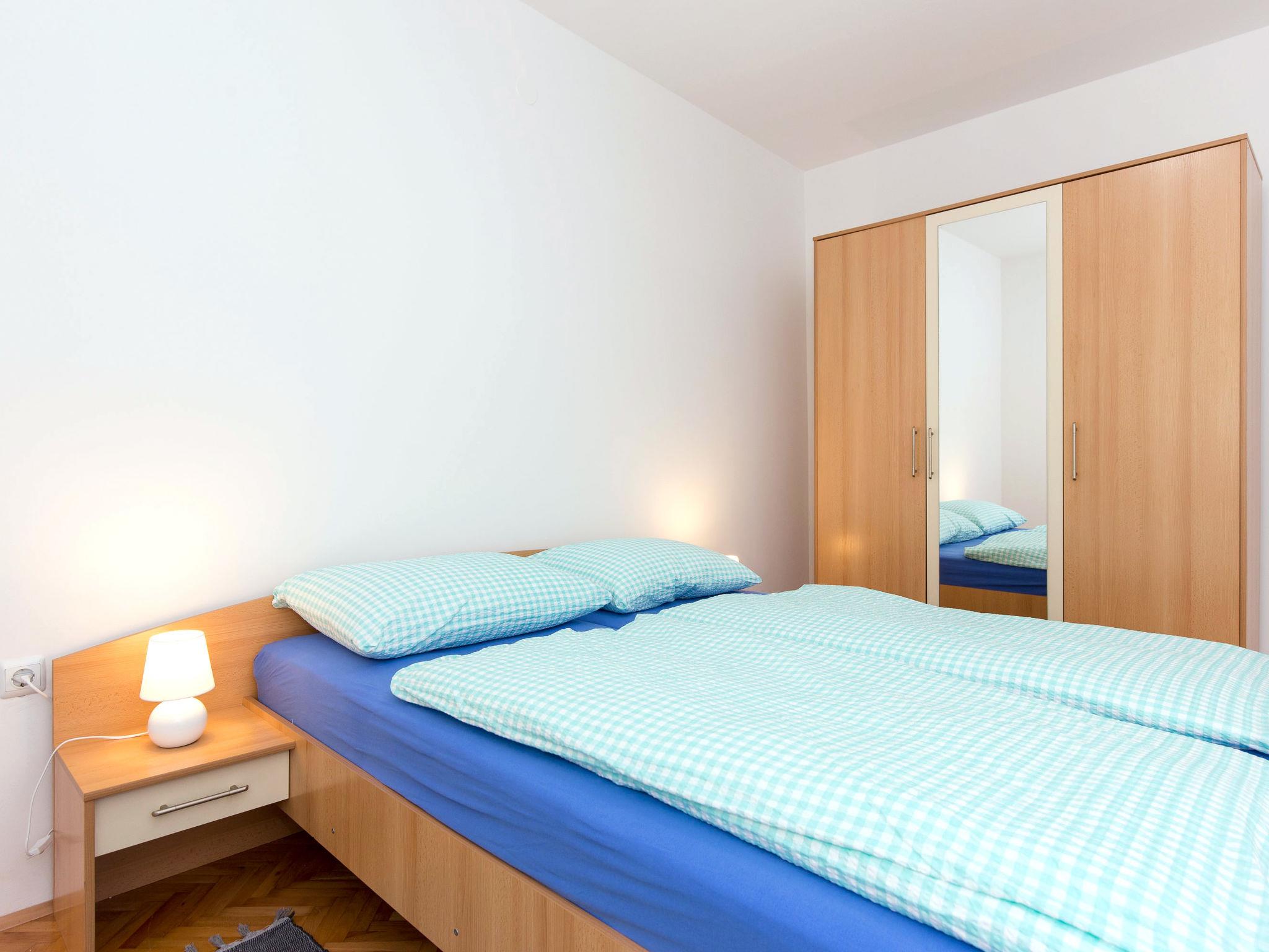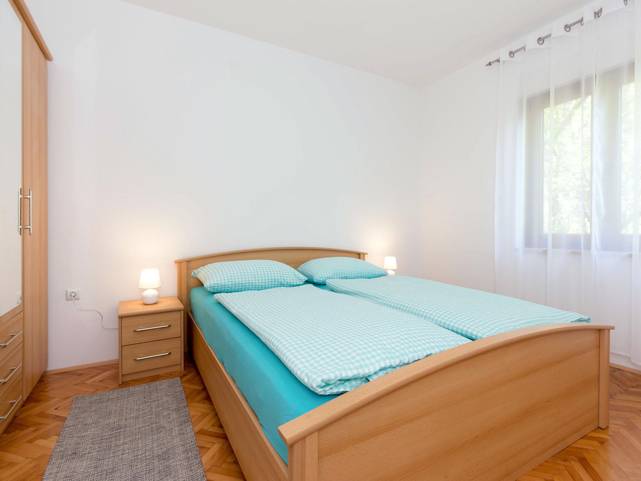 "Luka", 3-room apartment 88 m2 on 2nd floor. Living/dining room with satellite TV and air conditioning. Exit to the balcony. 2 rooms, each room with 1 double bed (2 x 90 cm, length 200 cm). Open kitchen (1 hot plate, oven, 3 gas rings, toaster, kettle, microwave, freezer, electric coffee machine). Shower/WC. No heating option. Balcony 23 m2. Balcony furniture, deck chairs (2). View of the sea. Facilities: iron. Internet (WiFi, free). Please note: non-smoking house. Maximum 2 small pets/ dogs allowed.