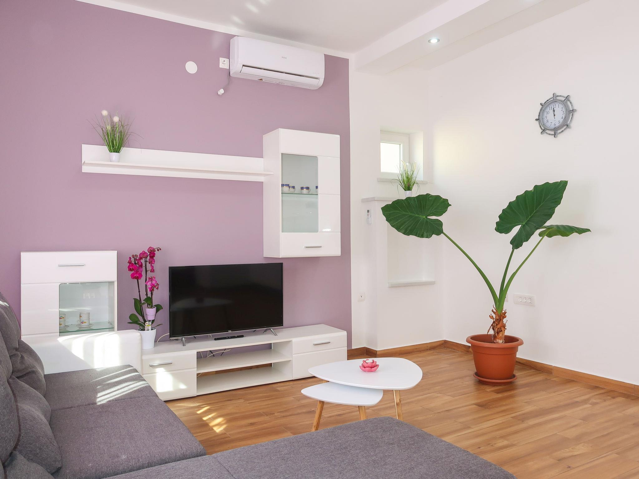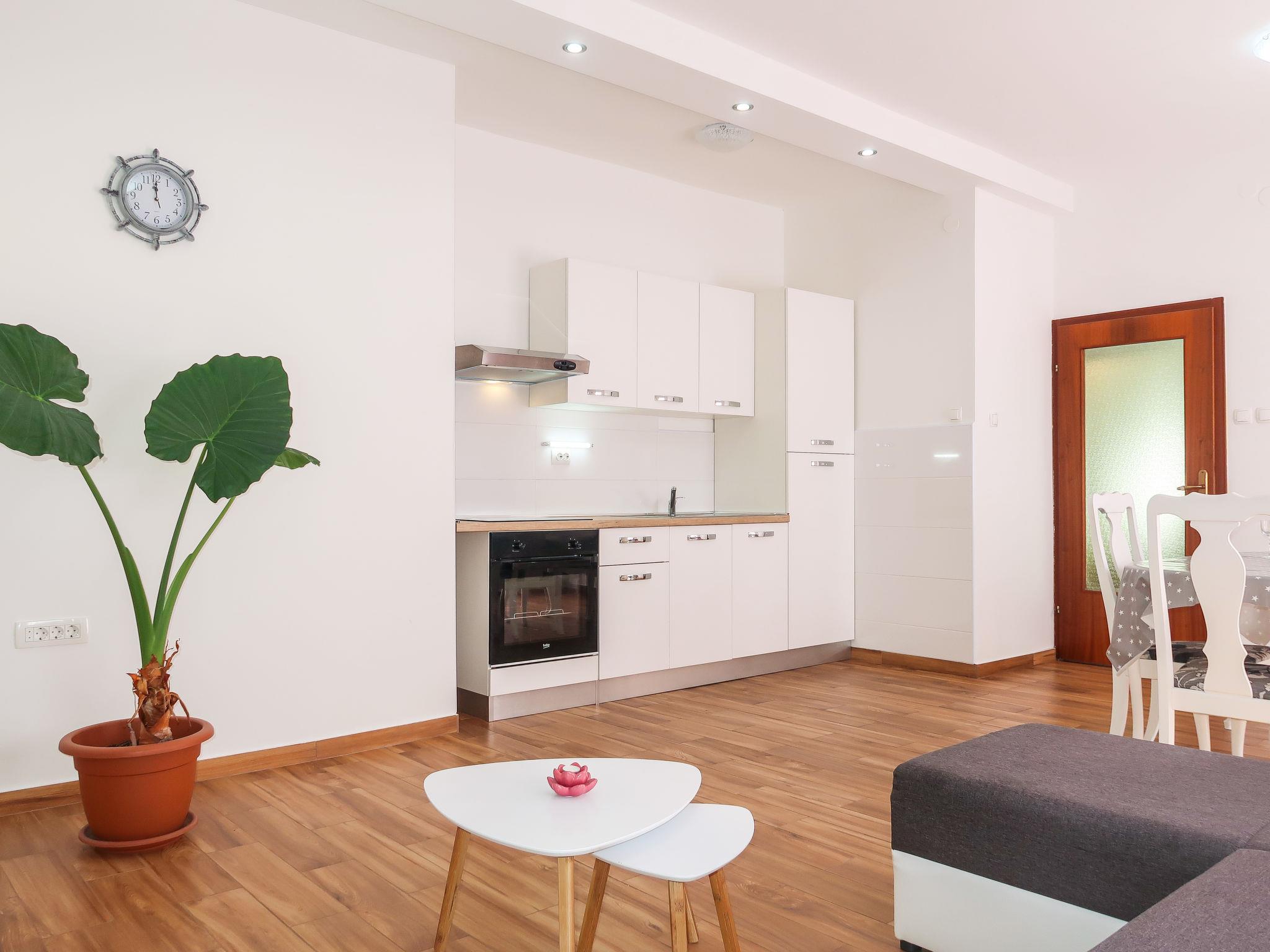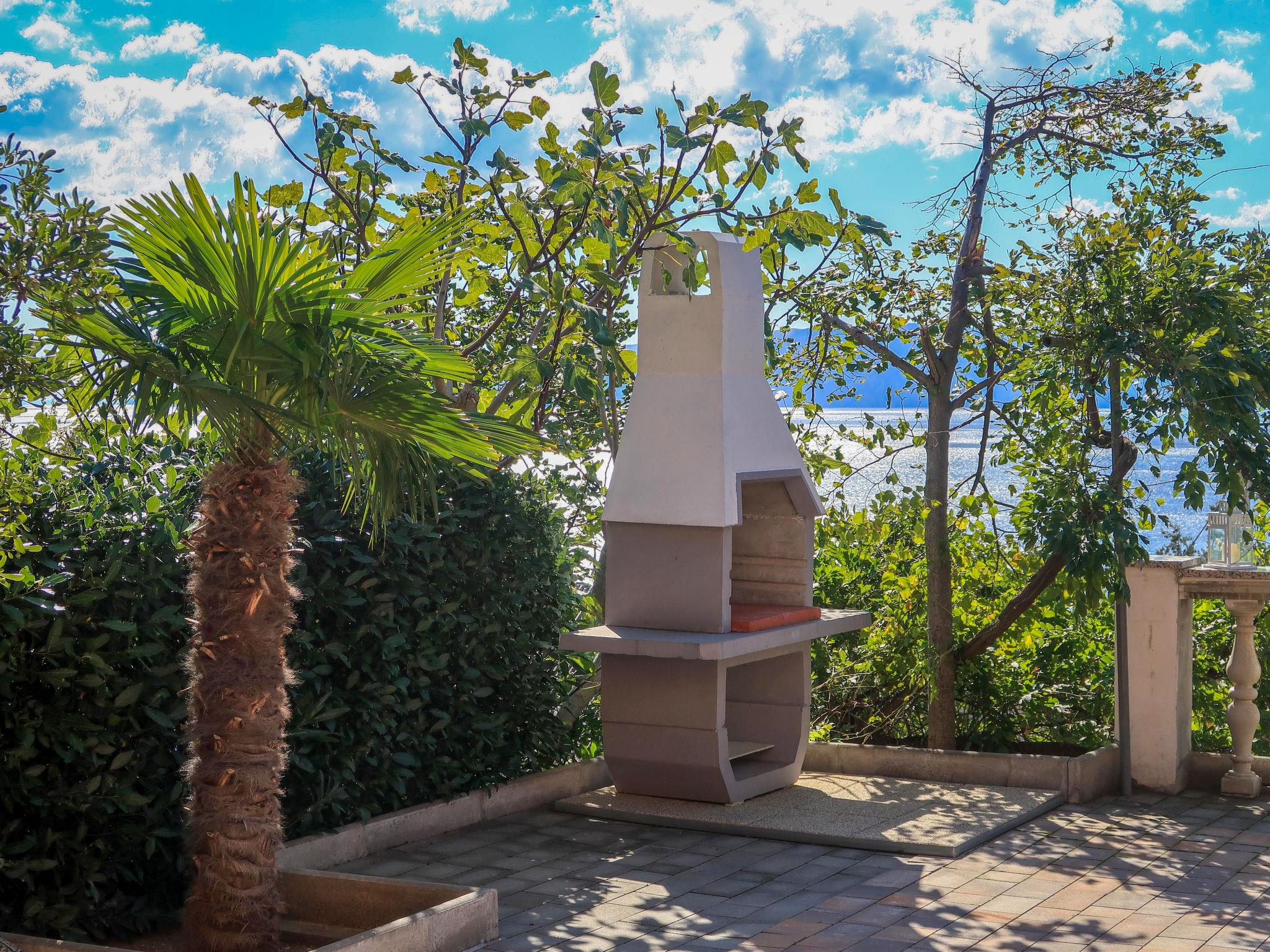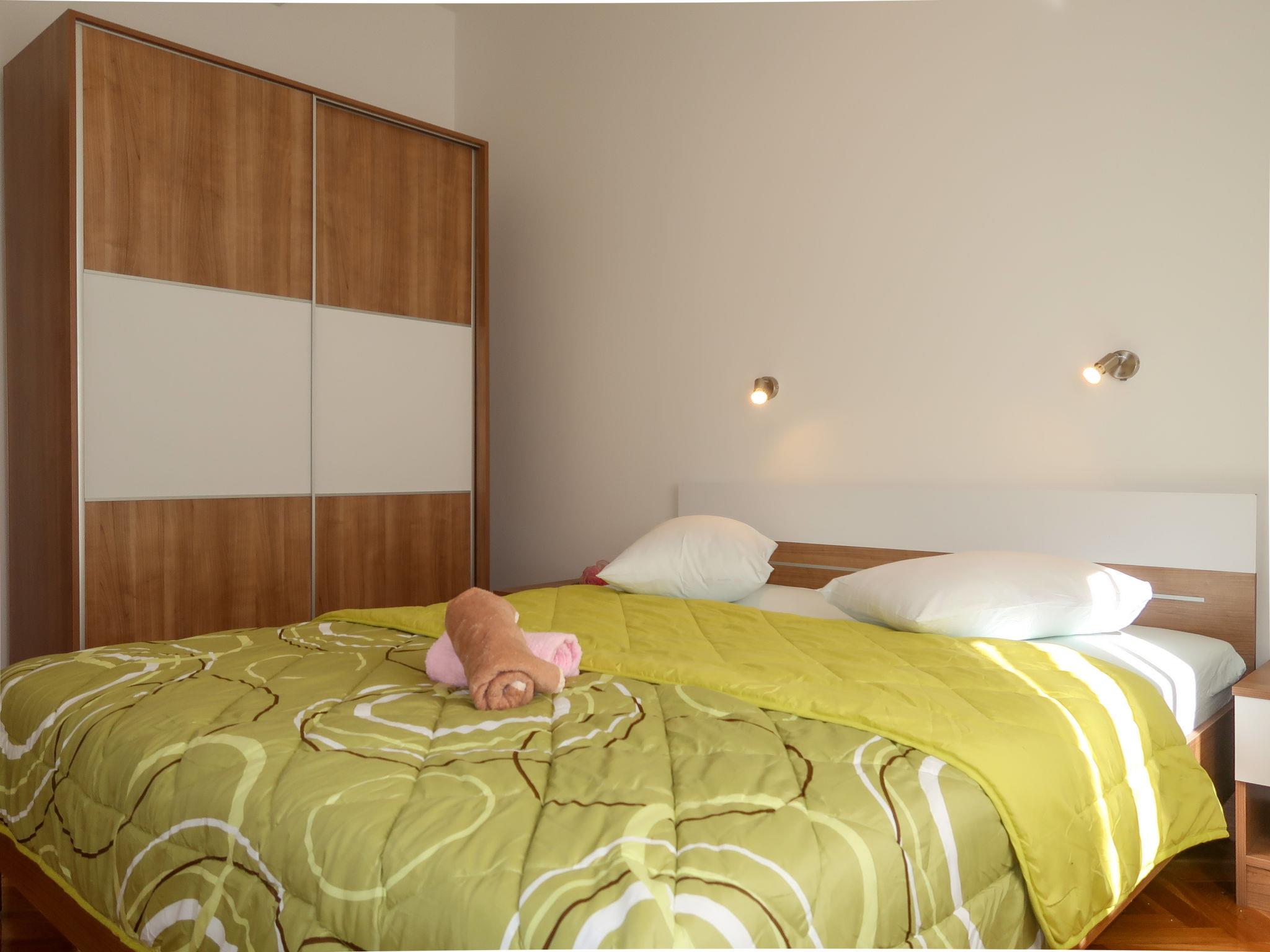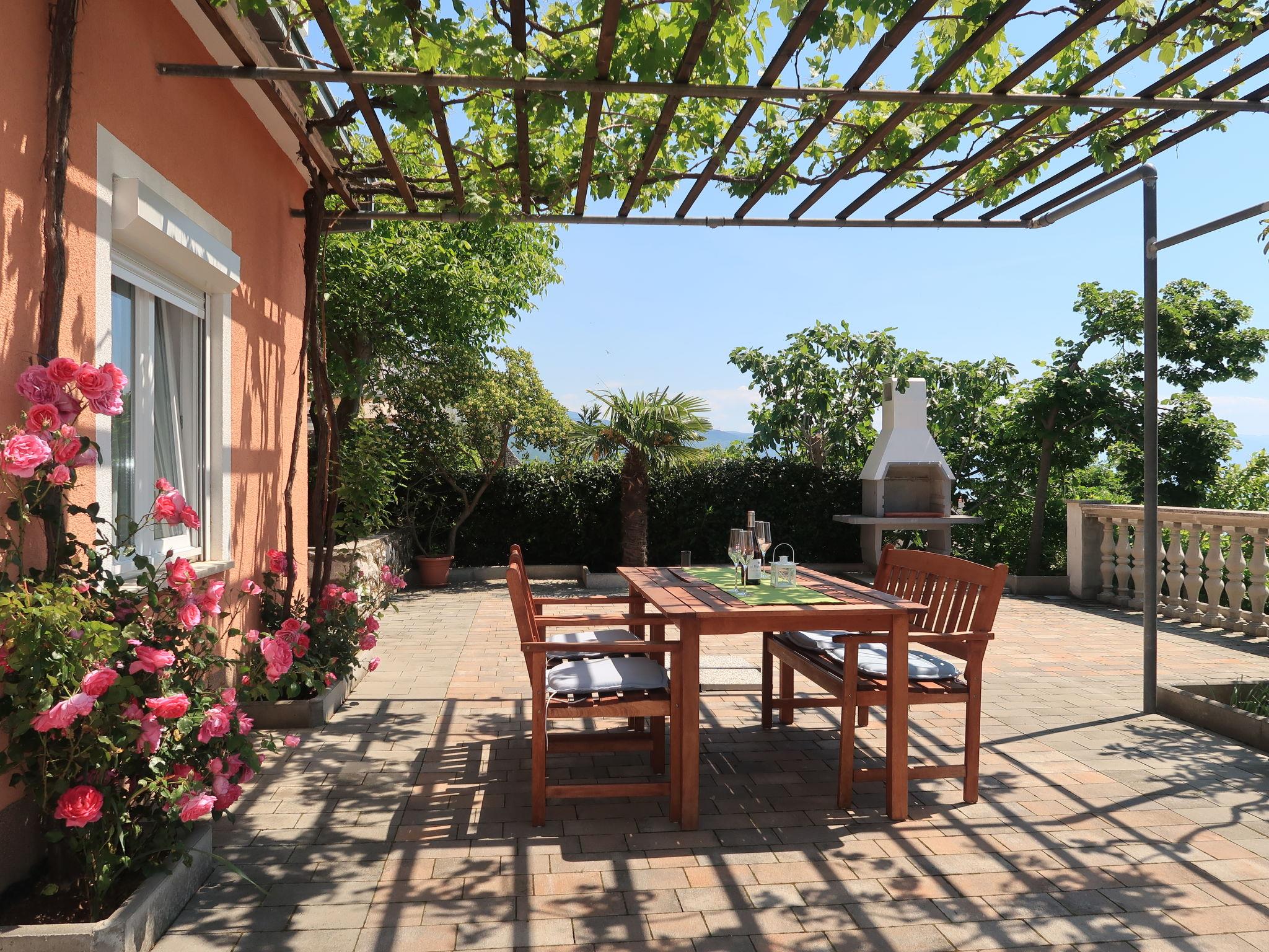 "Valentina", 3-room apartment 60 m2, on the ground floor. Partly renovated in 2019: living/dining room with satellite TV and air conditioning. Exit to the terrace. 2 rooms, each room with 1 double bed (2 x 80 cm, length 200 cm). Open kitchen (oven, 4 ceramic glass hob hotplates, toaster, kettle, microwave, freezer, electric coffee machine). Shower/WC. Air-conditioning (extra). No heating option. Terrace 50 m2. Terrace furniture, barbecue. View of the sea. Facilities: washing machine. Internet (WiFi, free). Please note: private entrance.