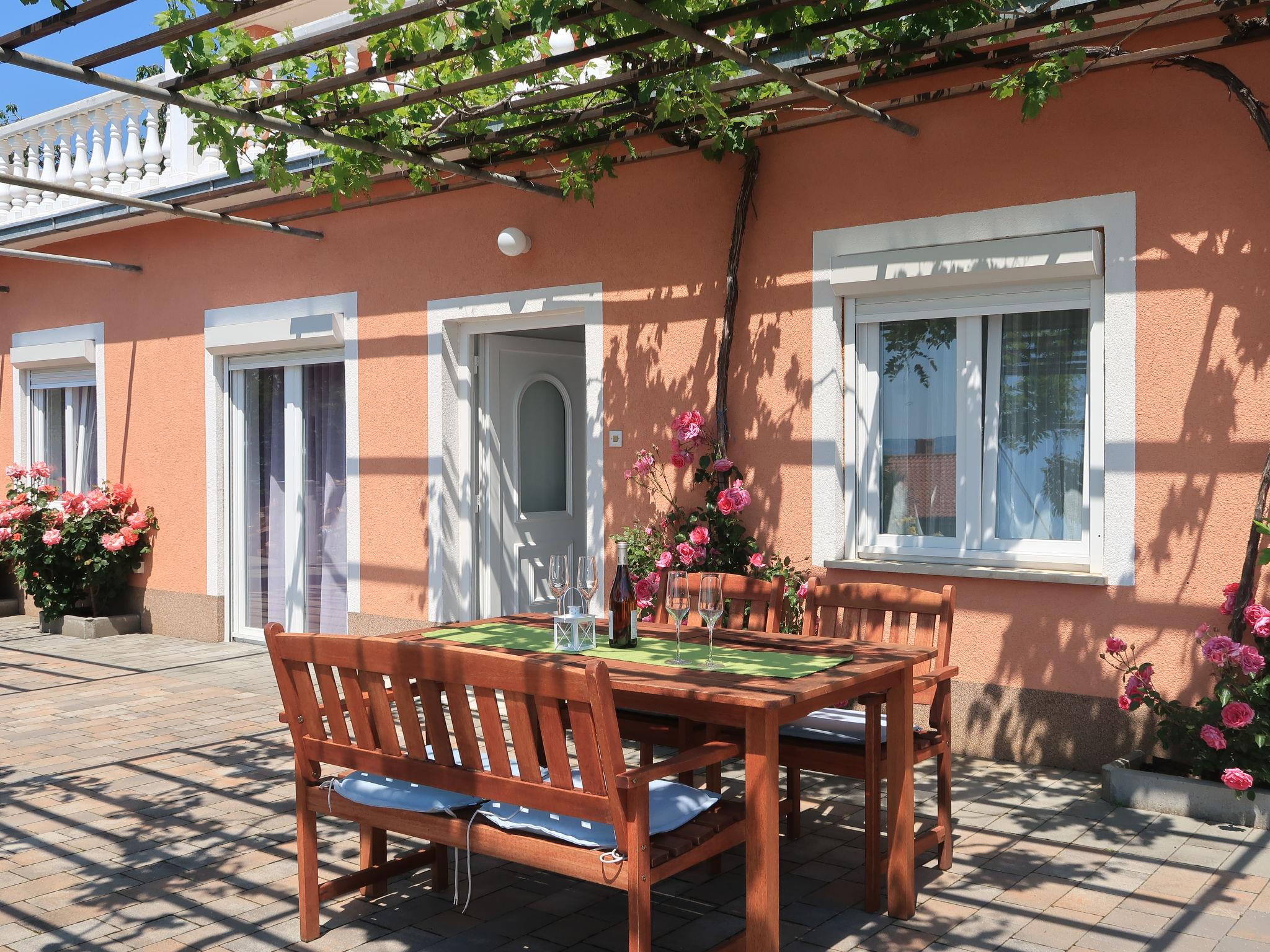 Apartment house "Valentina". 500 m from the centre of Novi Vinodolski, 12 km from the centre of Crikvenica, 20 km from the centre of Jadranovo, 500 m from the sea, 500 m from the beach. For shared use: property 1'000 m2 (fenced), well-kept terraced garden. In the house: internet access. Parking at the house on the premises. Shop 200 m, supermarket 500 m, bus stop 950 m, rocky beach 500 m. Marina 500 m. Please note: airfield 30 km from the property.