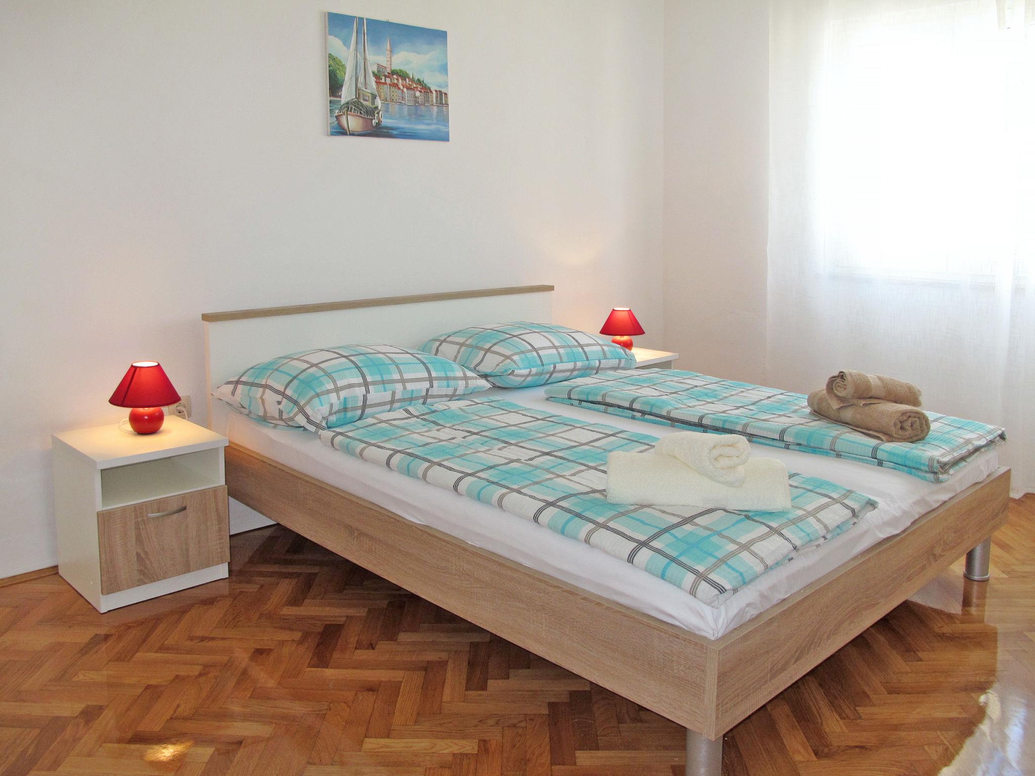 "Luka", 3-room apartment 75 m2, on the ground floor. Living/dining room with 1 sofabed (160 cm, length 200 cm), satellite TV and air conditioning. Exit to the terrace. 2 rooms, each room with 1 double bed (2 x 80 cm, length 200 cm). Open kitchen (oven, dishwasher, 4 gas rings, toaster, kettle, freezer, electric coffee machine). Shower/WC. Heating (extra), air-conditioning (extra). Terrace 22 m2. Terrace furniture, barbecue (portable), deck chairs. Facilities: washing machine, baby cot (extra). Internet (WiFi, free). Please note: non-smoking house. Maximum 1 pet/ dog allowed.