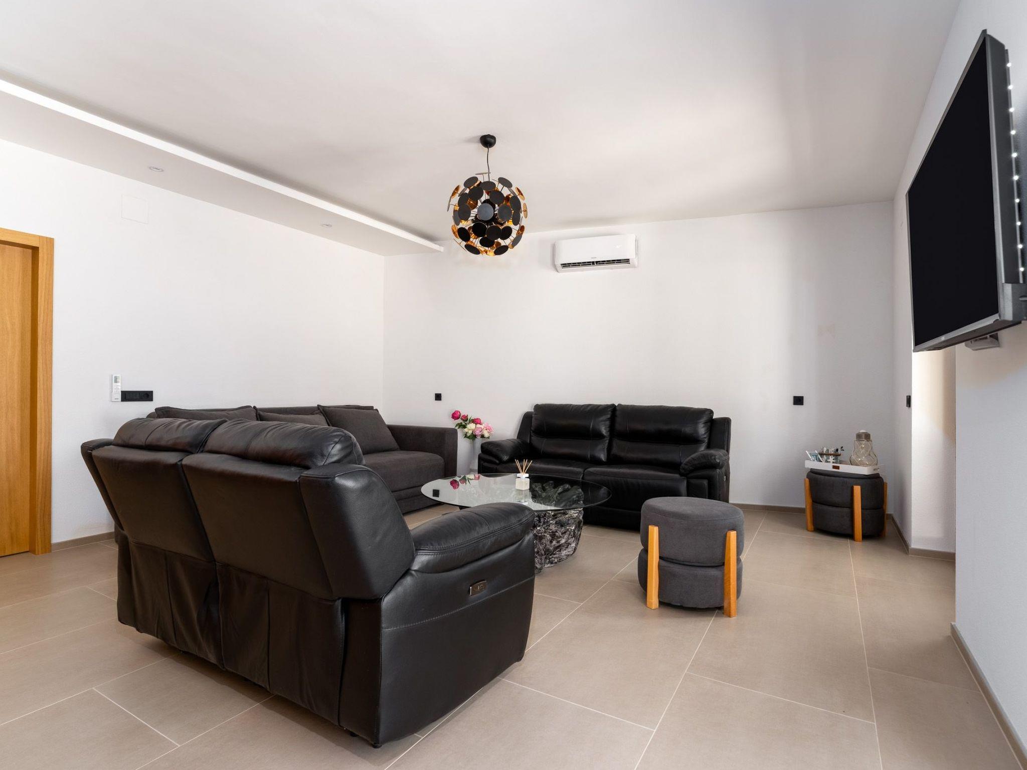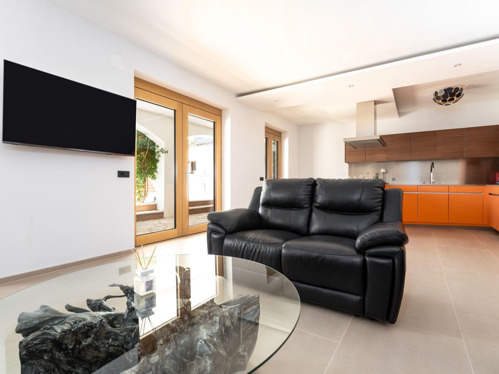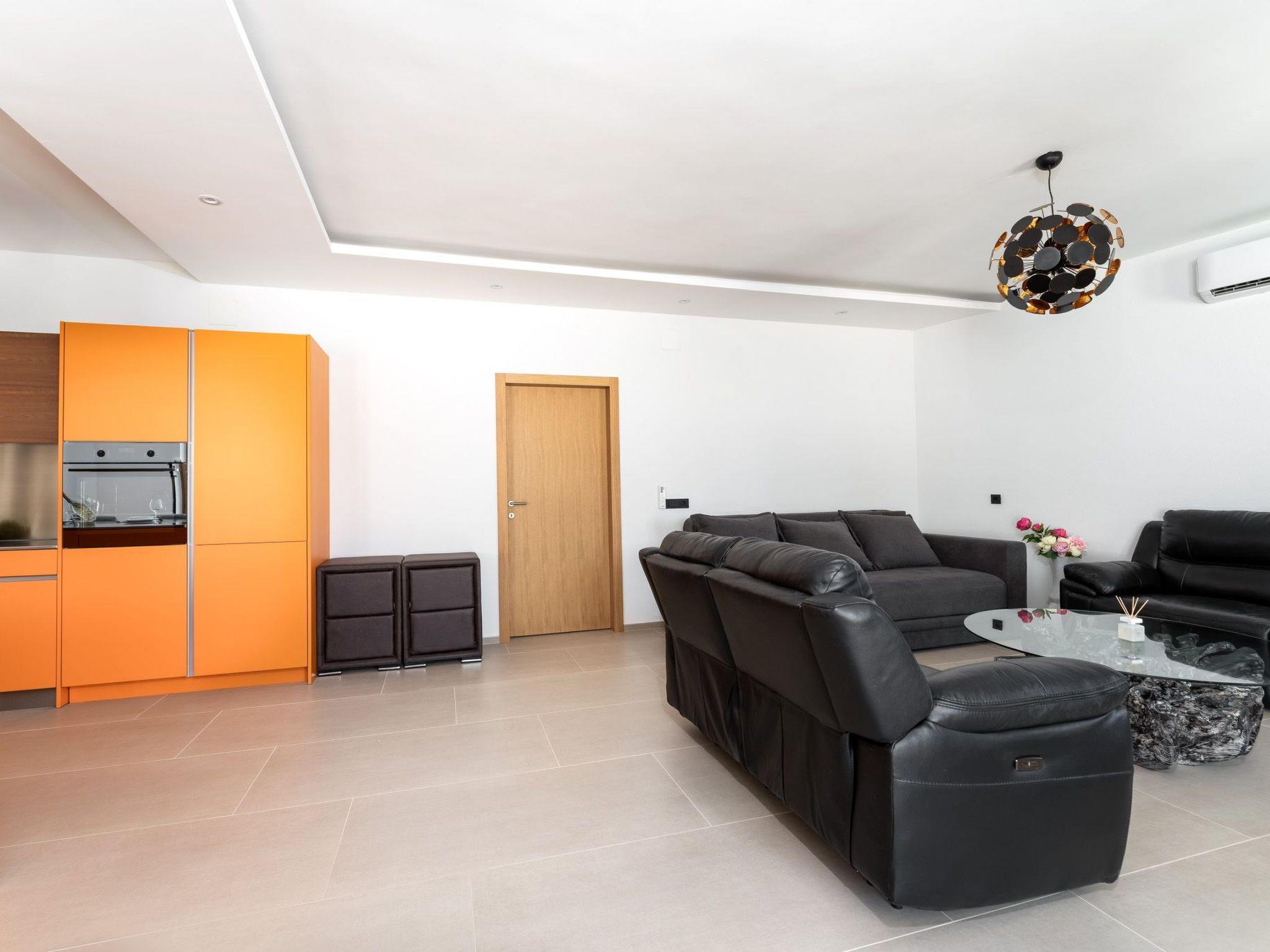The interior of the apartment is thoughtfully equipped with all essential amenities to ensure a comfortable stay. Air conditioning is available throughout the property, offering a cool respite from the warm Mediterranean climate. For guests' convenience, the apartment features a well-appointed kitchen with an induction hob, filter coffee machine, dishwasher, and electric kettle, catering to all your culinary needs. The luxury of a private washing machine adds to the ease of your stay, ensuring all the comforts of home are at your fingertips.