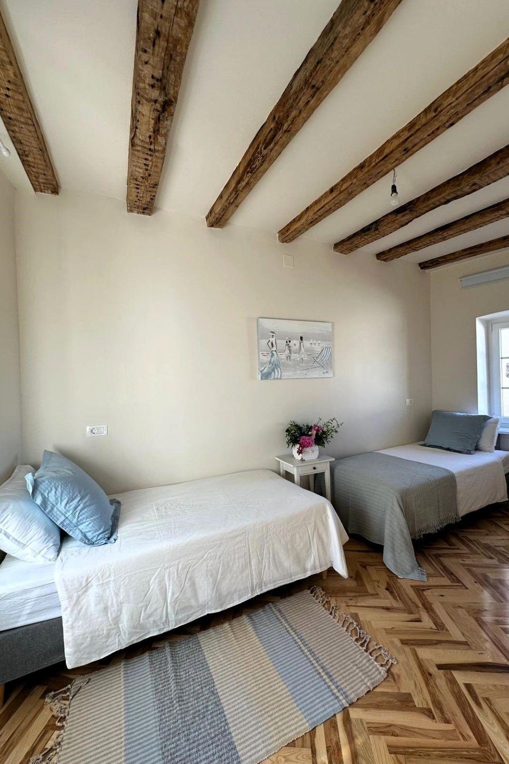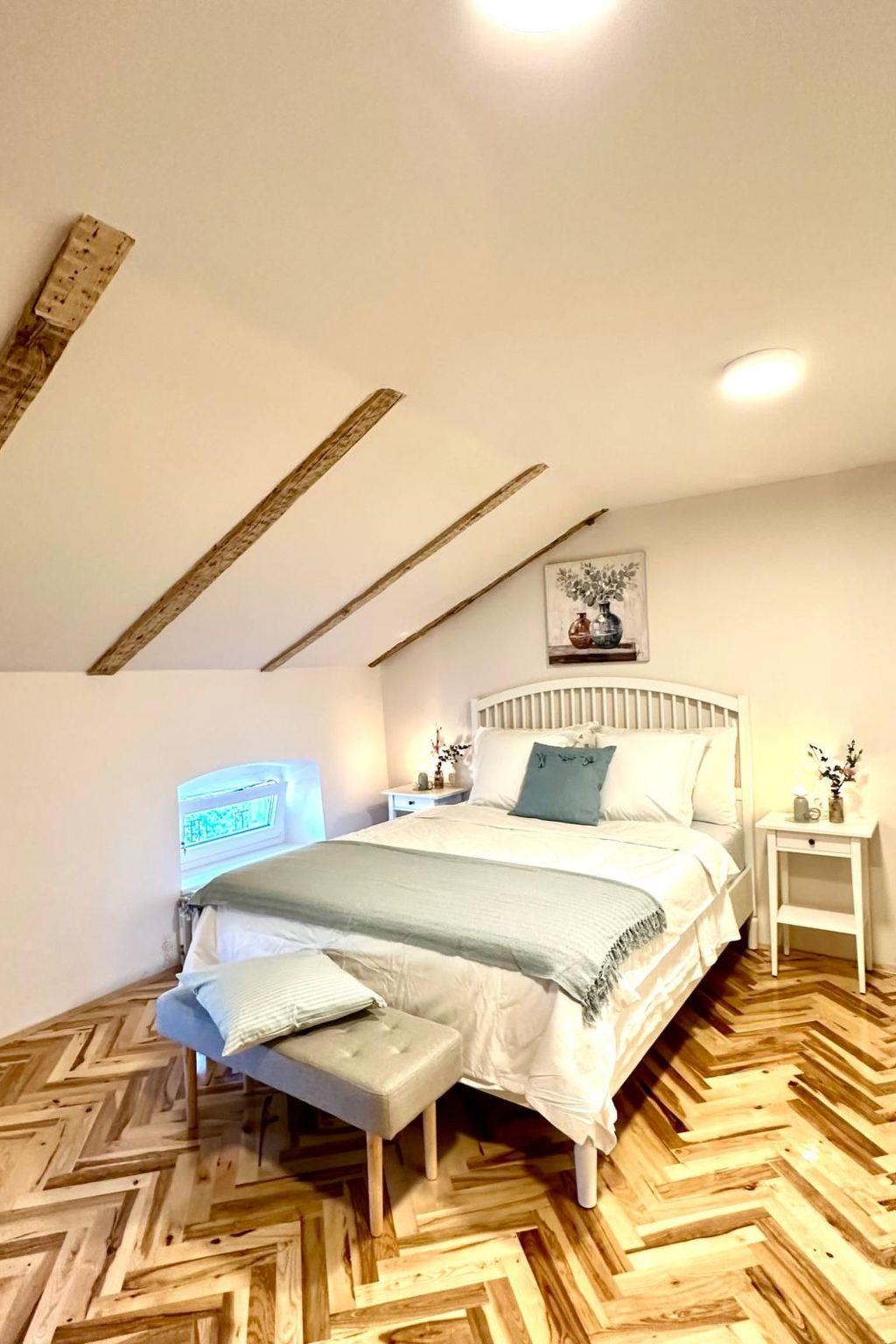 Escape the ordinary and discover tranquility in the vibrant heart of Novi Vinodolski. Situated in the historic center, the Cotton House presents a unique blend of the town's rich heritage and modern luxury in a meticulously restored 19th-century neoclassical building. Its towering ceilings, exposed wooden beams, and the essence of stories from the past provide a captivating atmosphere for your retreat, setting the stage for an experience that intertwines the threads of history, charm, and comfort.