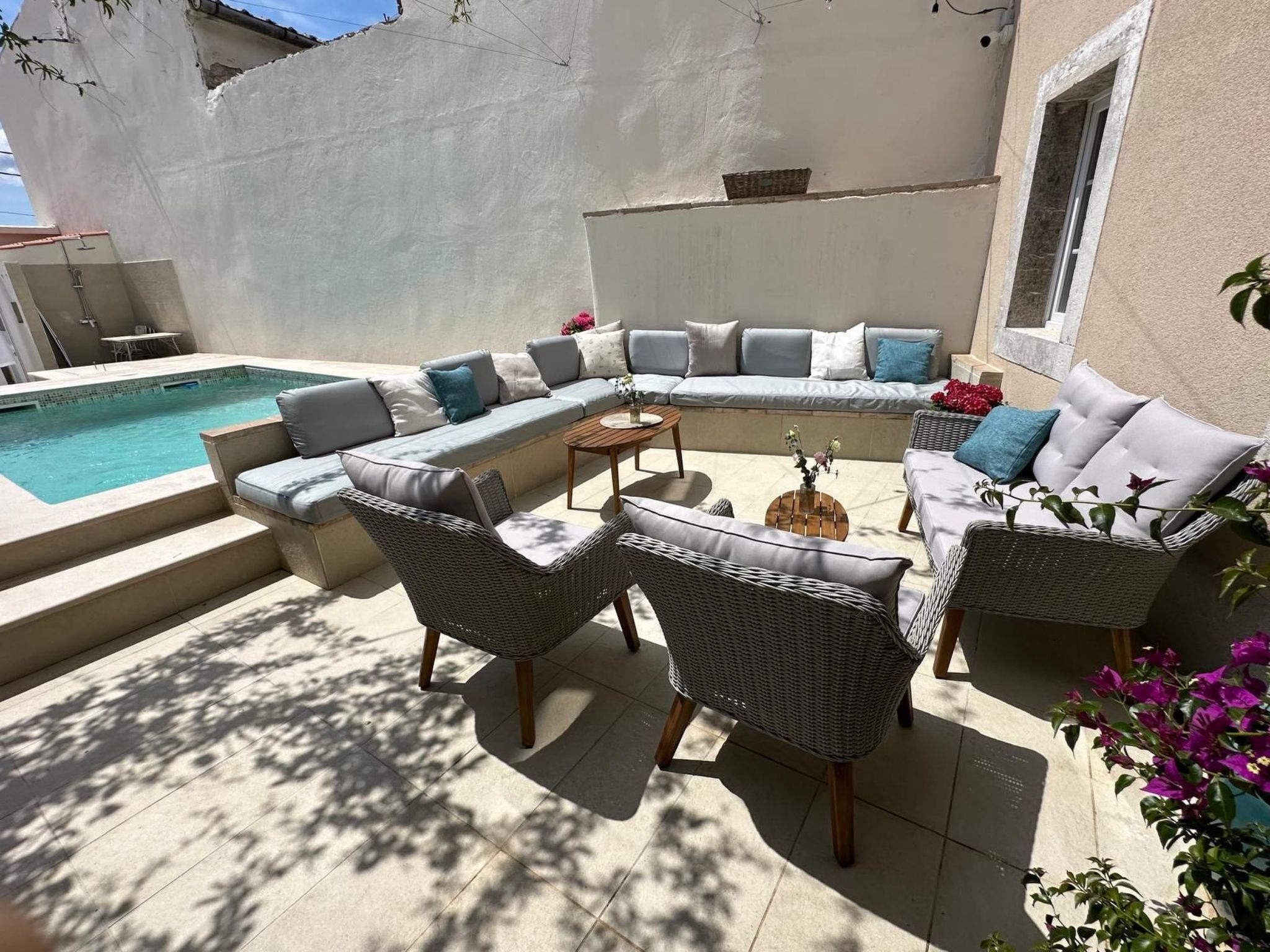 The enchantment continues as you step outside into your private courtyard oasis. Here, a sparkling swimming pool calls for leisurely dips under the sun, complemented by a summer kitchen and dedicated areas for dining and relaxation amidst lush greenery. This secluded haven offers a peaceful contrast to the bustling town surroundings, ensuring your stay is perfectly balanced between excitement and serenity.