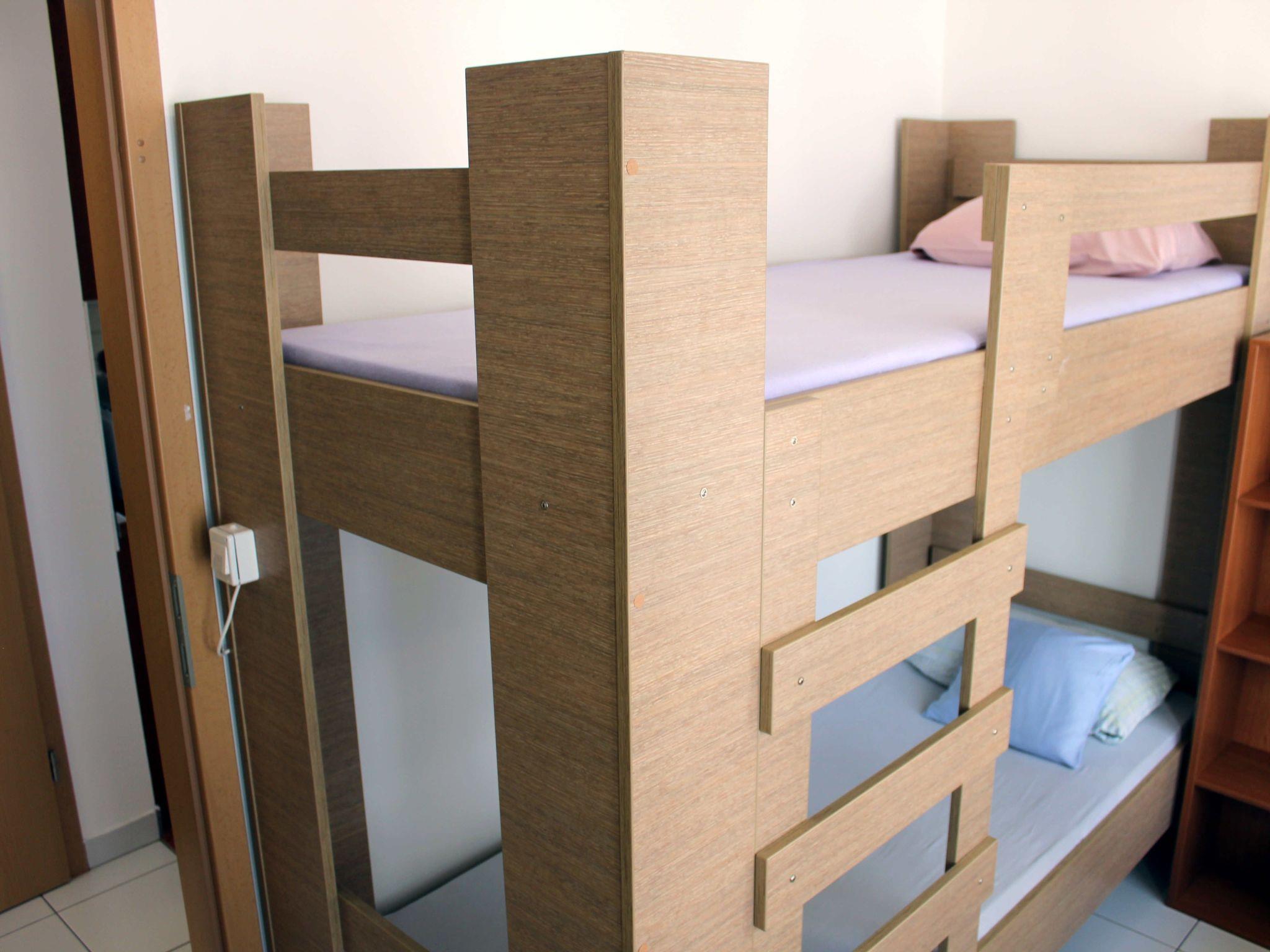 Inside, the apartment is equipped to ensure a comfortable stay, featuring three cozy bedrooms tailored to accommodate seven guests. Two of the bedrooms offer single beds, while the third is a delightful children's room equipped with bunk beds - ideal for younger guests. The living spaces are designed for comfort and convenience, with a dining area and a welcoming living room that leads out onto the balcony. Here, glimpses of the sea can be savored alongside your morning coffee or evening refreshments. To enhance your stay, the apartment is partially air-conditioned and boasts internet access, ensuring both cool retreats on warmer days and connectivity to the world outside.