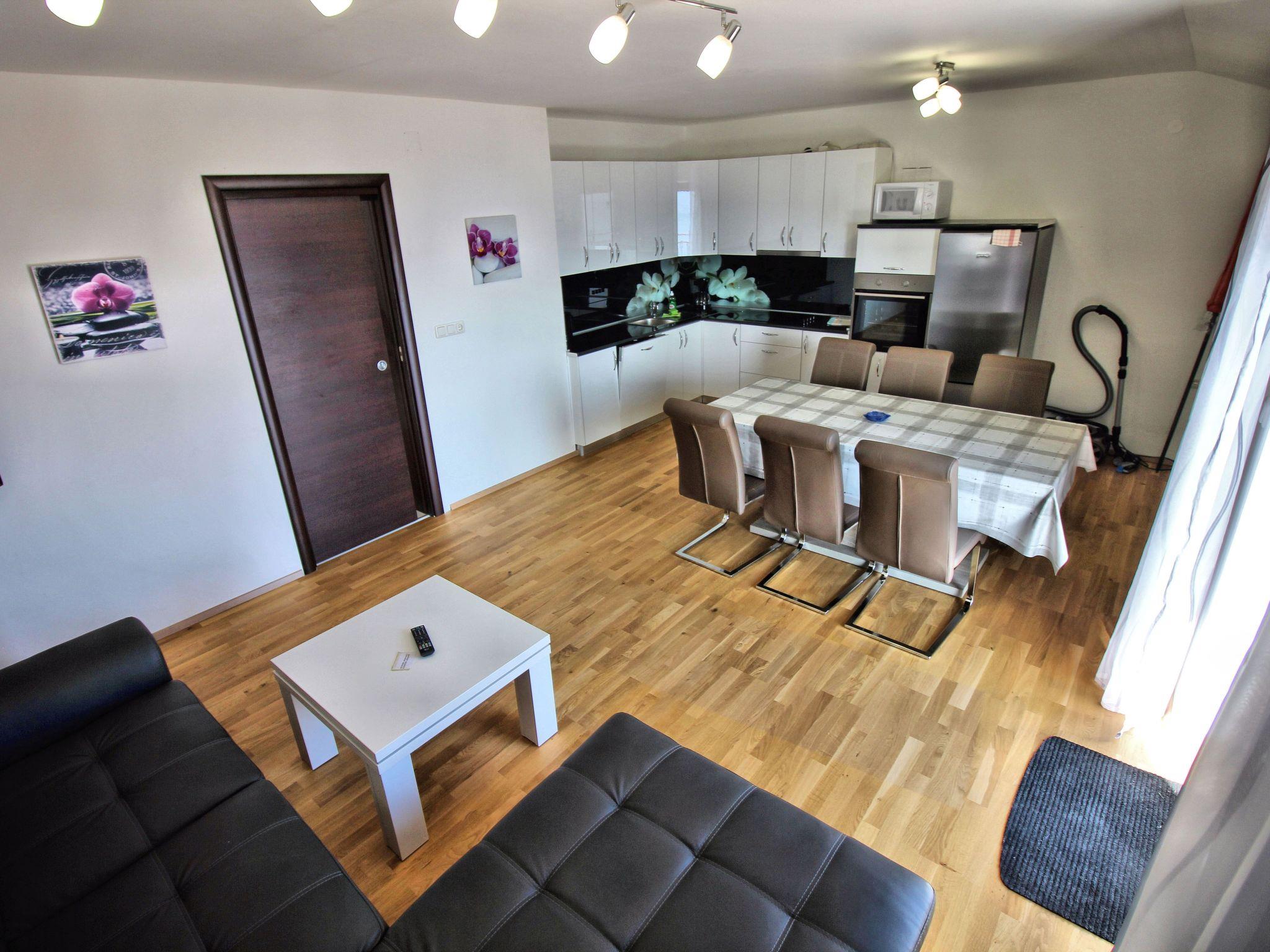 Manda Apartment House is located in a quiet part of Novi Vinodolski. Apartment Manda 3 is located on the second floor and features three bedrooms, a bathroom with a toilet and bathtub, and a second bathroom with a toilet and shower. The living room, dining room, and kitchen are separate spaces and can accommodate two additional people on a sofa bed. The apartment has a large balcony with a beautiful view of the sea and the surrounding area and outdoor furniture.