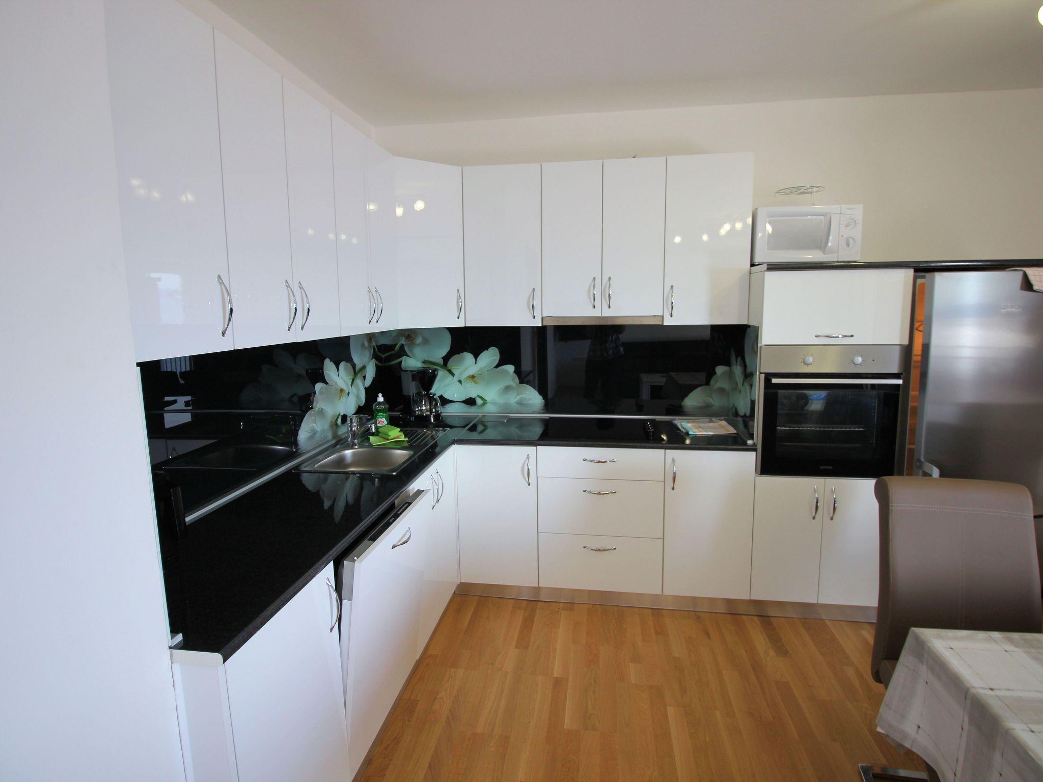 Kitchenette, dining table and seating for all guests. Dishes, pots, cutlery, etc. are provided. Dish towels are provided. Electric stove, number of hotplates: 4, oven, refrigerator with freezer compartment, coffee machine.