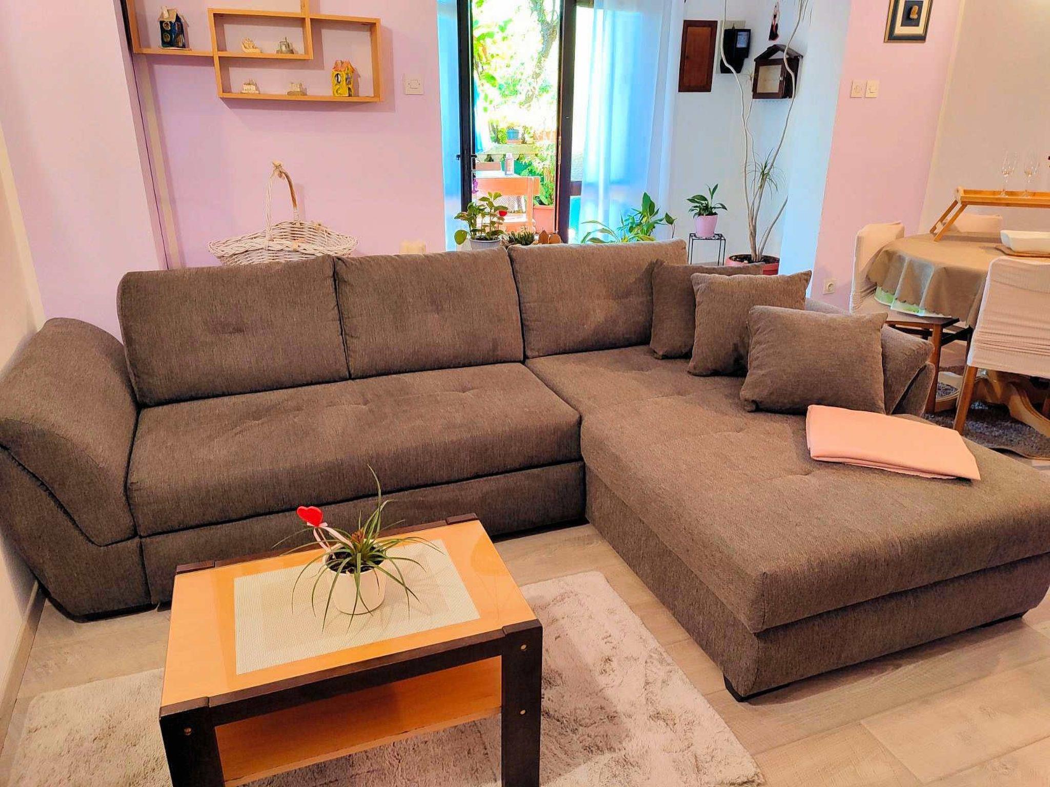 The outdoor space of the apartment is equally inviting. Guests are welcome to enjoy the communal garden, a serene spot for relaxation or joyful play with your pets. The terrace offers an additional area for leisure, ideal for morning coffees or evening chats under the stars. It's a vibrant setup that promises both privacy and the opportunity to mingle with fellow travelers.
