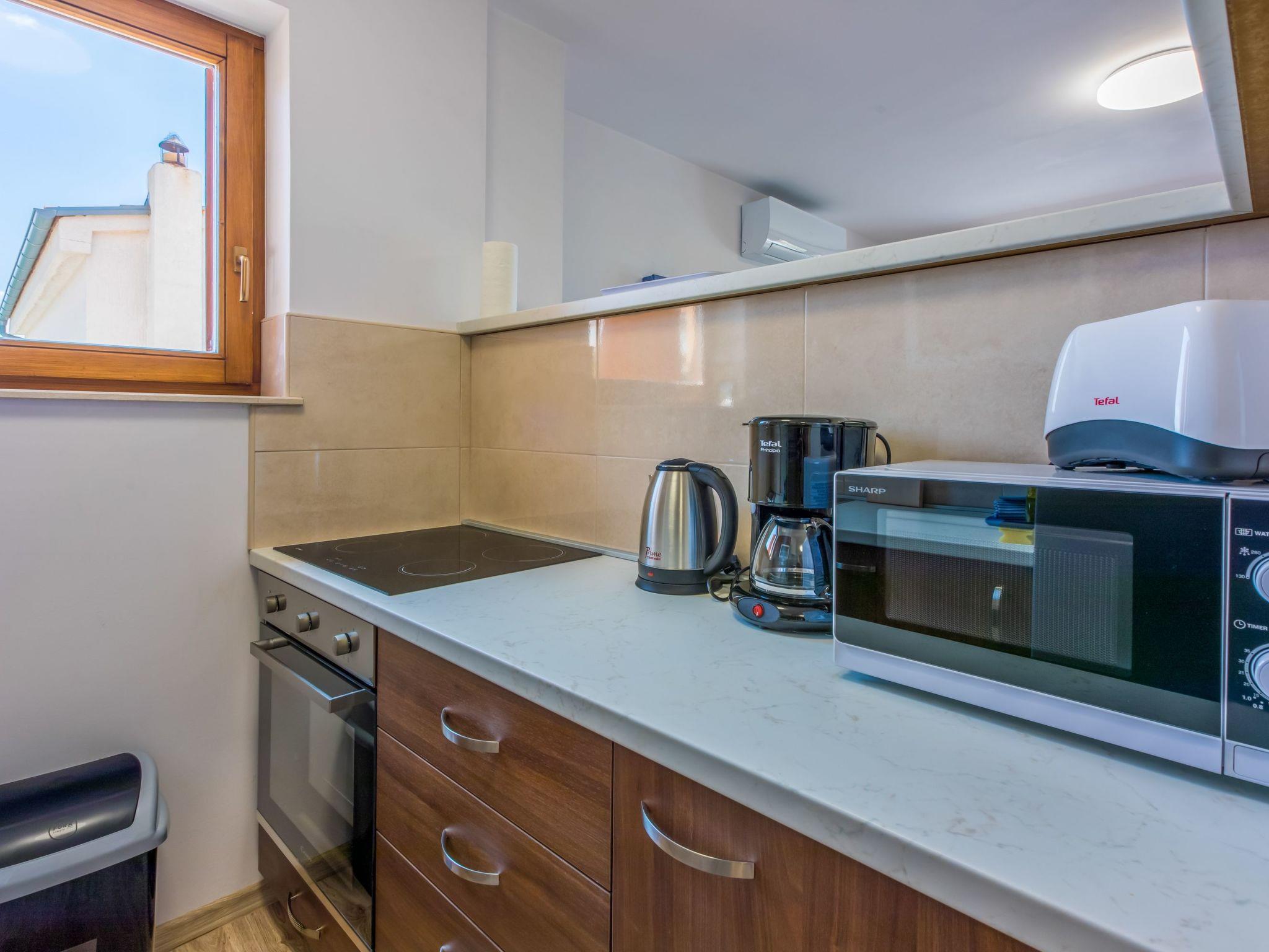 Flat on the mezzanine floor with private balcony right next to the pool. This is a detached house with 5 flats, consisting of two bedrooms, a bathroom with shower, a kitchen with dining room and access to the balcony.