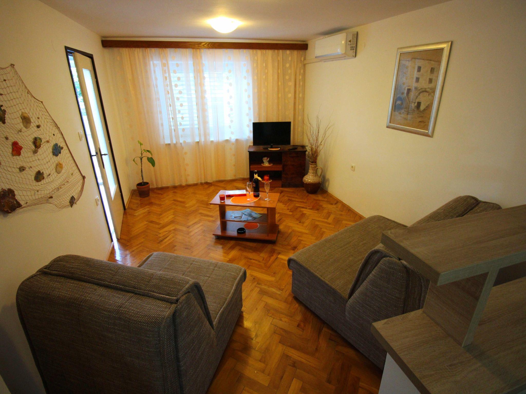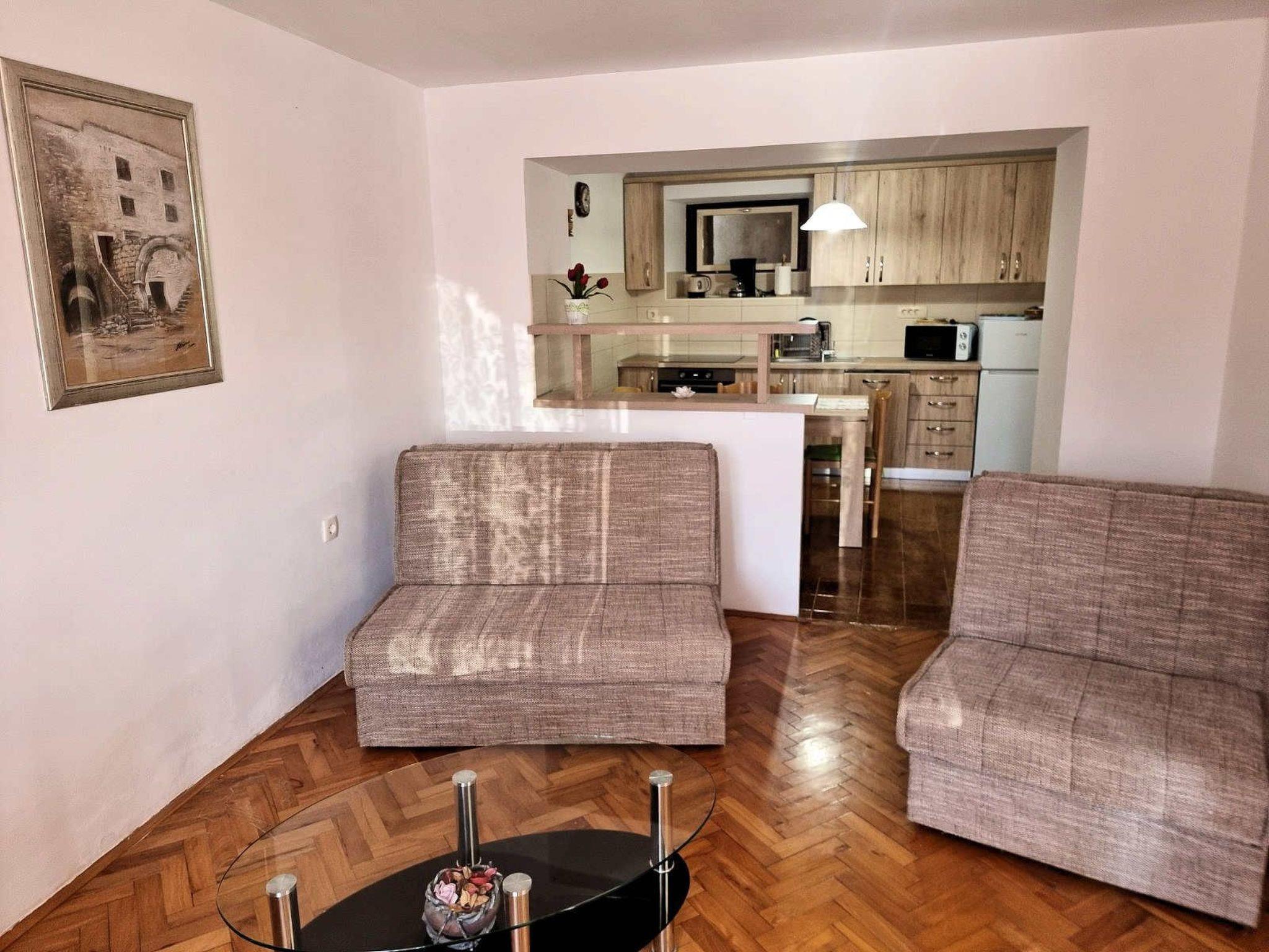 Beyond the comfort of this quaint apartment, Povile's delights await discovery. With the sea just 69m away, you're never far from a refreshing dip or a leisurely stroll along the water’s edge. A short 99m walk unveils a beautiful pebble beach, inviting days under the sun and by the turquoise expanse of the sea. For those with furry friends, a dog beach is accessible within 1500m, ensuring joyous outings for every family member. Essential amenities, including a grocery store, are conveniently located just 100m away, while the nearest town center is within a friendly 990m stroll, offering a glimpse into the local lifestyle and culture.