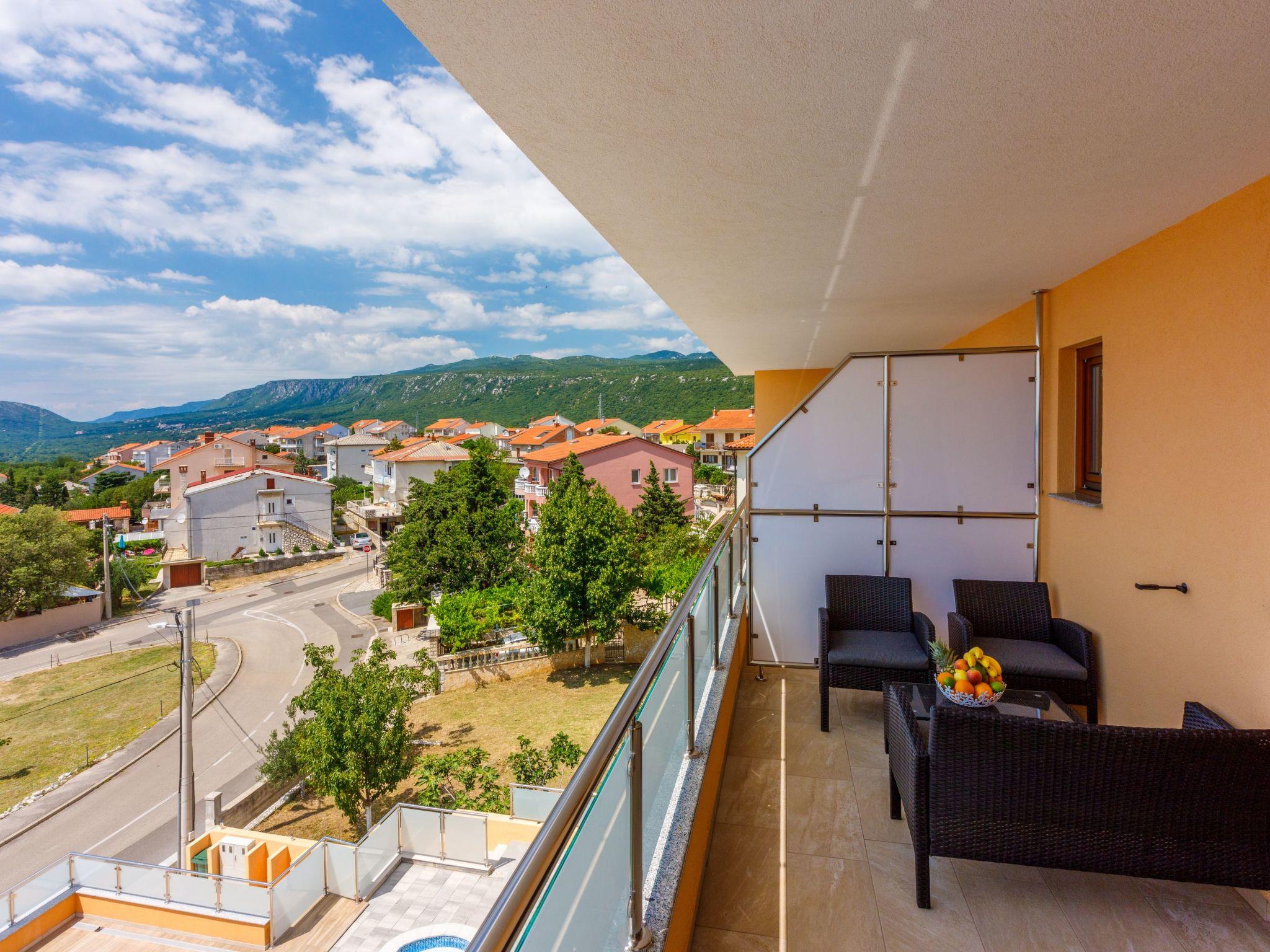 Flat on the mezzanine floor with private balcony right next to the pool. This is a detached house with 5 flats, consisting of two bedrooms, a bathroom with shower, a kitchen with dining room and access to the balcony.