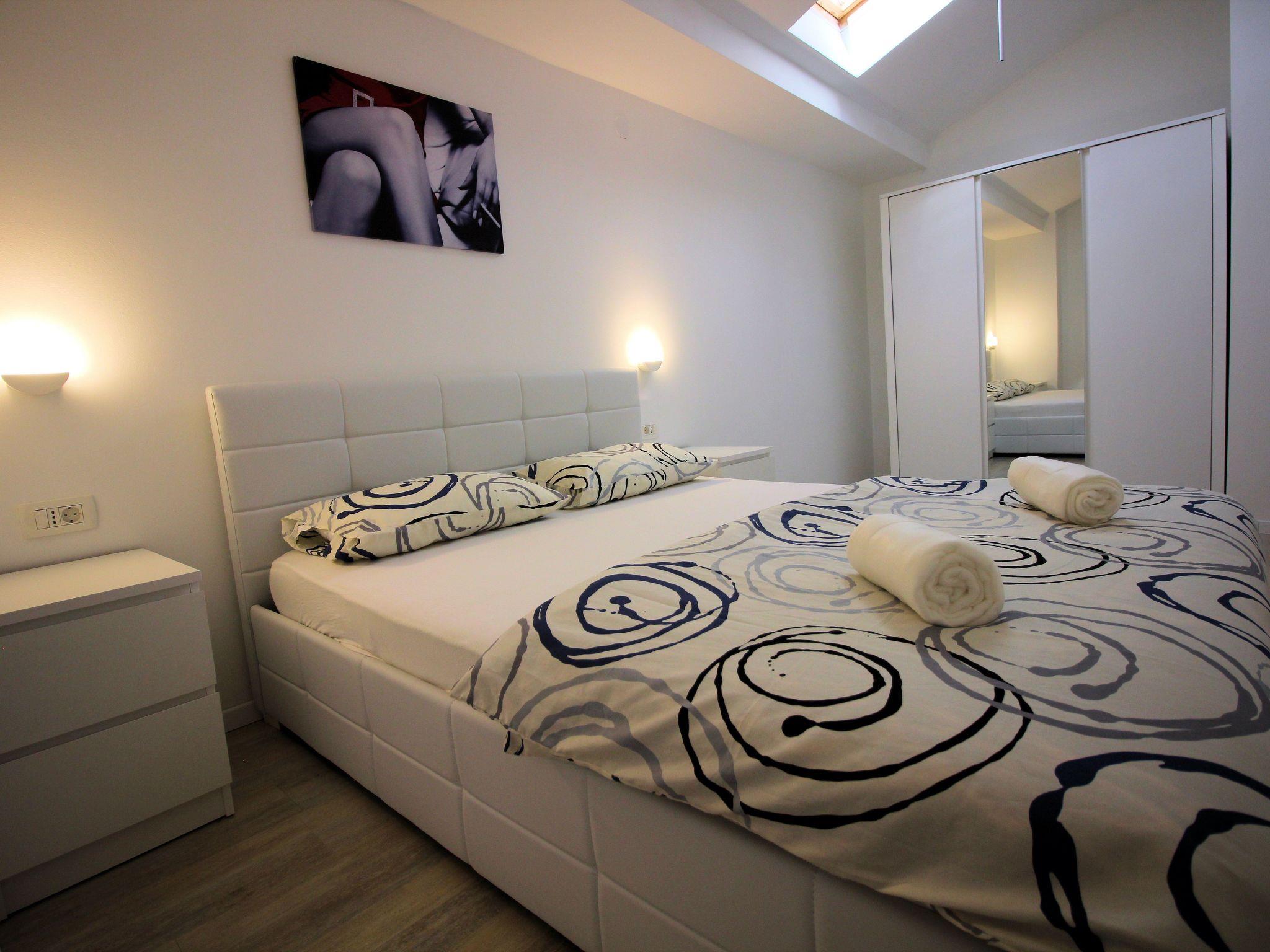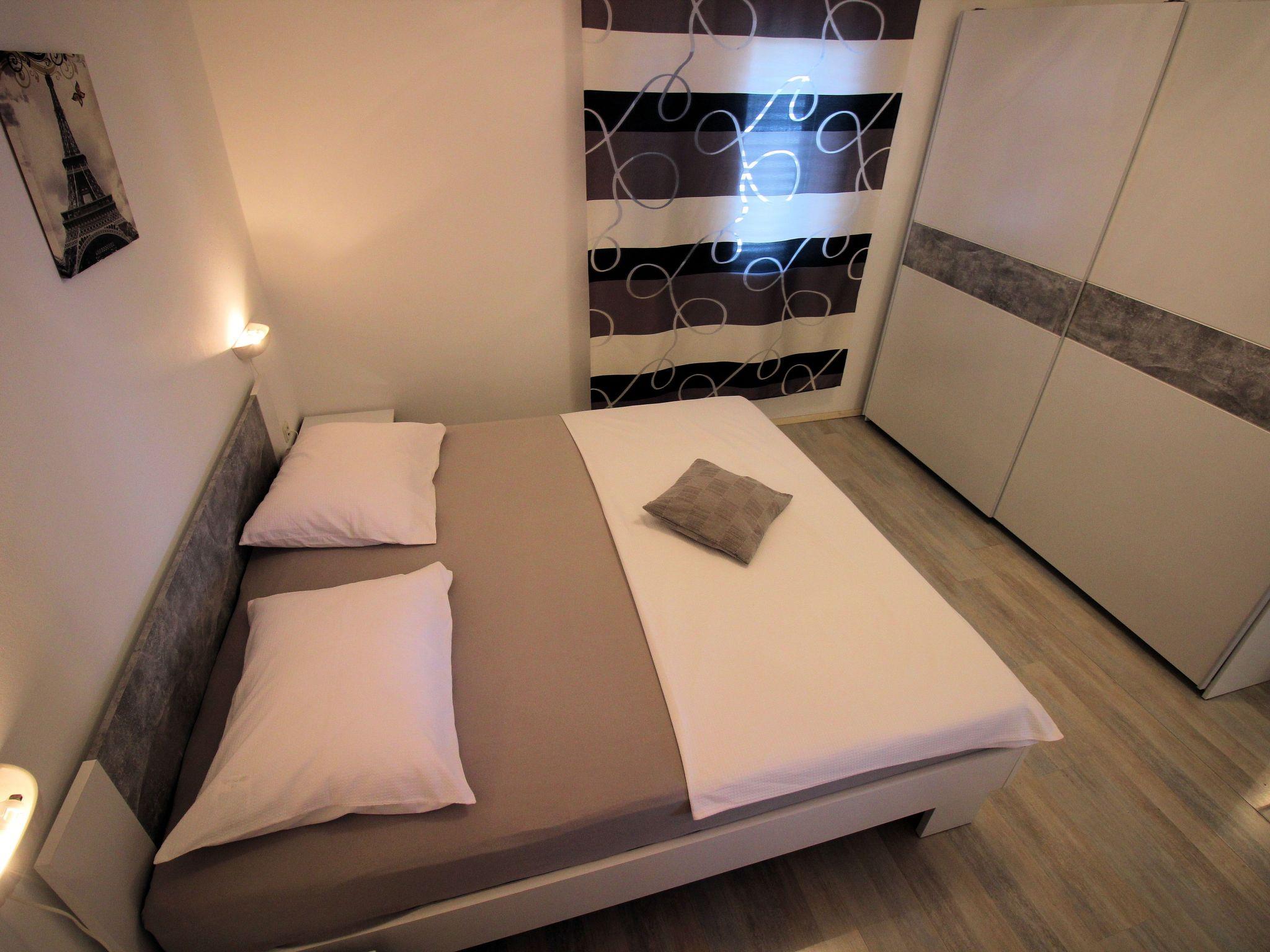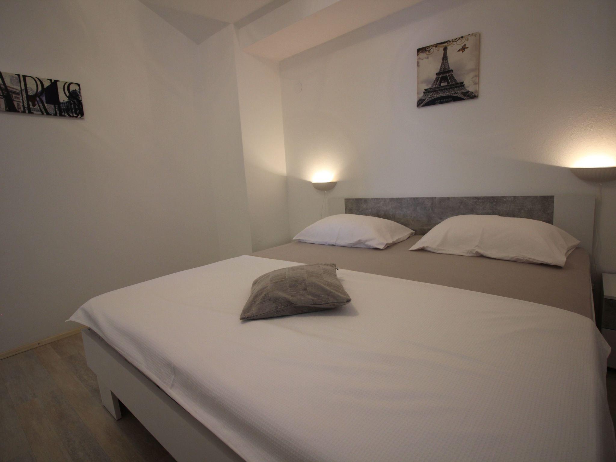 The apartment is located just 180 meters from one of the beautiful beaches. From the balcony you have a breathtaking view. It is located in the picturesque coastal town of Novi Vinodolski and is only 3 minutes from the beach. It is luxuriously furnished in a minimalist style and has a total area of ??82 m². This is divided into three bedrooms, a living room, a kitchen, a dining room, a bathroom and a balcony from which you can enjoy a breathtaking view of the sea. Capacity 4 + 1 people. The main bedroom has a double bed. The second bedroom has a double bed, the third room has two single beds that can be joined. The living room is connected to the kitchen (fully equipped) and dining room and from there you can also access the 12 m² balcony. The living room has air conditioning. You have your own parking space on the property, free Wi-Fi and there is a communal garden with a barbecue which can also be used.