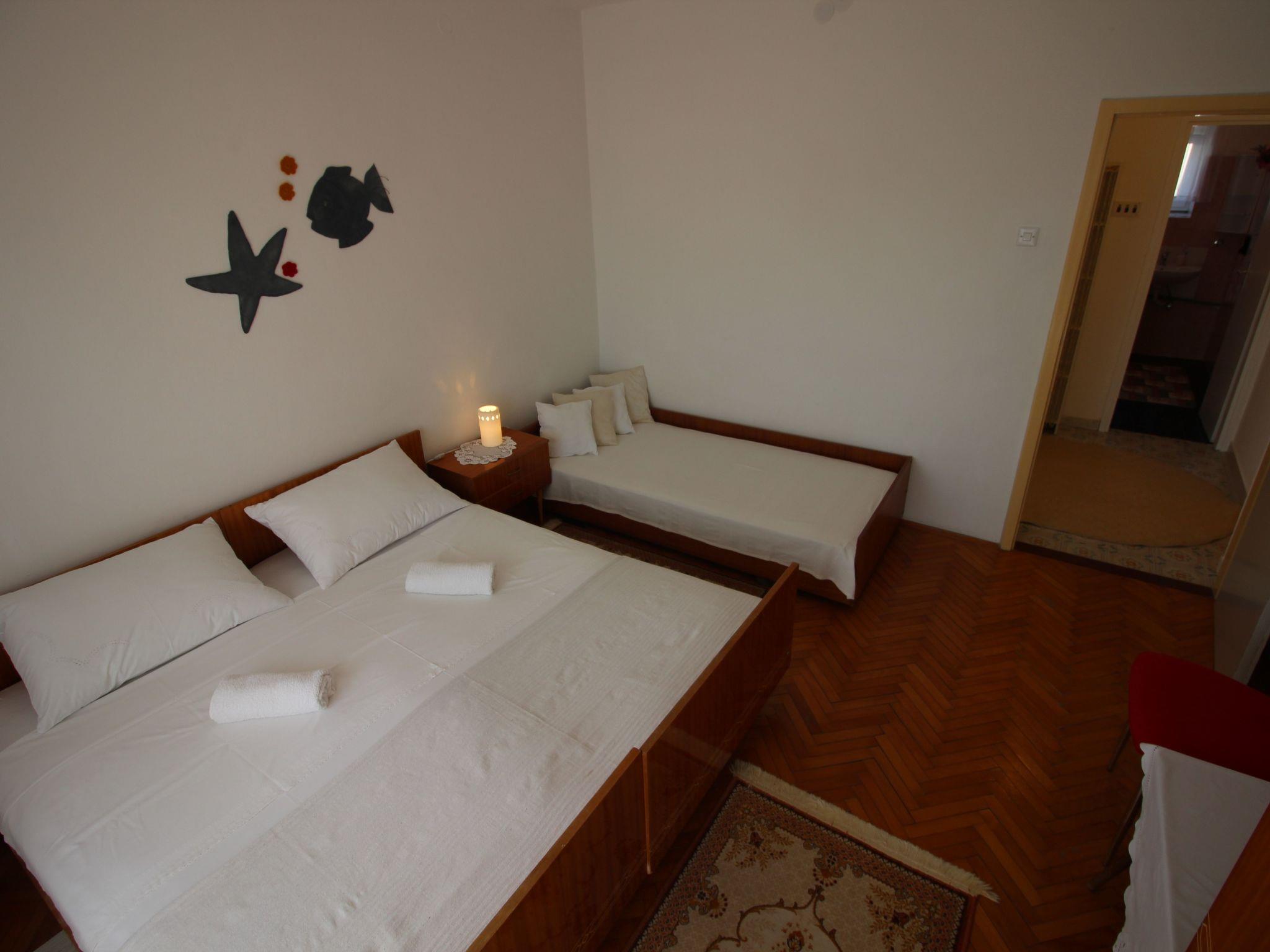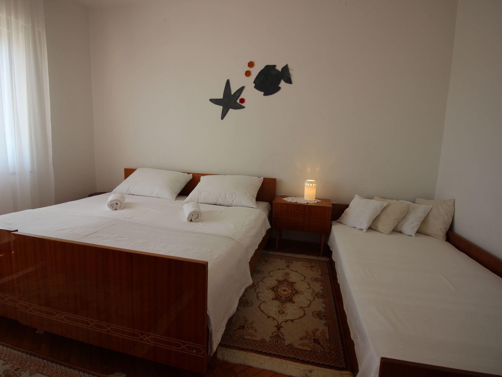 Bedrooms: double room with double bed, 1 extra bed, balcony, sea view, double room with double bed, balcony, sea view, parquet flooring,