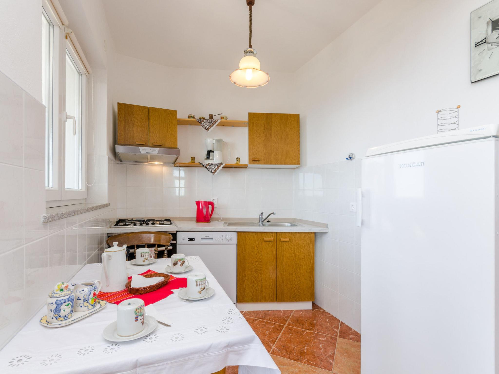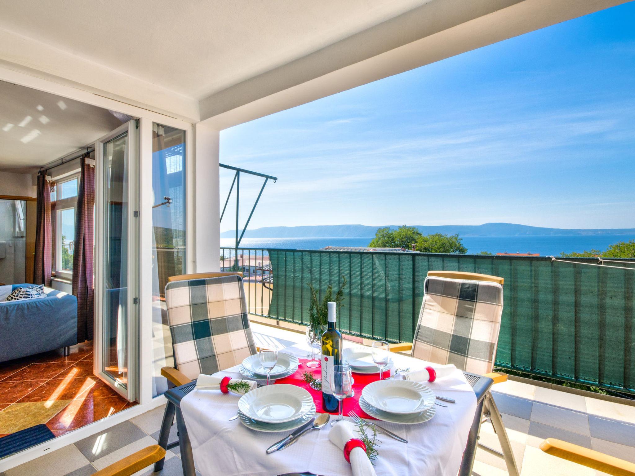 Apartment in Novi Vinodolski for 4 people, located in the center of Novi VinodolskiThe 54 m² holiday home is on the 2nd floor and has a living/dining room with kitchen, 2 bedrooms and 1 bathroom with shower and a separate toilet.A balcony is available.The parking is on the property.DETAILED DESCRIPTION:Living area:Living/dining room and kitchen are in one room, balcony, tiles, satellite TVKitchen:Kitchen, dishes, kitchen towels, electric/gas stove combined, hot plates: 4, oven, fridge without freezer, filter coffee machine, dishwasherBedroom:Double room, double room with double bed, parquetDouble room, double room with separate beds, balcony, parquetBathroom:Bathroom with toilet, showerSeparate toiletBalcony/terrace:Own balcony, partly covered, sea view, seating, balcony size: 18 m²More information:You can bring your own barbecue, parking on the property, pets not allowed, heating, air conditioning included in the price, bed linen available, towels available, washing machine at the landlord after consultation, internet via W-LANThe parking lot is in a secured area.Distances:To the sea 350 m, fine pebble beach 350 m, pebble beach 350 m, rocky beach 350 m, concrete beach 350 m, center 100 m, restaurant 100 m, supermarket 100 m, boat mooring 300 m, diving center 450 m
