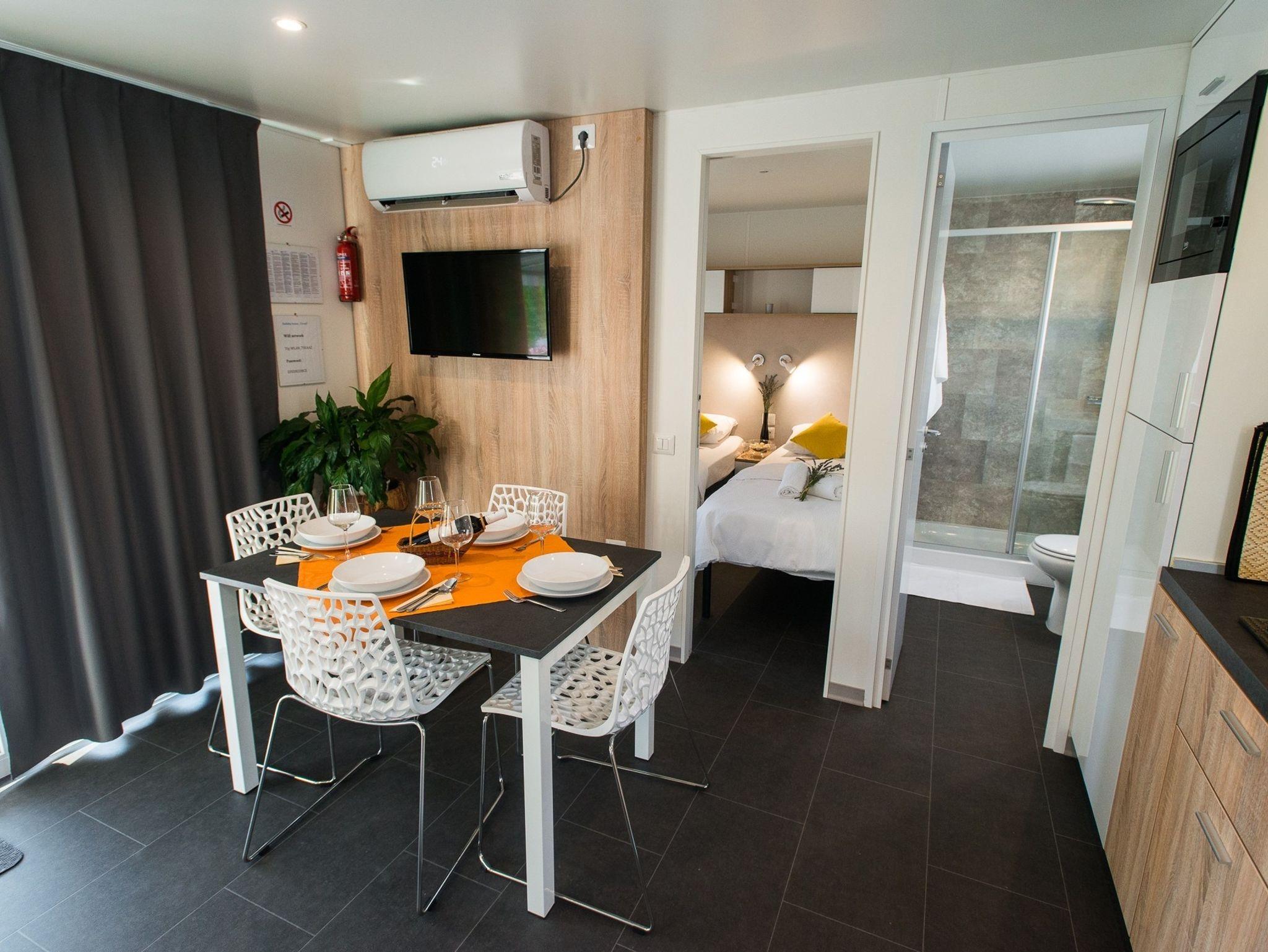 Ferienwohnung bietet Platz für 5 Gäste. Die Betten sind in Schlafzimmern, die es 2 gibt, und in Wohnzimmer, innerhalb einer Gesamtfläche von 34m2, angeordnet. Die Gäste haben eine eigene Terrasse zur Verfügung, auf der sie in warmen Sommernächten genießen können. Es ist erlaubt, Speisen auf dem Gemeinschafts-Grill vorzubereiten. Während ihres Aufenthalts können Gäste das gemeinsam zur Nutzung stehende Schwimmbad benutzen. IM PREIS INBEGRIFFEN: Kurtaxe, Endreinigung, Klimatisierung, Pool, Parkplatz, Internet, Föhn. Die Verfügbarkeit zusätzlicher Dienstleistungen in Ihrem reservierten Termin und die Preise derselben (falls nicht aufgeführt) müssen im Voraus überprüft werden. Zusätzliche Dienstleistungen die in der Zahlungsaufforderung nicht aufgeführt sind werden direkt beim Vermieter bezahlt, angenommen der Gast nutzt auch diese.