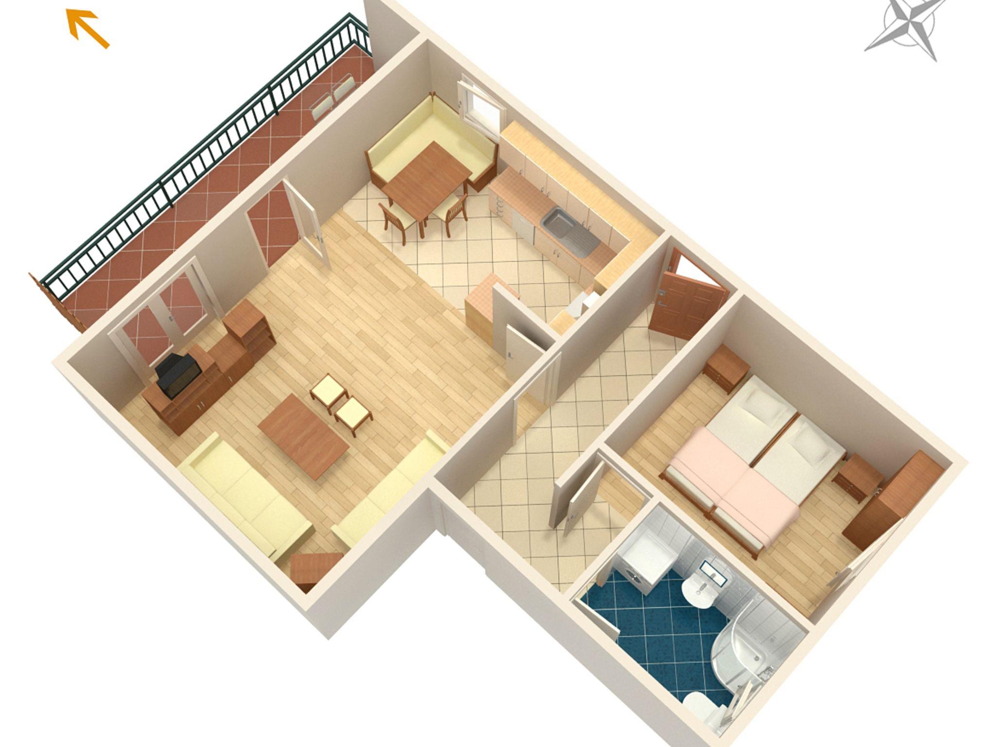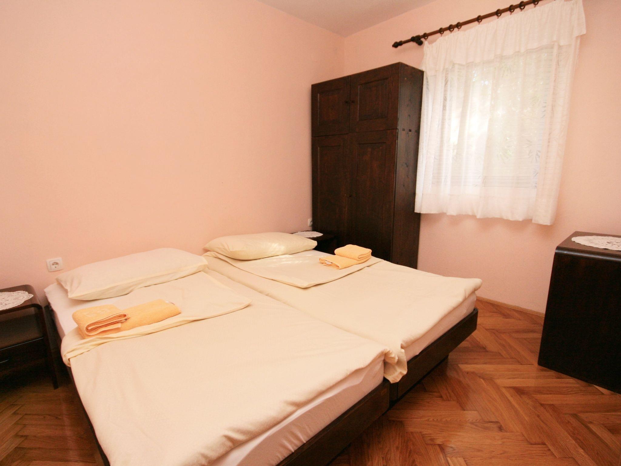 Ferienwohnung bietet Platz für 4 Gäste. Die Betten sind in Schlafzimmern, die es 1 gibt, und in Wohnzimmer, innerhalb einer Gesamtfläche von 49m2, angeordnet. Die Gäste haben einen eigenen Balkon zur Verfügung, auf der sie in warmen Sommernächten genießen können. Das Apartment bietet Meerblick. Es ist erlaubt, Speisen auf dem Gemeinschafts-Grill vorzubereiten. IM PREIS INBEGRIFFEN: Kurtaxe, Endreinigung, Klimatisierung, Parkplatz, Internet, Kinderbett, Bügeleisen, Föhn, tragbarer Grill. VERBINDLICHE ZUSÄTZLICHE KOSTEN: Aufzahlung für Kurzaufenthalte (prozentualer Zuschlag pro Nächtigungsanzahl: 30% - 1, 20% - 2, 10% - 3). Die Verfügbarkeit zusätzlicher Dienstleistungen in Ihrem reservierten Termin und die Preise derselben (falls nicht aufgeführt) müssen im Voraus überprüft werden. Zusätzliche Dienstleistungen die in der Zahlungsaufforderung nicht aufgeführt sind werden direkt beim Vermieter bezahlt, angenommen der Gast nutzt auch diese. Ermäßigung auf den Grundpreis: Gratistag 14=13 (bei einem Aufenthalt von 14 Tagen oder mehr erhalten Sie einen Gratistag für den Aufenthalt bis 31.12.26).