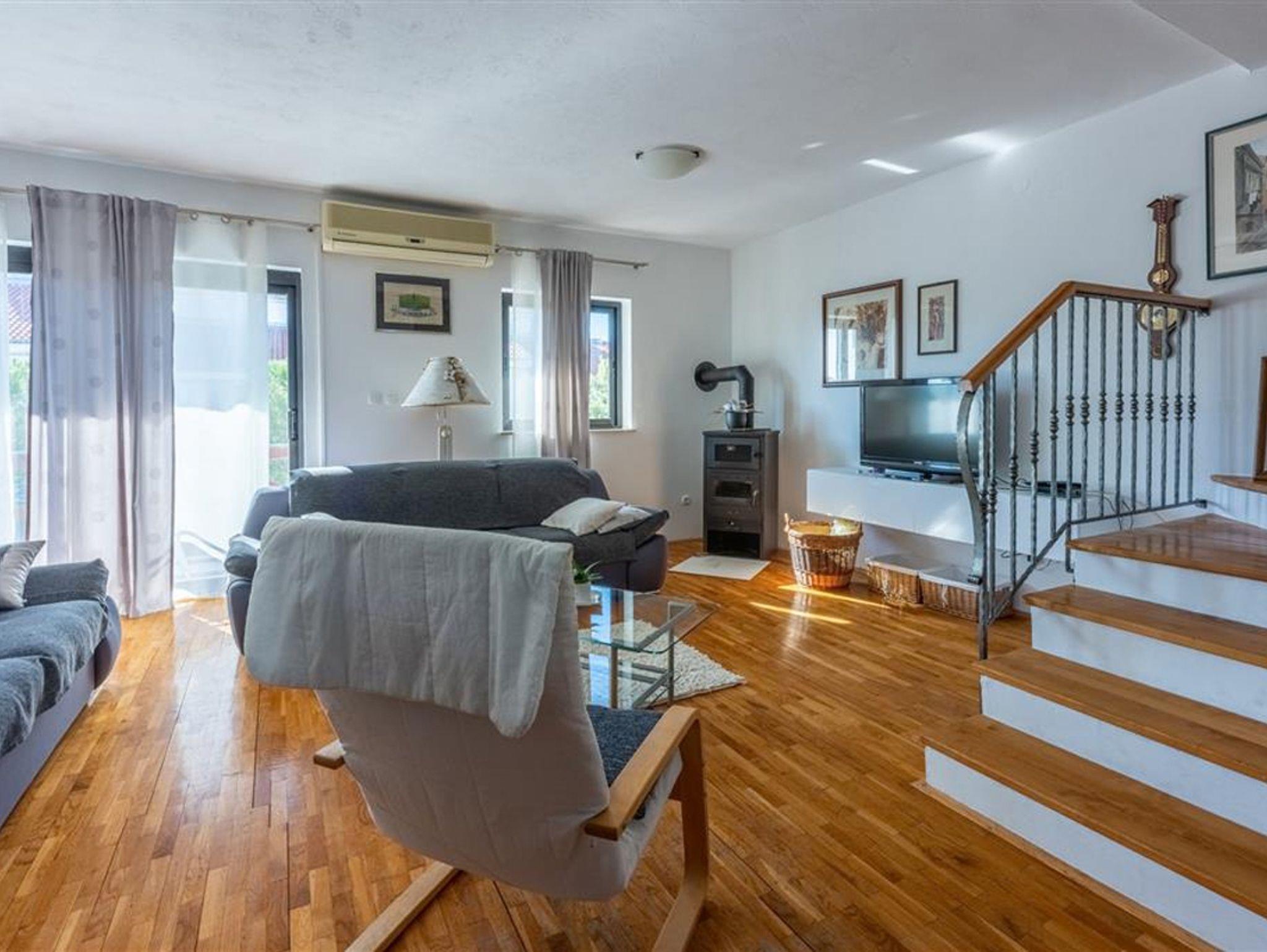Haus bietet Platz für 12 Gäste. Die Betten sind in Schlafzimmern, die es 5 gibt, und in Wohnzimmer, innerhalb einer Gesamtfläche von 177m2, angeordnet. Die Gäste haben eine eigene Terrasse zur Verfügung, auf der sie in warmen Sommernächten genießen können. Das Haus bietet Meerblick. Für vollen Genuss und Entspannung gibt es einen privaten Grill für Gäste dieser Unterkunft. In der Unterkunftseinheit besteht die Möglichkeit des Mitbringens von Haustieren gegen Aufpreis. IM PREIS INBEGRIFFEN: Kurtaxe, Endreinigung, Parkplatz, Internet, Bügelbrett, Föhn. UNVERBINDLICHE ZUSÄTZLICHE KOSTEN: Klimatisierung (15,00 € pro Nacht), Haustiere (5,00 € pro Nacht). Die Verfügbarkeit zusätzlicher Dienstleistungen in Ihrem reservierten Termin und die Preise derselben (falls nicht aufgeführt) müssen im Voraus überprüft werden. Zusätzliche Dienstleistungen die in der Zahlungsaufforderung nicht aufgeführt sind werden direkt beim Vermieter bezahlt, angenommen der Gast nutzt auch diese.