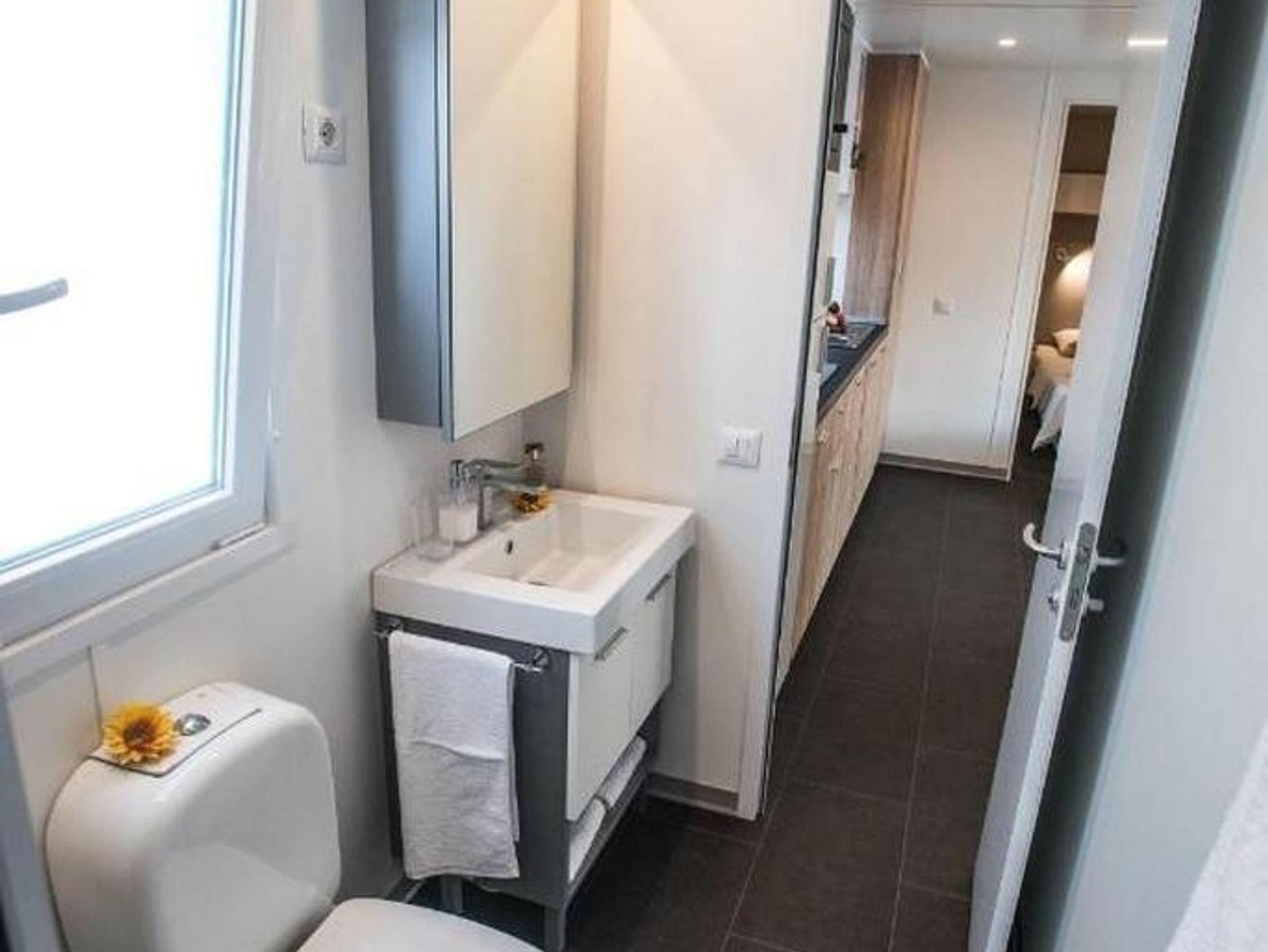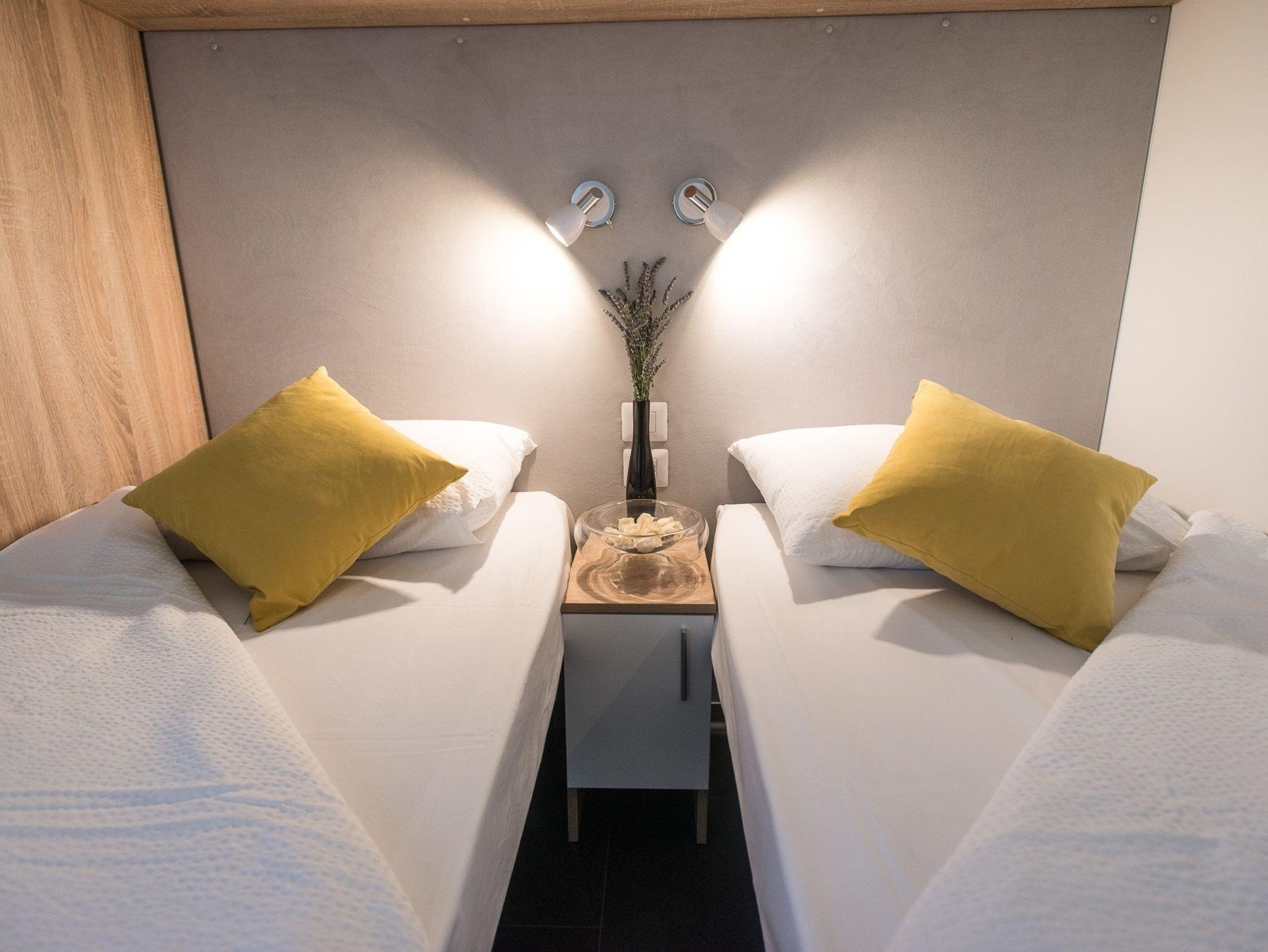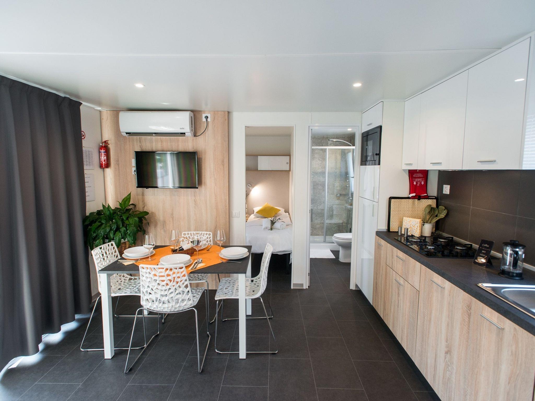 Ferienwohnung bietet Platz für 5 Gäste. Die Betten sind in Schlafzimmern, die es 2 gibt, und in Wohnzimmer, innerhalb einer Gesamtfläche von 34m2, angeordnet. Die Gäste haben eine eigene Terrasse zur Verfügung, auf der sie in warmen Sommernächten genießen können. Es ist erlaubt, Speisen auf dem Gemeinschafts-Grill vorzubereiten. Während ihres Aufenthalts können Gäste das gemeinsam zur Nutzung stehende Schwimmbad benutzen. IM PREIS INBEGRIFFEN: Kurtaxe, Endreinigung, Klimatisierung, Pool, Parkplatz, Internet, Föhn. Die Verfügbarkeit zusätzlicher Dienstleistungen in Ihrem reservierten Termin und die Preise derselben (falls nicht aufgeführt) müssen im Voraus überprüft werden. Zusätzliche Dienstleistungen die in der Zahlungsaufforderung nicht aufgeführt sind werden direkt beim Vermieter bezahlt, angenommen der Gast nutzt auch diese.