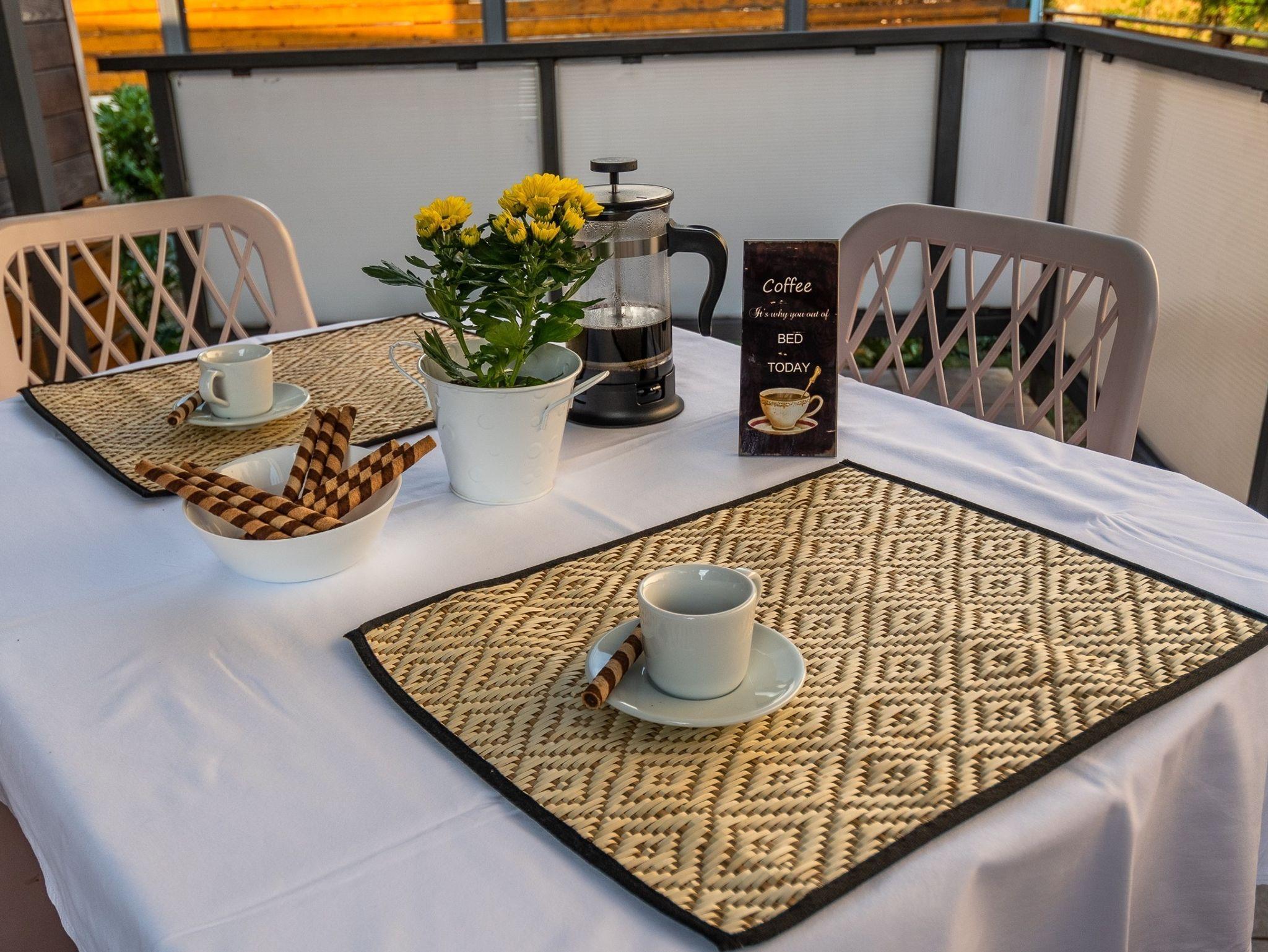 Umgebung des Objekts (Eingerichtet), Hof (150m2, Kinderbereich, Sitzbereich), Parkplatz (Anzahl der Parkplätze: 8, Entfernung vom Objekt: 20 m), Pool: gemeinsam, Dimensionen: 6m x 5m x 1.5m, Wassertyp: Süßwasser, Grill: gemeinsam, WiFi Internet, Föhn