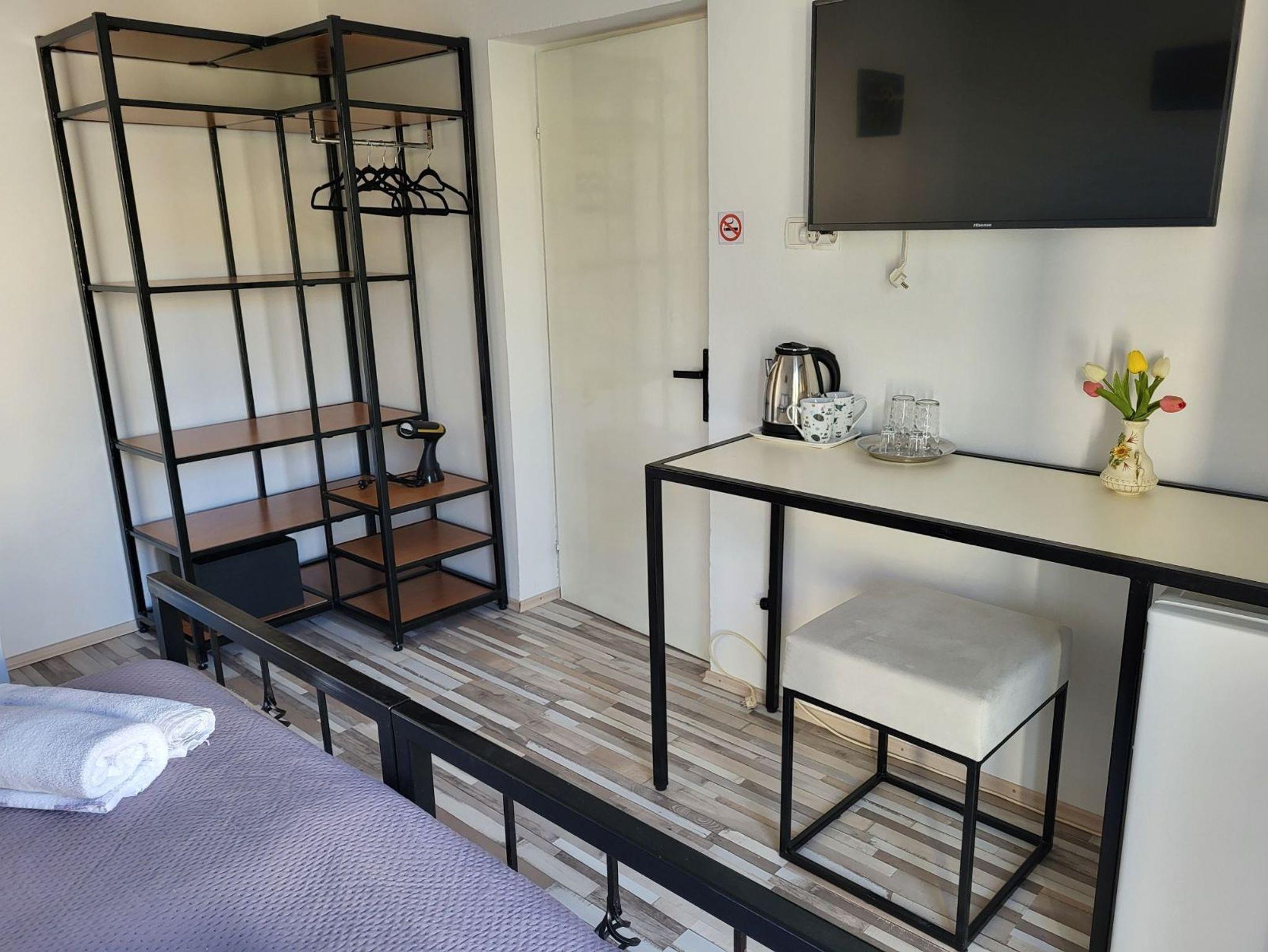 Zimmer bietet Platz für 2 Gäste. Die Betten sind in Schlafzimmern, die es 1 gibt, innerhalb einer Gesamtfläche von 18m2, angeordnet. Die Gäste haben einen eigenen Balkon zur Verfügung, auf der sie in warmen Sommernächten genießen können. Die reservierte Unterkunftseinheit ist ein Zimmer mit eigenem Badezimmer ohne die Möglichkeit der Nutzung einer Küche. IM PREIS INBEGRIFFEN: Kurtaxe, Endreinigung, Klimatisierung, Parkplatz, Internet, Bügeleisen, Föhn. VERBINDLICHE ZUSÄTZLICHE KOSTEN: Aufzahlung für Kurzaufenthalte (prozentualer Zuschlag pro Nächtigungsanzahl: 30% - 1, 20% - 2, 10% - 3). Die Verfügbarkeit zusätzlicher Dienstleistungen in Ihrem reservierten Termin und die Preise derselben (falls nicht aufgeführt) müssen im Voraus überprüft werden. Zusätzliche Dienstleistungen die in der Zahlungsaufforderung nicht aufgeführt sind werden direkt beim Vermieter bezahlt, angenommen der Gast nutzt auch diese. Ermäßigung auf den Grundpreis: Gratistag 14=13 (bei einem Aufenthalt von 14 Tagen oder mehr erhalten Sie einen Gratistag für den Aufenthalt bis 31.12.26).