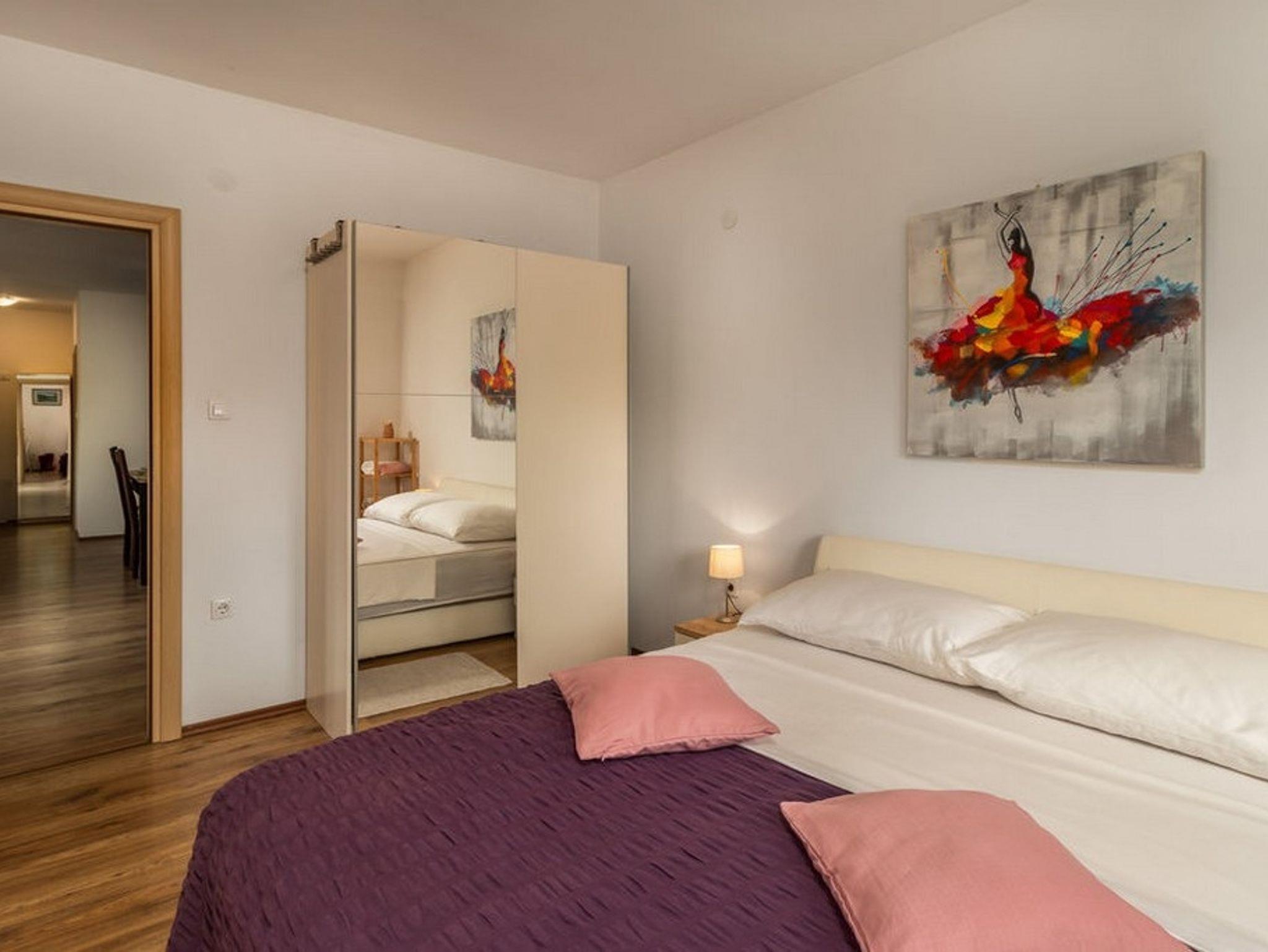 Ferienwohnung bietet Platz für 6 Gäste. Die Betten sind in Schlafzimmern, die es 2 gibt, und in Wohnzimmer, innerhalb einer Gesamtfläche von 66m2, angeordnet. Die Gäste haben einen eigenen Balkon zur Verfügung, auf der sie in warmen Sommernächten genießen können. IM PREIS INBEGRIFFEN: Kurtaxe, Endreinigung, Klimatisierung, Parkplatz, Internet, Bügeleisen, Bügelbrett, Föhn. Die Verfügbarkeit zusätzlicher Dienstleistungen in Ihrem reservierten Termin und die Preise derselben (falls nicht aufgeführt) müssen im Voraus überprüft werden. Zusätzliche Dienstleistungen die in der Zahlungsaufforderung nicht aufgeführt sind werden direkt beim Vermieter bezahlt, angenommen der Gast nutzt auch diese. Ermäßigung auf den Grundpreis: Gratistag 14=13 (bei einem Aufenthalt von 14 Tagen oder mehr erhalten Sie einen Gratistag für den Aufenthalt bis 31.12.26).
