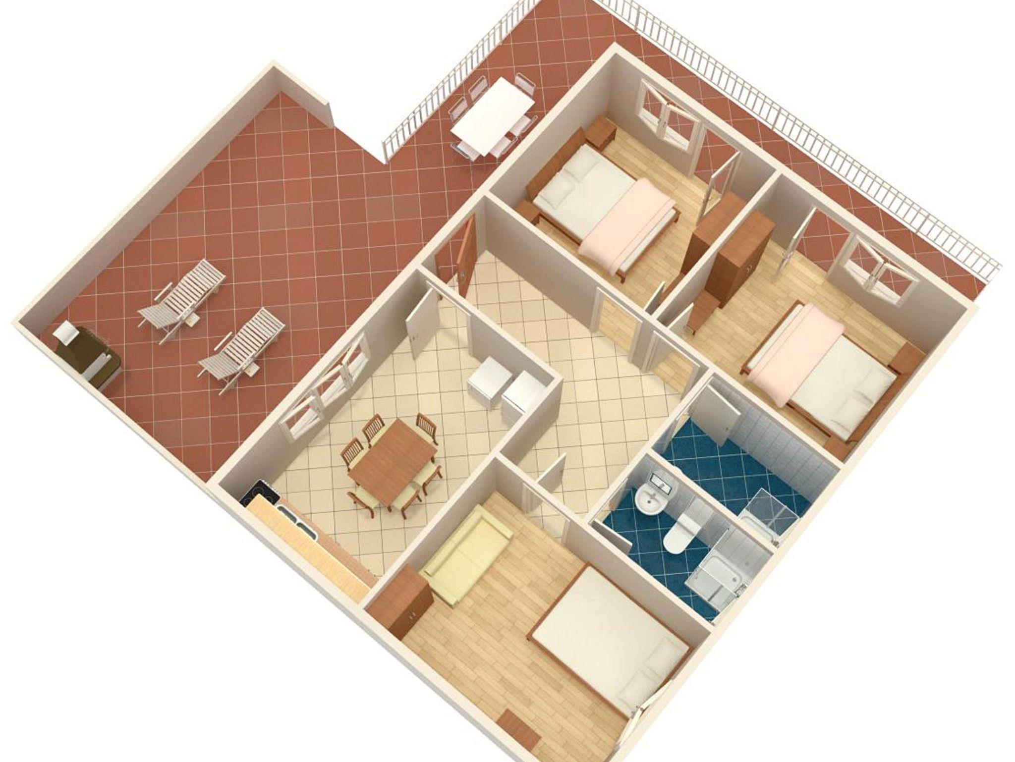 Ferienwohnung bietet Platz für 4 Gäste. Die Betten sind in Schlafzimmern, die es 2 gibt, innerhalb einer Gesamtfläche von 61m2, angeordnet. Die Gäste haben eine eigene Terrasse zur Verfügung, auf der sie in warmen Sommernächten genießen können. Das Apartment bietet Meerblick. Für vollen Genuss und Entspannung gibt es einen privaten Grill für Gäste dieser Unterkunft. IM PREIS INBEGRIFFEN: Kurtaxe, Endreinigung, Klimatisierung, Parkplatz, Internet, Bügeleisen, Bügelbrett, Föhn, tragbarer Grill. VERBINDLICHE ZUSÄTZLICHE KOSTEN: Aufzahlung für Kurzaufenthalte (prozentualer Zuschlag pro Nächtigungsanzahl: 30% - 1, 20% - 2, 10% - 3). UNVERBINDLICHE ZUSÄTZLICHE KOSTEN: Wäschewaschen (5,00 € Waschen). Die Verfügbarkeit zusätzlicher Dienstleistungen in Ihrem reservierten Termin und die Preise derselben (falls nicht aufgeführt) müssen im Voraus überprüft werden. Zusätzliche Dienstleistungen die in der Zahlungsaufforderung nicht aufgeführt sind werden direkt beim Vermieter bezahlt, angenommen der Gast nutzt auch diese.