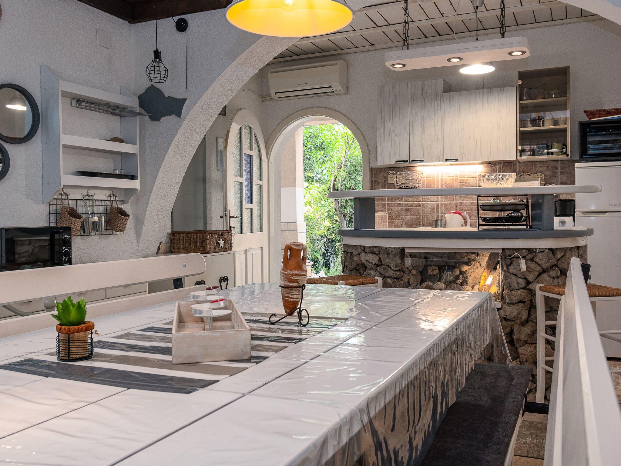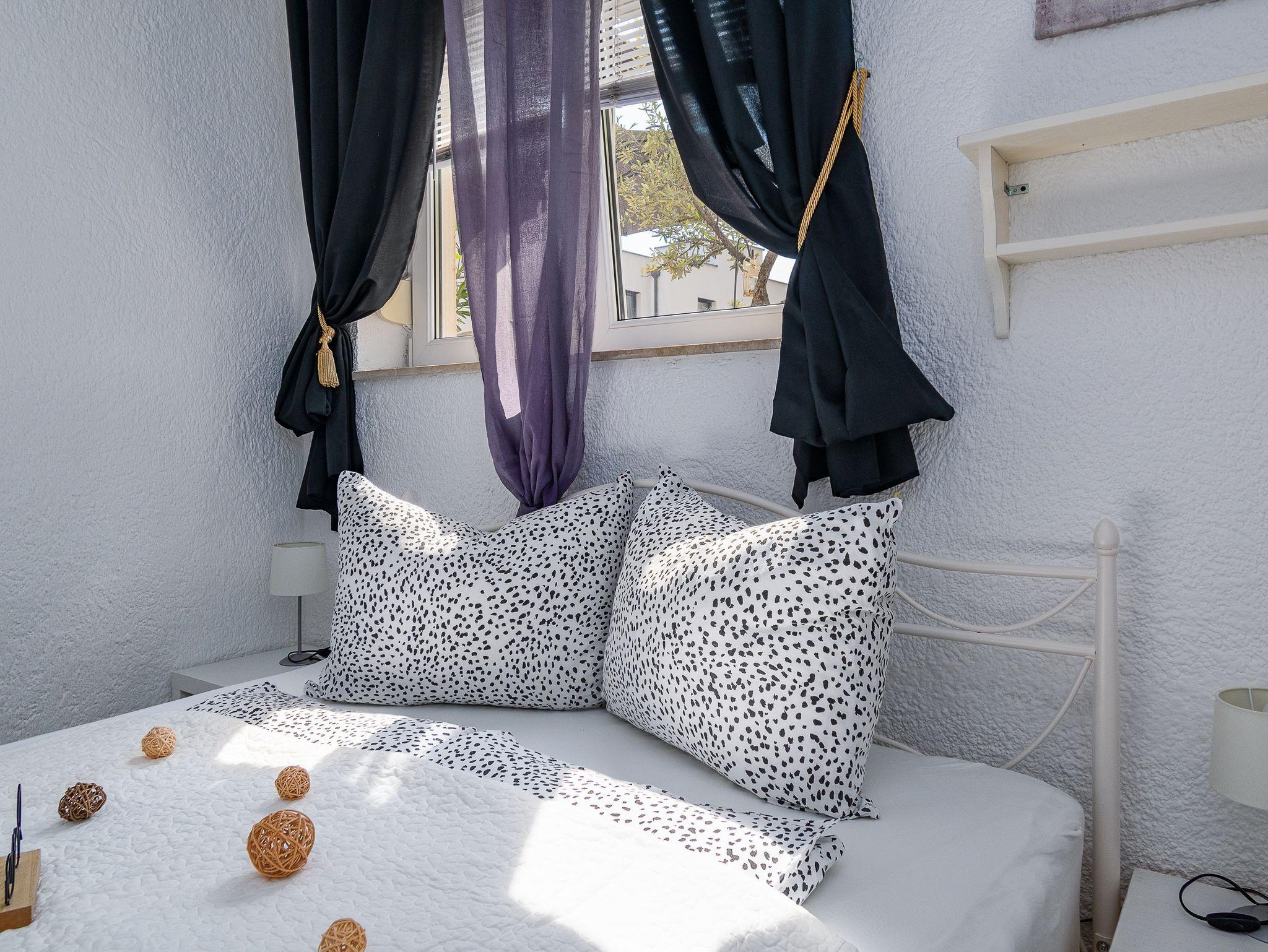 Ferienwohnung bietet Platz für 5 Gäste. Die Betten sind in Schlafzimmern, die es 2 gibt, und in Esszimmer, innerhalb einer Gesamtfläche von 49m2, angeordnet. Die Gäste haben eine eigene Terrasse zur Verfügung, auf der sie in warmen Sommernächten genießen können. Das Apartment bietet Meerblick. Für vollen Genuss und Entspannung gibt es einen privaten Grill für Gäste dieser Unterkunft. Während ihres Aufenthalts können Gäste das gemeinsam zur Nutzung stehende Schwimmbad benutzen. Durch die Terrasse der gebuchten Unterkunftseinheit gehen auch andere Gäste oder Vermieter. Unterkunftseinheit hat Räume, die von dem Rest der Einheit abgetrennt werden. IM PREIS INBEGRIFFEN: Kurtaxe, Endreinigung, Klimatisierung, Pool, Parkplatz, Internet. Die Verfügbarkeit zusätzlicher Dienstleistungen in Ihrem reservierten Termin und die Preise derselben (falls nicht aufgeführt) müssen im Voraus überprüft werden. Zusätzliche Dienstleistungen die in der Zahlungsaufforderung nicht aufgeführt sind werden direkt beim Vermieter bezahlt, angenommen der Gast nutzt auch diese.