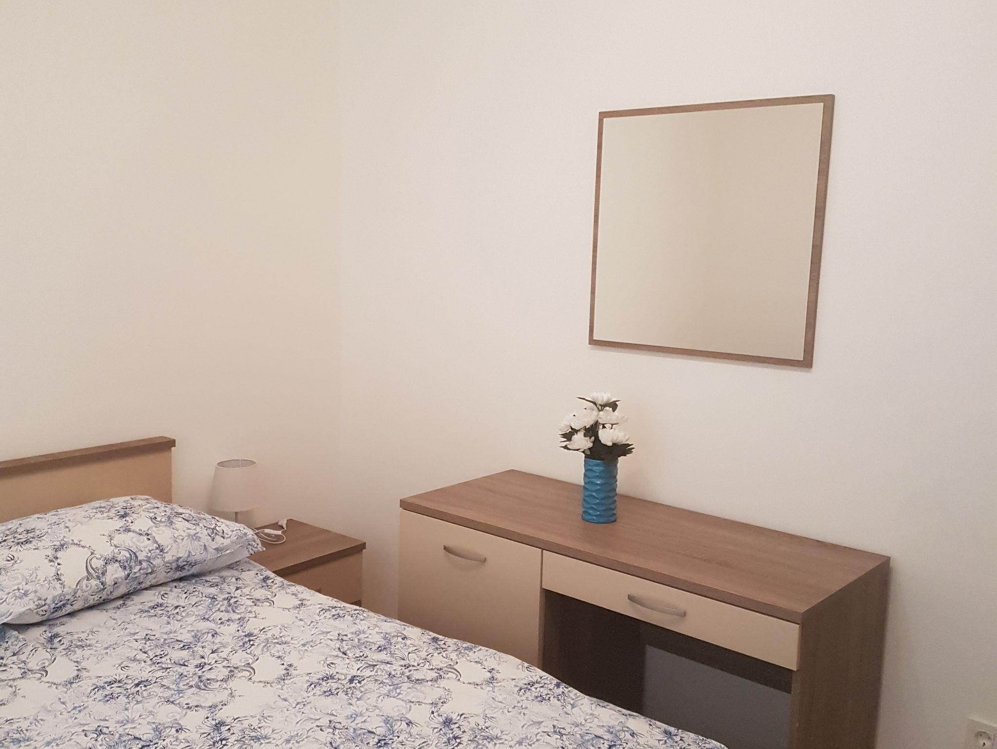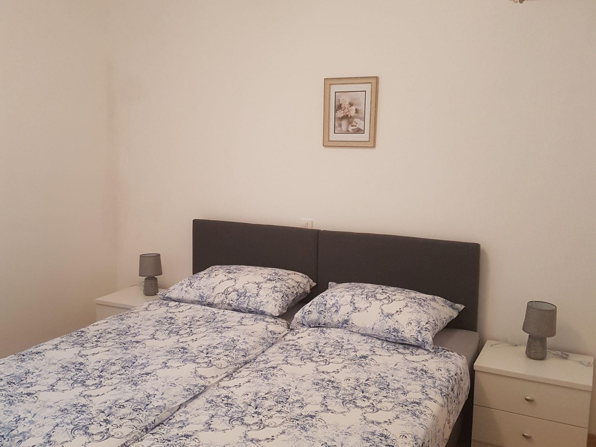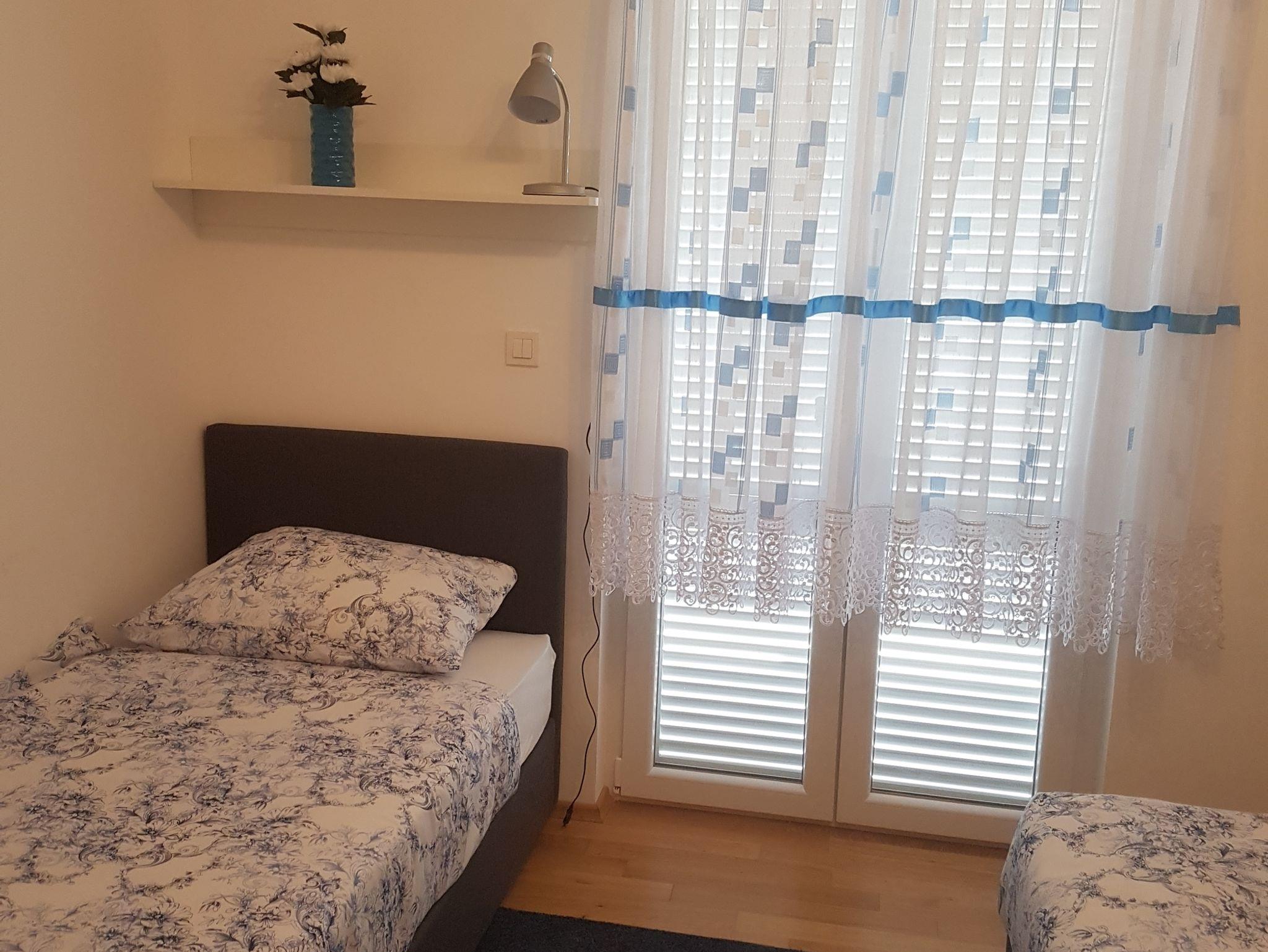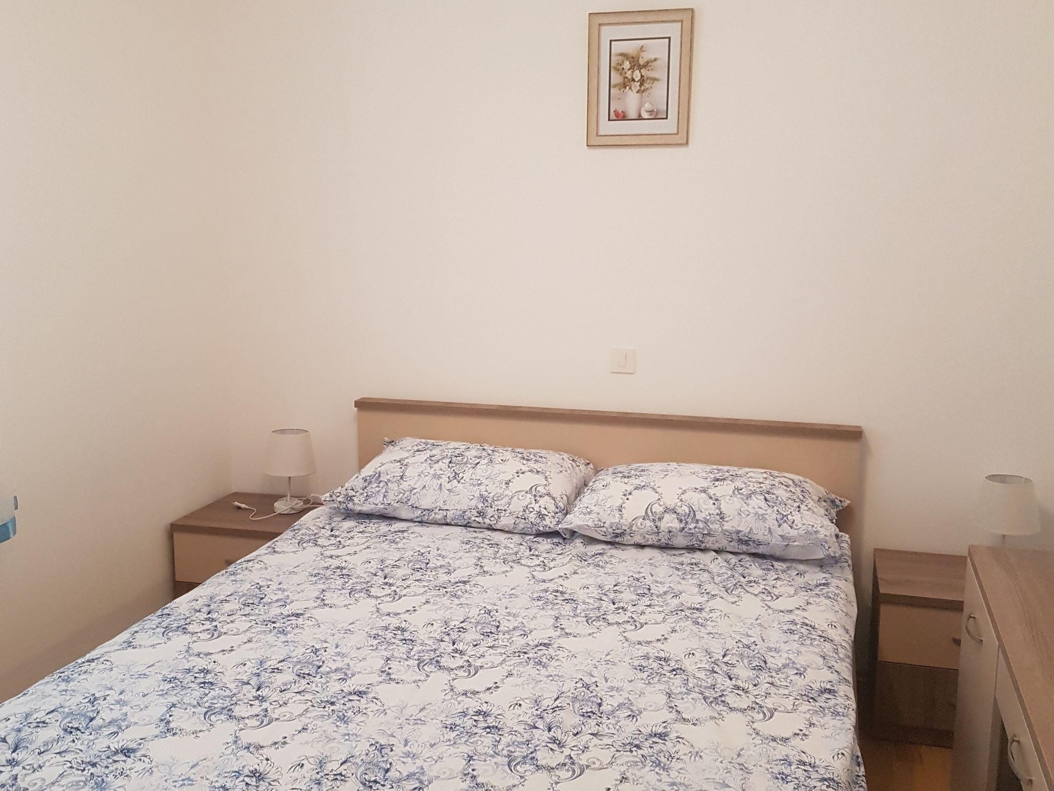 Ferienwohnung bietet Platz für 7 Gäste. Die Betten sind in Schlafzimmern, die es 2 gibt, und in Wohnzimmer, innerhalb einer Gesamtfläche von 69m2, angeordnet. Die Gäste haben eine eigene Terrasse zur Verfügung, auf der sie in warmen Sommernächten genießen können. Das Apartment bietet Meerblick. Es ist erlaubt, Speisen auf dem Gemeinschafts-Grill vorzubereiten. IM PREIS INBEGRIFFEN: Kurtaxe, Endreinigung, Parkplatz, Internet, Bügeleisen, Bügelbrett. VERBINDLICHE ZUSÄTZLICHE KOSTEN: Aufzahlung für Kurzaufenthalte (prozentualer Zuschlag pro Nächtigungsanzahl: 30% - 1, 20% - 2, 10% - 3). UNVERBINDLICHE ZUSÄTZLICHE KOSTEN: Klimatisierung (5,00 € pro Nacht). Die Verfügbarkeit zusätzlicher Dienstleistungen in Ihrem reservierten Termin und die Preise derselben (falls nicht aufgeführt) müssen im Voraus überprüft werden. Zusätzliche Dienstleistungen die in der Zahlungsaufforderung nicht aufgeführt sind werden direkt beim Vermieter bezahlt, angenommen der Gast nutzt auch diese. Ermäßigung auf den Grundpreis: Gratistag 14=13 (bei einem Aufenthalt von 14 Tagen oder mehr erhalten Sie einen Gratistag für den Aufenthalt bis 31.12.26).