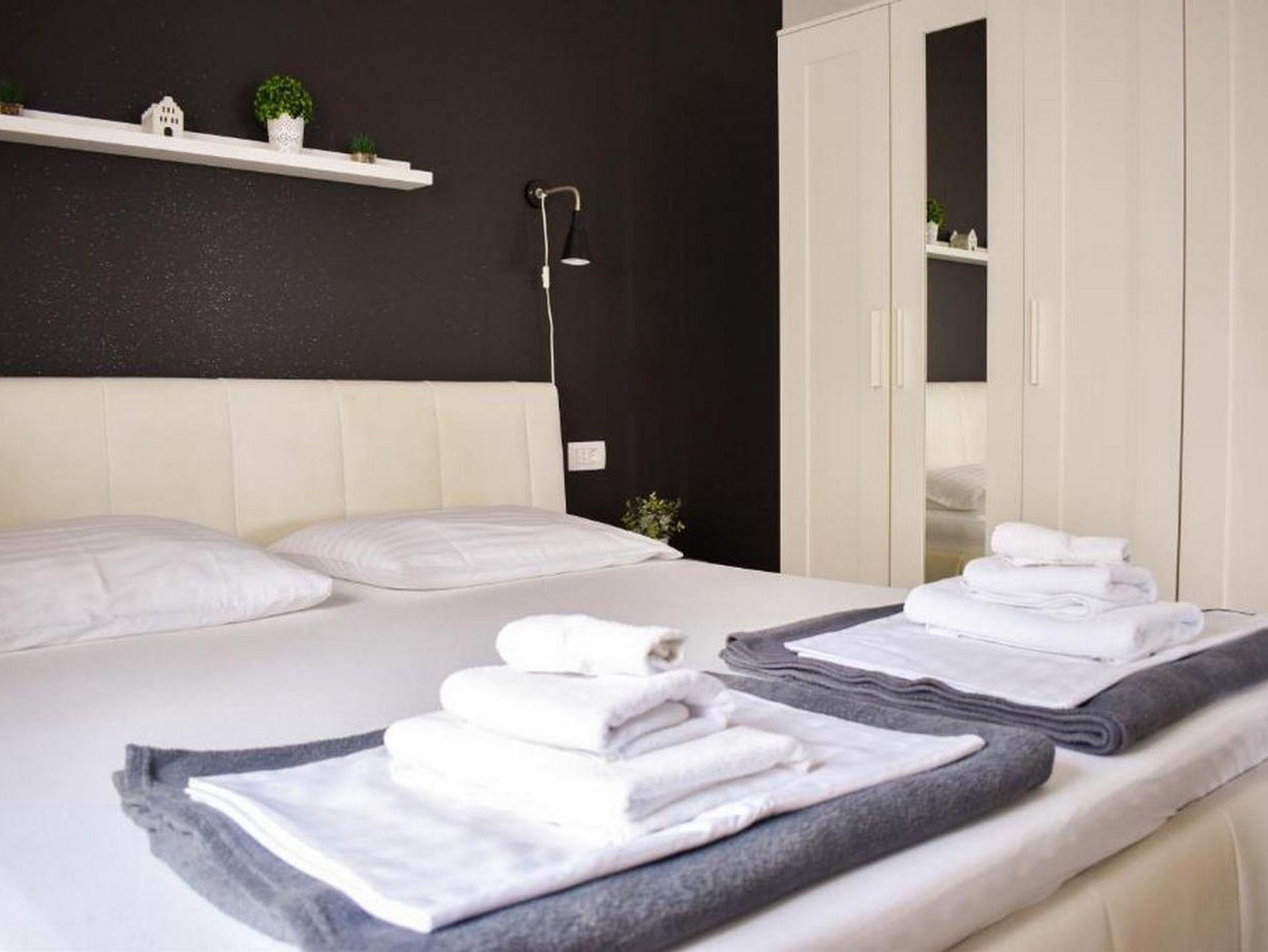 Ferienwohnung bietet Platz für 4 Gäste. Die Betten sind in Schlafzimmern, die es 2 gibt, innerhalb einer Gesamtfläche von 75m2, angeordnet. Die Gäste haben eine eigene Terrasse zur Verfügung, auf der sie in warmen Sommernächten genießen können. Das Apartment bietet Meerblick. Es ist erlaubt, Speisen auf dem Gemeinschafts-Grill vorzubereiten. IM PREIS INBEGRIFFEN: Kurtaxe, Endreinigung, Parkplatz, Internet, Wäschewaschen, Kinderbett, Bügeleisen, Bügelbrett, Föhn. VERBINDLICHE ZUSÄTZLICHE KOSTEN: Aufzahlung für Kurzaufenthalte (prozentualer Zuschlag pro Nächtigungsanzahl: 30% - 1, 20% - 2, 10% - 3). UNVERBINDLICHE ZUSÄTZLICHE KOSTEN: Klimatisierung (21,00 € pro Nacht). Die Verfügbarkeit zusätzlicher Dienstleistungen in Ihrem reservierten Termin und die Preise derselben (falls nicht aufgeführt) müssen im Voraus überprüft werden. Zusätzliche Dienstleistungen die in der Zahlungsaufforderung nicht aufgeführt sind werden direkt beim Vermieter bezahlt, angenommen der Gast nutzt auch diese.