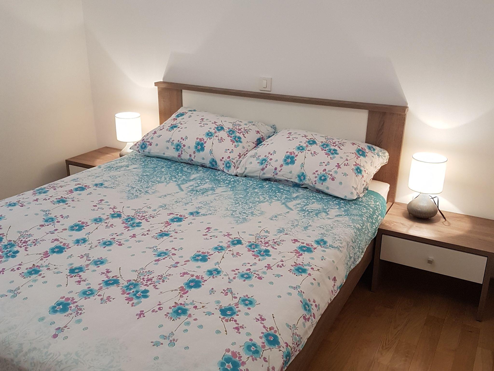 Ferienwohnung bietet Platz für 4 Gäste. Die Betten sind in Schlafzimmern, die es 1 gibt, und in Wohnzimmer, innerhalb einer Gesamtfläche von 42m2, angeordnet. Die Gäste haben einen eigenen Balkon zur Verfügung, auf der sie in warmen Sommernächten genießen können. Es ist erlaubt, Speisen auf dem Gemeinschafts-Grill vorzubereiten. IM PREIS INBEGRIFFEN: Kurtaxe, Endreinigung, Parkplatz, Internet, Bügeleisen, Bügelbrett. VERBINDLICHE ZUSÄTZLICHE KOSTEN: Aufzahlung für Kurzaufenthalte (prozentualer Zuschlag pro Nächtigungsanzahl: 30% - 1, 20% - 2, 10% - 3). UNVERBINDLICHE ZUSÄTZLICHE KOSTEN: Klimatisierung (5,00 € pro Nacht). Die Verfügbarkeit zusätzlicher Dienstleistungen in Ihrem reservierten Termin und die Preise derselben (falls nicht aufgeführt) müssen im Voraus überprüft werden. Zusätzliche Dienstleistungen die in der Zahlungsaufforderung nicht aufgeführt sind werden direkt beim Vermieter bezahlt, angenommen der Gast nutzt auch diese. Ermäßigung auf den Grundpreis: Gratistag 14=13 (bei einem Aufenthalt von 14 Tagen oder mehr erhalten Sie einen Gratistag für den Aufenthalt bis 31.12.26).