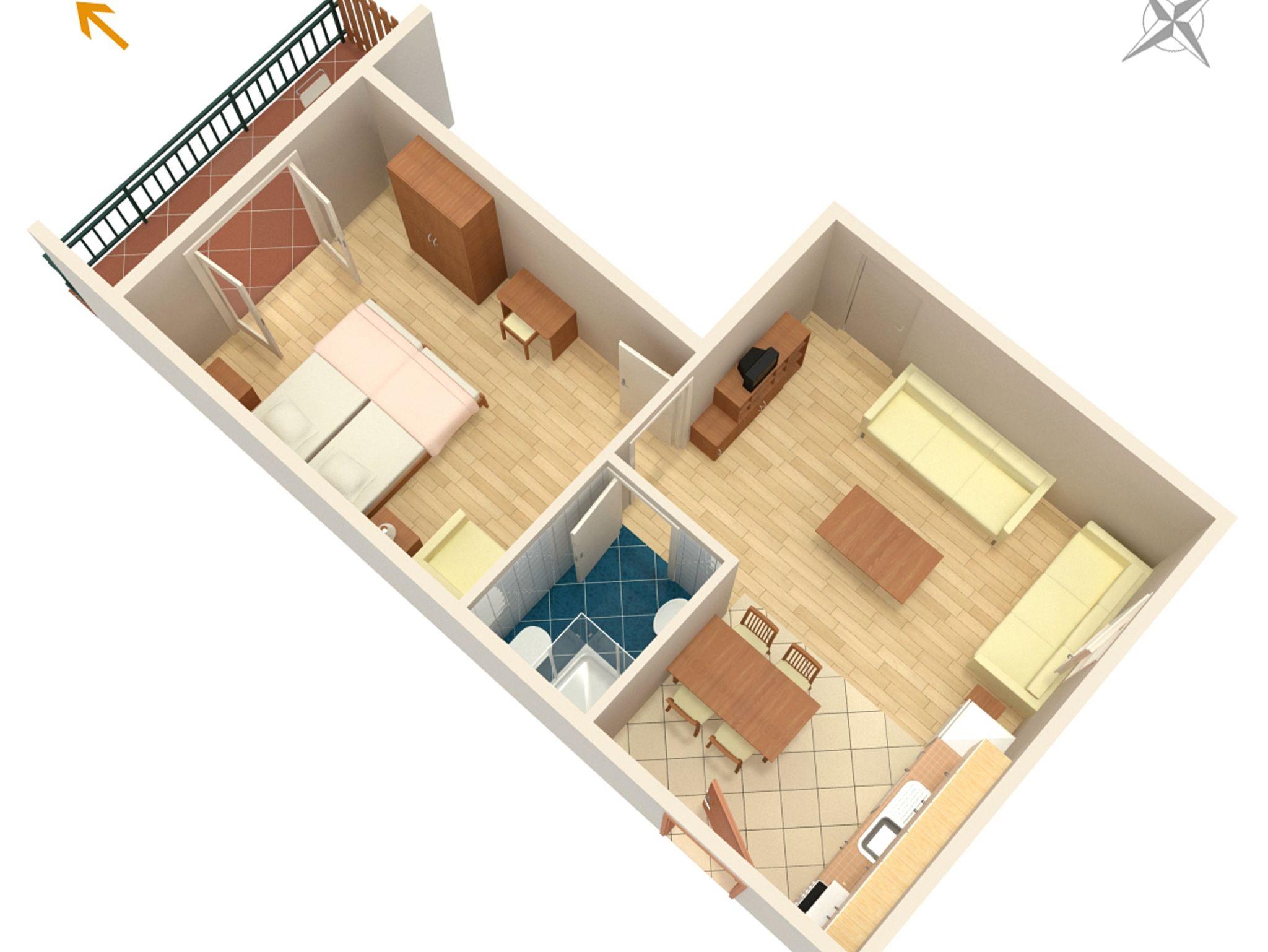 Ferienwohnung bietet Platz für 4 Gäste. Die Betten sind in Schlafzimmern, die es 1 gibt, und in Wohnzimmer, innerhalb einer Gesamtfläche von 40m2, angeordnet. Die Gäste haben einen eigenen Balkon zur Verfügung, auf der sie in warmen Sommernächten genießen können. Das Apartment bietet Meerblick. Es ist erlaubt, Speisen auf dem Gemeinschafts-Grill vorzubereiten. IM PREIS INBEGRIFFEN: Kurtaxe, Endreinigung, Klimatisierung, Parkplatz, Internet, Kinderbett, Bügeleisen, Föhn, tragbarer Grill. VERBINDLICHE ZUSÄTZLICHE KOSTEN: Aufzahlung für Kurzaufenthalte (prozentualer Zuschlag pro Nächtigungsanzahl: 30% - 1, 20% - 2, 10% - 3). Die Verfügbarkeit zusätzlicher Dienstleistungen in Ihrem reservierten Termin und die Preise derselben (falls nicht aufgeführt) müssen im Voraus überprüft werden. Zusätzliche Dienstleistungen die in der Zahlungsaufforderung nicht aufgeführt sind werden direkt beim Vermieter bezahlt, angenommen der Gast nutzt auch diese. Ermäßigung auf den Grundpreis: Gratistag 14=13 (bei einem Aufenthalt von 14 Tagen oder mehr erhalten Sie einen Gratistag für den Aufenthalt bis 31.12.26).