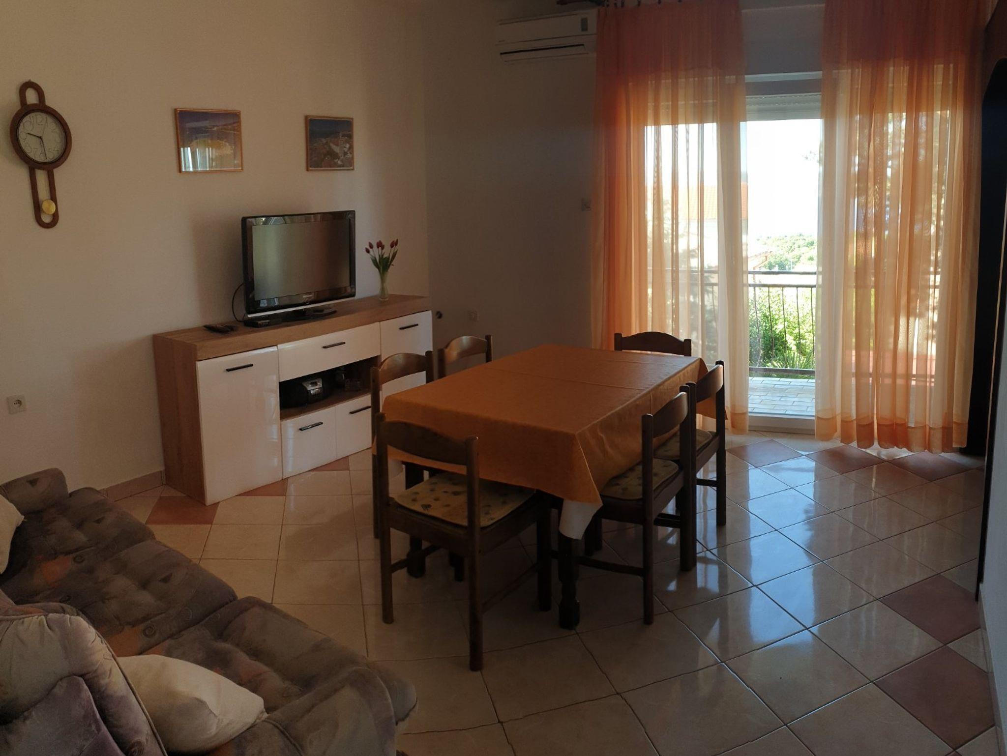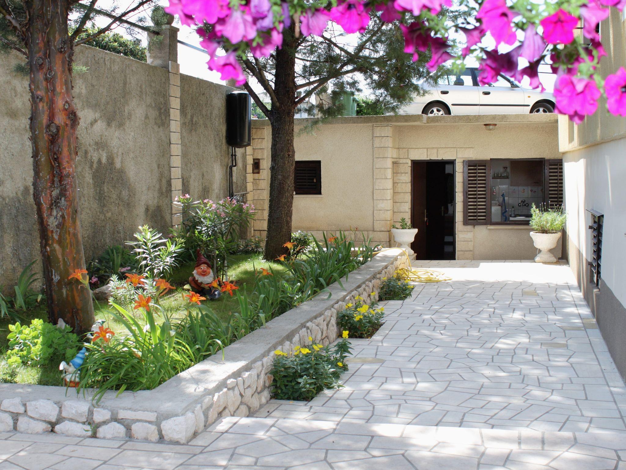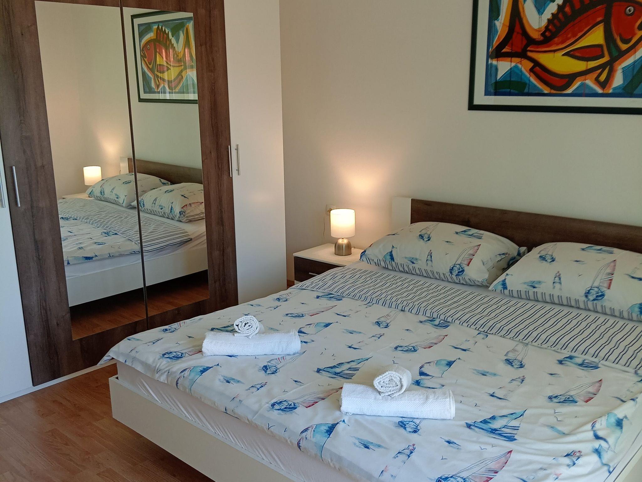 Ferienwohnung bietet Platz für 8 Gäste. Die Betten sind in Schlafzimmern, die es 3 gibt, und in Esszimmer, innerhalb einer Gesamtfläche von 77m2, angeordnet. Die Gäste haben eine eigene Terrasse zur Verfügung, auf der sie in warmen Sommernächten genießen können. Das Apartment bietet Meerblick. Für vollen Genuss und Entspannung gibt es einen privaten Grill für Gäste dieser Unterkunft. Durch die Terrasse der gebuchten Unterkunftseinheit gehen auch andere Gäste oder Vermieter. IM PREIS INBEGRIFFEN: Kurtaxe, Endreinigung, Klimatisierung, Parkplatz, Internet, Bügeleisen, Bügelbrett, Föhn. VERBINDLICHE ZUSÄTZLICHE KOSTEN: Aufzahlung für Kurzaufenthalte (prozentualer Zuschlag pro Nächtigungsanzahl: 30% - 1, 20% - 2, 10% - 3). UNVERBINDLICHE ZUSÄTZLICHE KOSTEN: Wäschewaschen (5,00 € Waschen). Die Verfügbarkeit zusätzlicher Dienstleistungen in Ihrem reservierten Termin und die Preise derselben (falls nicht aufgeführt) müssen im Voraus überprüft werden. Zusätzliche Dienstleistungen die in der Zahlungsaufforderung nicht aufgeführt sind werden direkt beim Vermieter bezahlt, angenommen der Gast nutzt auch diese. Ermäßigung auf den Grundpreis: Gratistag 14=13 (bei einem Aufenthalt von 14 Tagen oder mehr erhalten Sie einen Gratistag für den Aufenthalt bis 31.12.26).