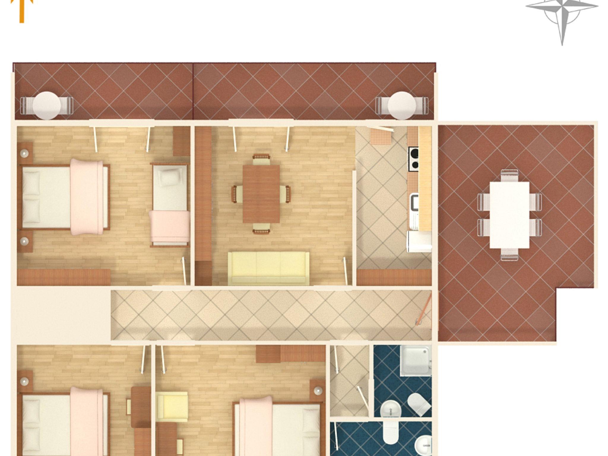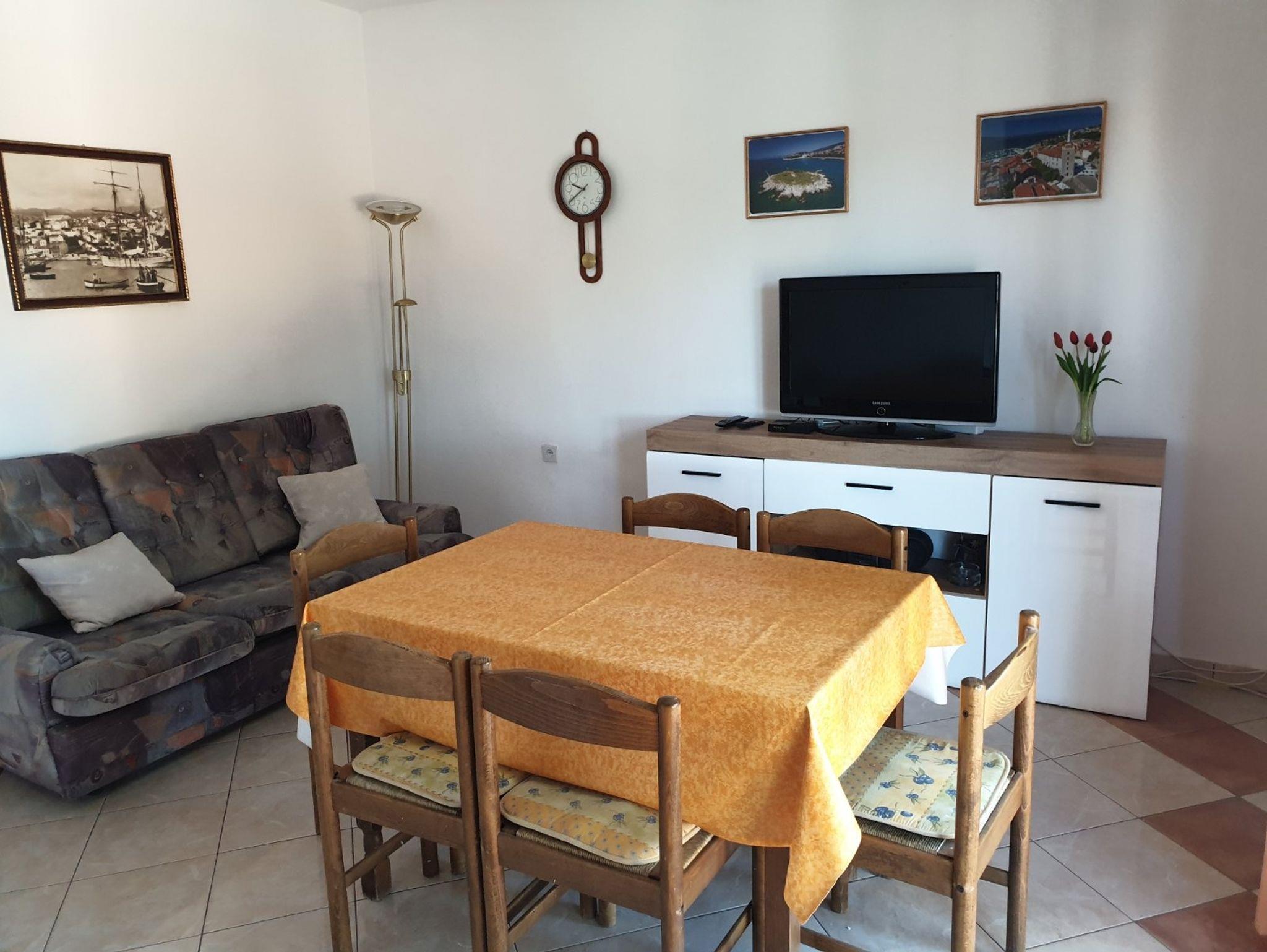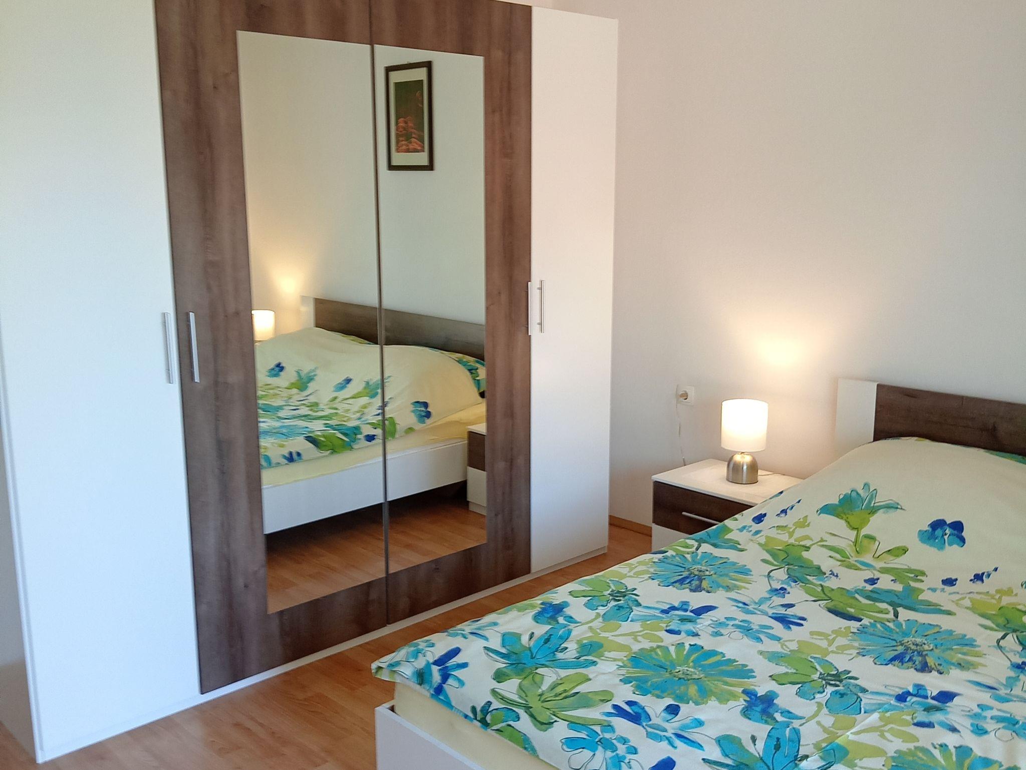 Ferienwohnung bietet Platz für 8 Gäste. Die Betten sind in Schlafzimmern, die es 3 gibt, und in Esszimmer, innerhalb einer Gesamtfläche von 77m2, angeordnet. Die Gäste haben eine eigene Terrasse zur Verfügung, auf der sie in warmen Sommernächten genießen können. Das Apartment bietet Meerblick. Für vollen Genuss und Entspannung gibt es einen privaten Grill für Gäste dieser Unterkunft. Durch die Terrasse der gebuchten Unterkunftseinheit gehen auch andere Gäste oder Vermieter. IM PREIS INBEGRIFFEN: Kurtaxe, Endreinigung, Klimatisierung, Parkplatz, Internet, Bügeleisen, Bügelbrett, Föhn. VERBINDLICHE ZUSÄTZLICHE KOSTEN: Aufzahlung für Kurzaufenthalte (prozentualer Zuschlag pro Nächtigungsanzahl: 30% - 1, 20% - 2, 10% - 3). UNVERBINDLICHE ZUSÄTZLICHE KOSTEN: Wäschewaschen (5,00 € Waschen). Die Verfügbarkeit zusätzlicher Dienstleistungen in Ihrem reservierten Termin und die Preise derselben (falls nicht aufgeführt) müssen im Voraus überprüft werden. Zusätzliche Dienstleistungen die in der Zahlungsaufforderung nicht aufgeführt sind werden direkt beim Vermieter bezahlt, angenommen der Gast nutzt auch diese. Ermäßigung auf den Grundpreis: Gratistag 14=13 (bei einem Aufenthalt von 14 Tagen oder mehr erhalten Sie einen Gratistag für den Aufenthalt bis 31.12.26).