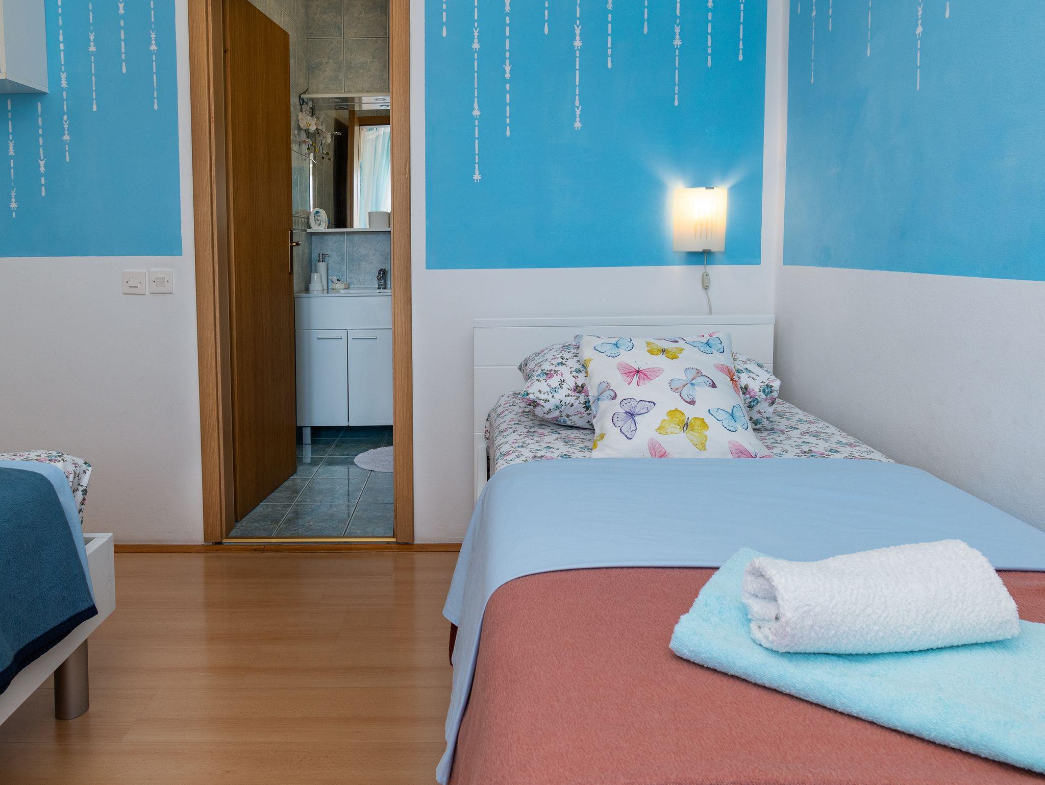 Ferienwohnung bietet Platz für 4 Gäste. Die Betten sind in Schlafzimmern, die es 2 gibt, innerhalb einer Gesamtfläche von 61m2, angeordnet. Die Gäste haben eine eigene Terrasse zur Verfügung, auf der sie in warmen Sommernächten genießen können. Das Apartment bietet Meerblick. Für vollen Genuss und Entspannung gibt es einen privaten Grill für Gäste dieser Unterkunft. IM PREIS INBEGRIFFEN: Kurtaxe, Endreinigung, Klimatisierung, Parkplatz, Internet, Bügeleisen, Bügelbrett, Föhn, Sonnenschirm. UNVERBINDLICHE ZUSÄTZLICHE KOSTEN: Wäschewaschen (5,00 € Waschen). Die Verfügbarkeit zusätzlicher Dienstleistungen in Ihrem reservierten Termin und die Preise derselben (falls nicht aufgeführt) müssen im Voraus überprüft werden. Zusätzliche Dienstleistungen die in der Zahlungsaufforderung nicht aufgeführt sind werden direkt beim Vermieter bezahlt, angenommen der Gast nutzt auch diese.