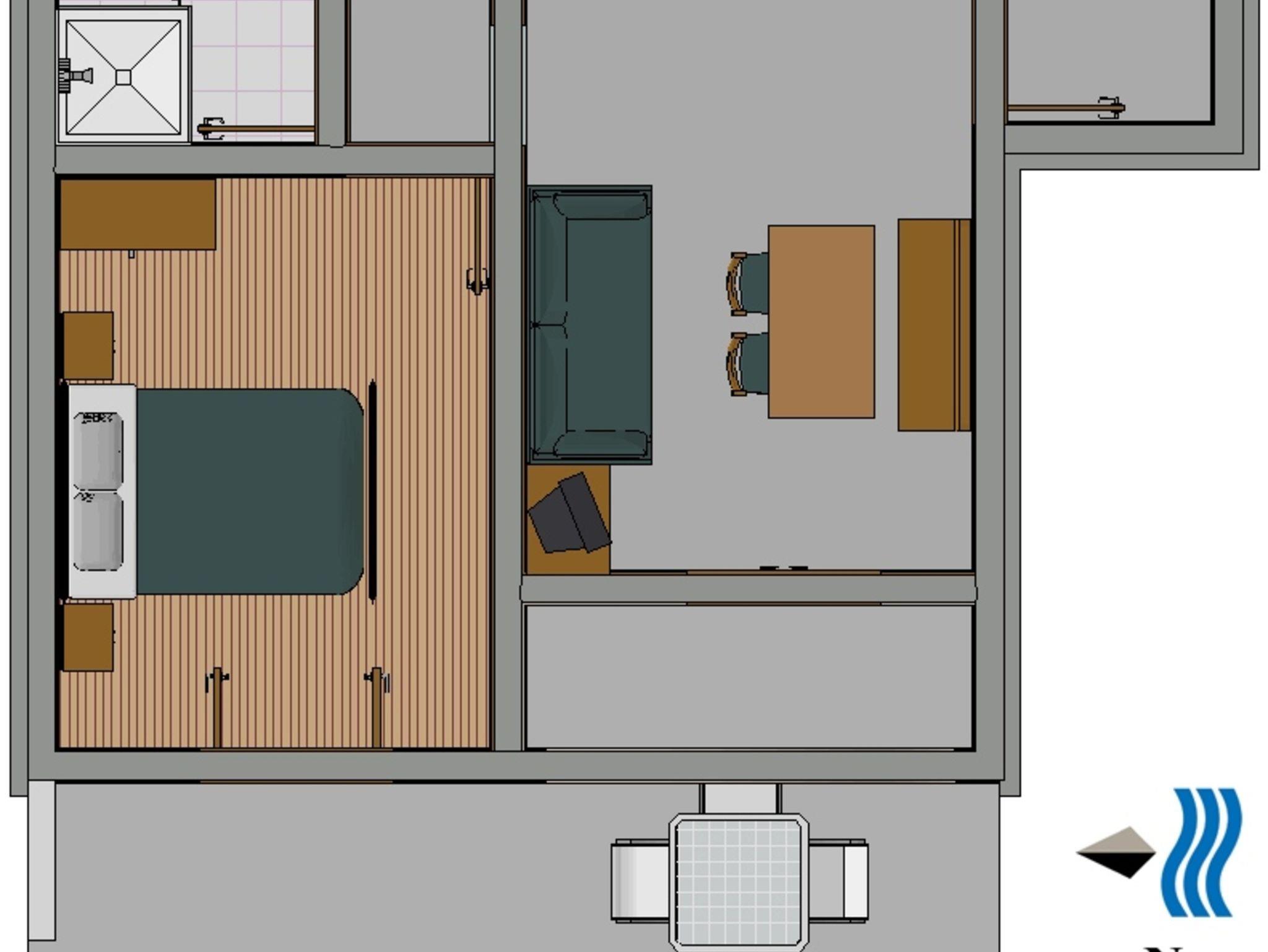 Ferienwohnung bietet Platz für 4 Gäste. Die Betten sind in Schlafzimmern, die es 1 gibt, und in Esszimmer, innerhalb einer Gesamtfläche von 35m2, angeordnet. Die Gäste haben eine eigene Terrasse zur Verfügung, auf der sie in warmen Sommernächten genießen können. Es ist erlaubt, Speisen auf dem Gemeinschafts-Grill vorzubereiten. In der Unterkunftseinheit besteht die Möglichkeit des Mitbringens von Haustieren gegen Aufpreis. IM PREIS INBEGRIFFEN: Kurtaxe, Endreinigung, Parkplatz, Internet, Bügeleisen, Bügelbrett, Föhn. VERBINDLICHE ZUSÄTZLICHE KOSTEN: Aufzahlung für Kurzaufenthalte (prozentualer Zuschlag pro Nächtigungsanzahl: 30% - 1, 20% - 2, 10% - 3). UNVERBINDLICHE ZUSÄTZLICHE KOSTEN: Klimatisierung (10,00 € pro Nacht), Wäschewaschen (10,00 € Waschen), Haustiere (15,00 € pro Nacht). Die Verfügbarkeit zusätzlicher Dienstleistungen in Ihrem reservierten Termin und die Preise derselben (falls nicht aufgeführt) müssen im Voraus überprüft werden. Zusätzliche Dienstleistungen die in der Zahlungsaufforderung nicht aufgeführt sind werden direkt beim Vermieter bezahlt, angenommen der Gast nutzt auch diese. Ermäßigung auf den Grundpreis: Gratistag 21=19 (bei einem Aufenthalt von 21 Tagen oder mehr erhalten Sie 2 Gratistage für den Aufenthalt bis 31.12.26).