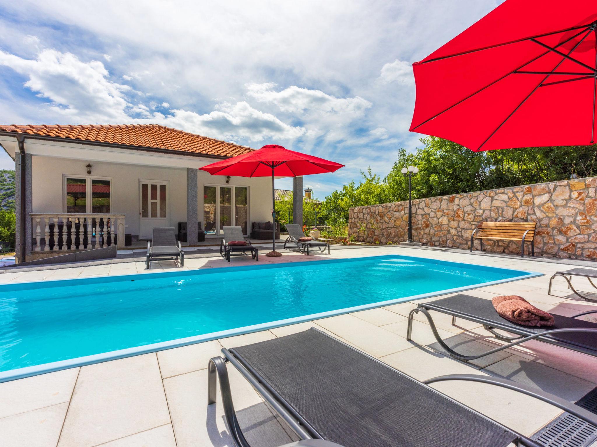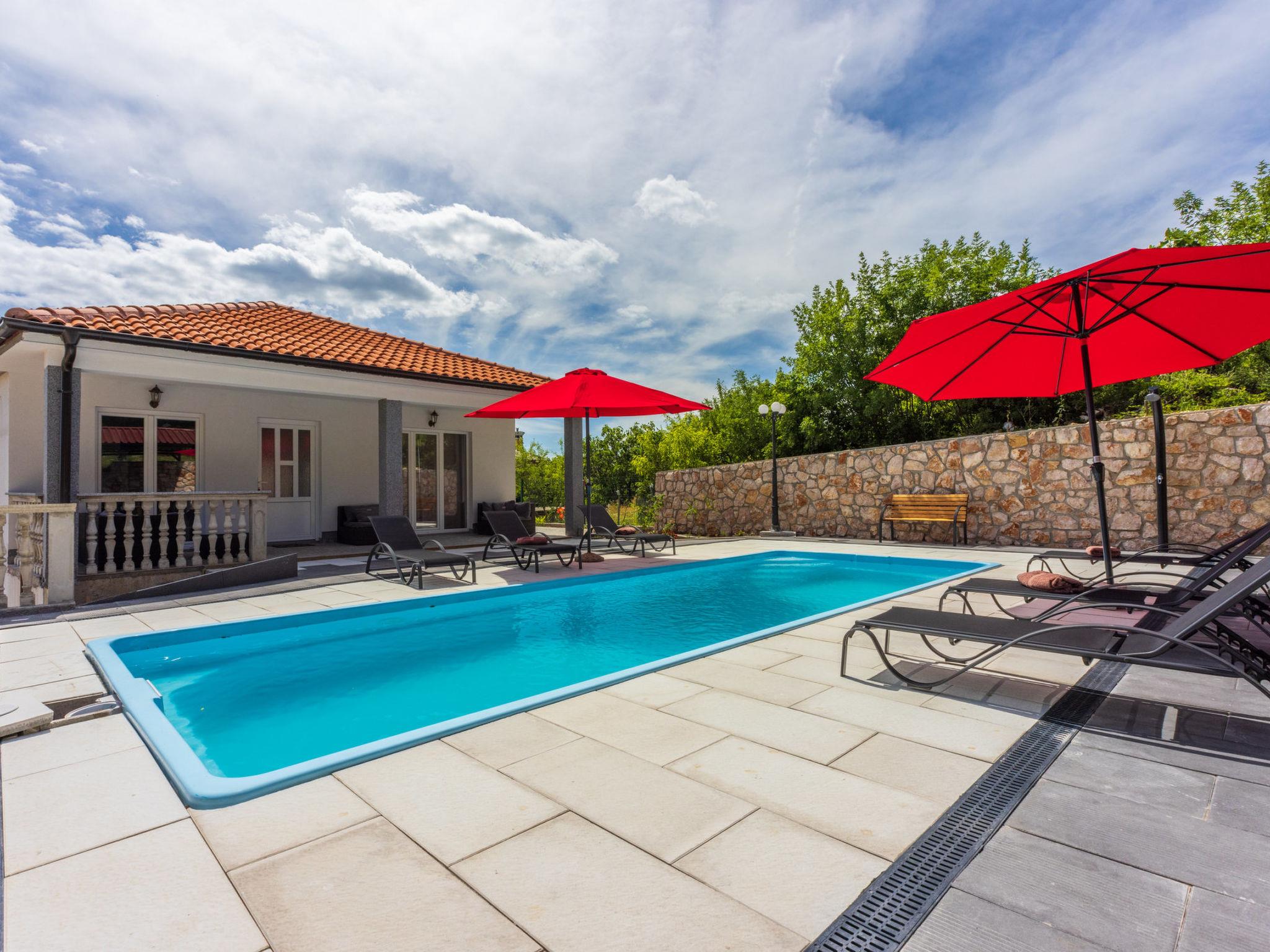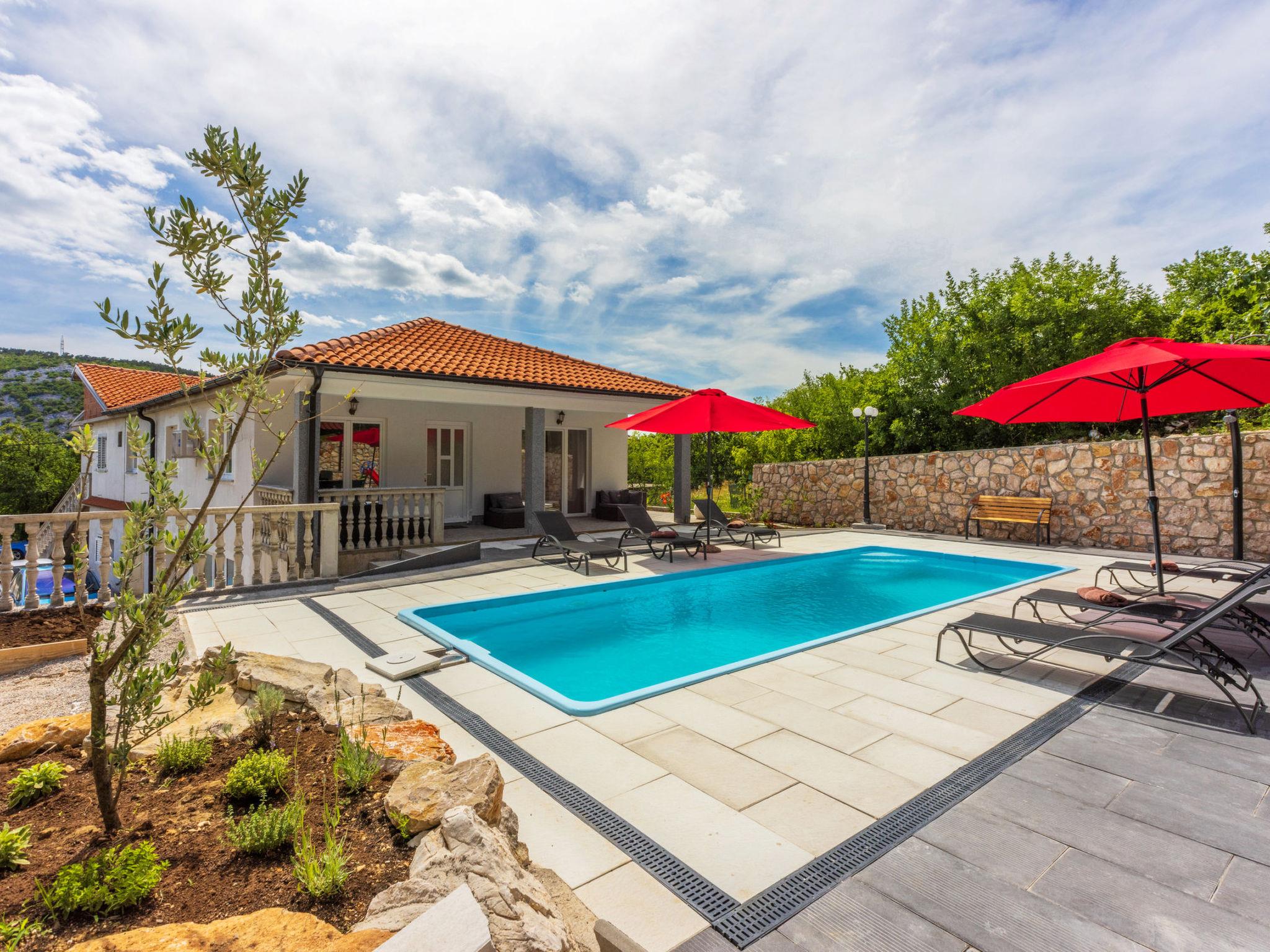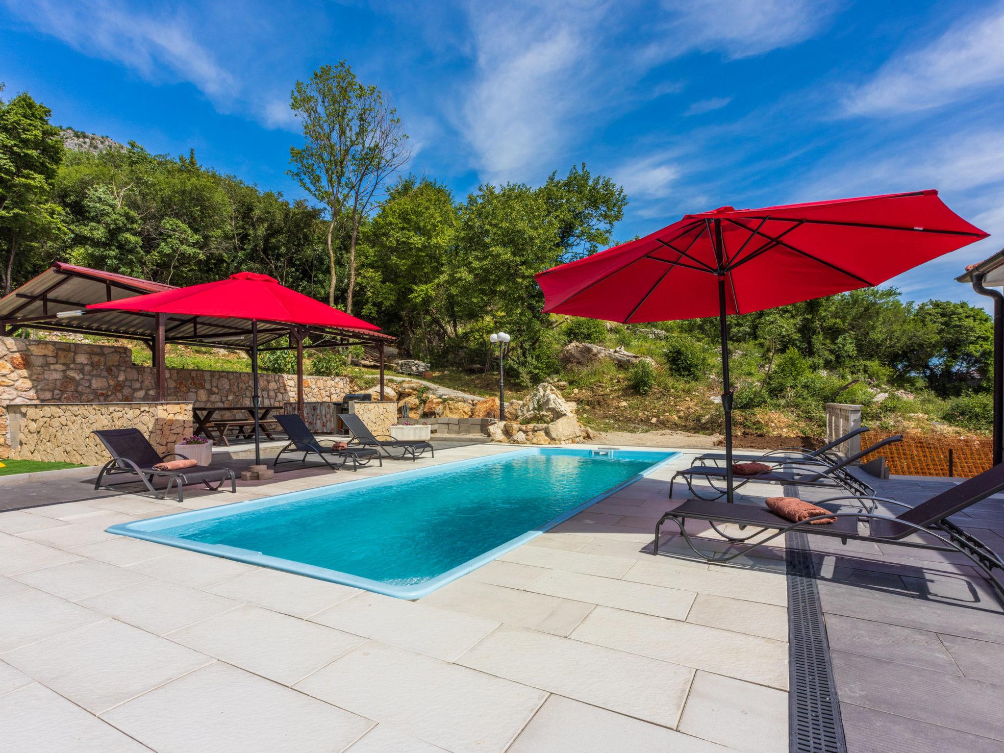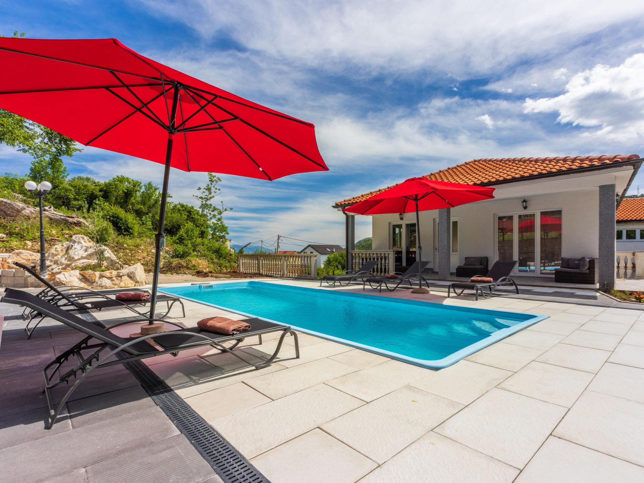 In the peaceful and nature-rich area of Bribir, located in the hinterland of Crikvenica, lies this stunning holiday property designed to accommodate up to 8 guests.The property is ideal for two friendly families or a large family, as it consists of two adjacent apartments (see photo gallery) but is offered as a single unit. For this reason, it is presented as a holiday home.Upon entering the first apartment, you’ll find a modern, air-conditioned living area with a dining room and a kitchen in the same space. The kitchen is well-equipped. A hallway leads to the bedroom and the bathroom.Adjacent to the first apartment is the second one, which is almost identical. It also features a living/dining area with a kitchen, a bedroom, and a bathroom.The outdoor area of the house is inviting and perfect for relaxation. A beautiful swimming pool, exclusively for your use, a sun terrace with six sun loungers, another furnished and covered terrace with a barbecue, and a children’s playground ensure a pleasant and rejuvenating stay.Only the upper floor of this holiday property is available, where both apartments and the fantastic pool area are located.Important note: Please note before booking that this property is not suitable for parties.AmenitiesLiving areaLiving/dining room and kitchen are in one room, 2 extra beds, sofa bed for two people, terrace, tilesKitchenDishes, kitchen towels, electric stove, hotplates: 4, oven, refrigerator with freezer compartment, filter coffee machine, kettle, toasterBedroomDouble room with double bed, tilesDouble room with double bed, tilesBathroomBathroom with toilet, showerBathroom with toilet, showerBalcony & terracePrivate covered terrace with chairs, loungers, parasol, terrace size: 50 m²Further informationBarbecue, you can bring your own barbecue, parking on the property, swimming pool, swimming pool size: 25 m², outdoor shower, pets up to 7 kilograms allowed, daily fee for a pet 15 E, air conditioning included in the price, owner lives in the same house, bed linen available, towels available, washing machine in the apartment, Internet via W-LANSwimming pool is in function from 01.05.-01.10.To the sea 7 km, sandy beach 7.5 km, fine pebble beach 7 km, pebble beach 7 km, rocky beach 7 km, concrete beach 7 km, center 7 km, restaurant 6.5 km, supermarket 6.5 km, diving center 8 km, busy road 6 km