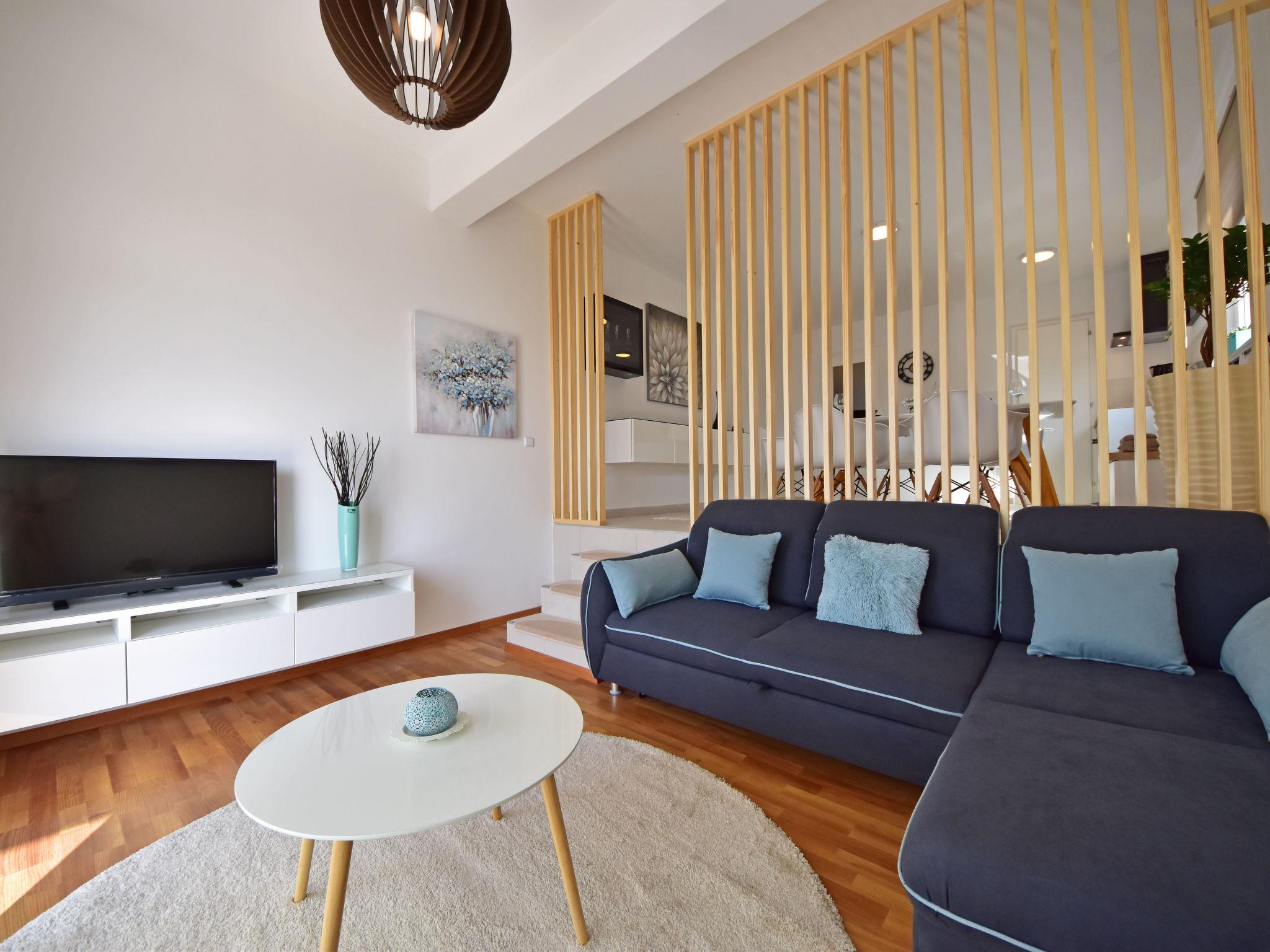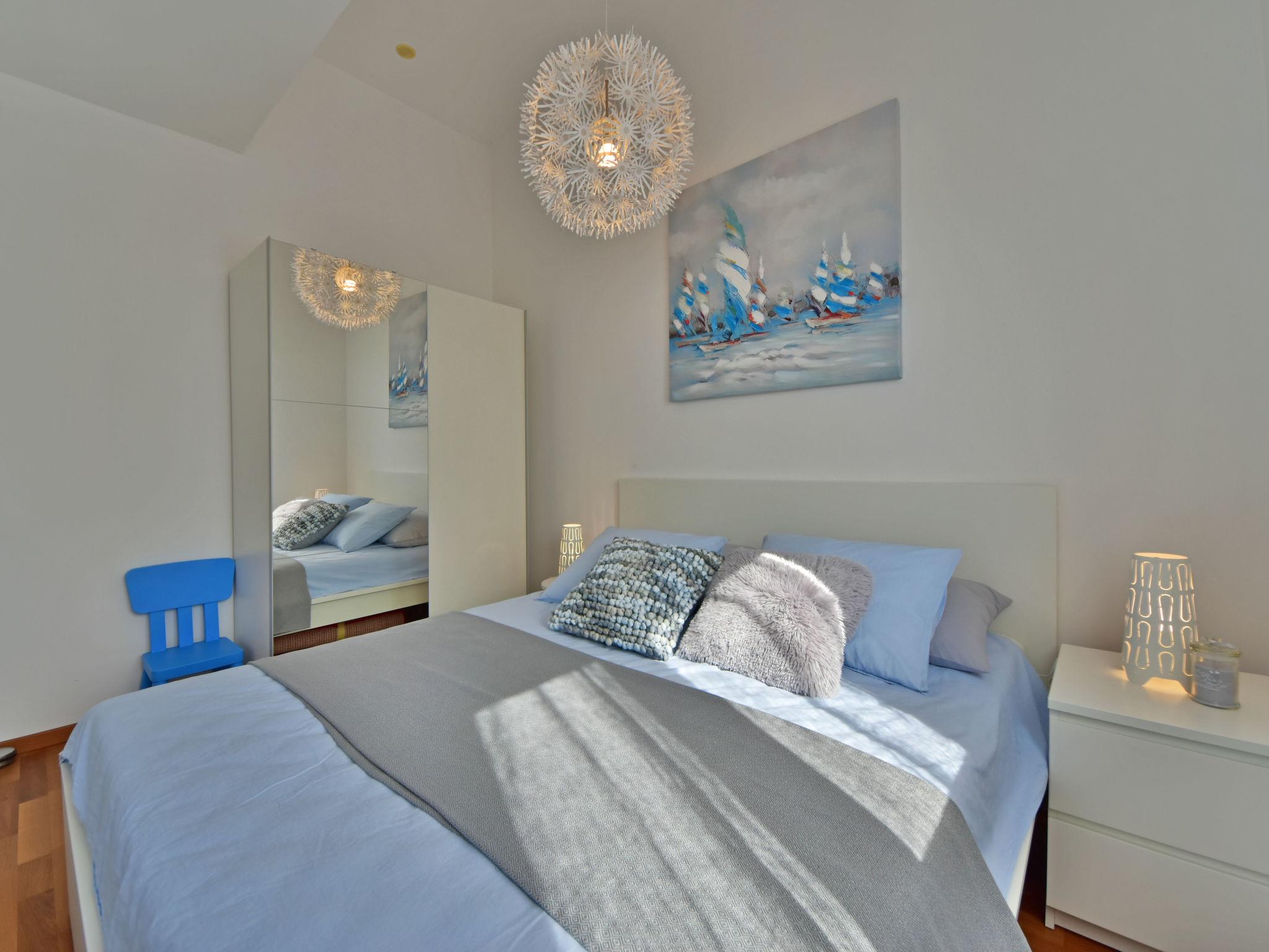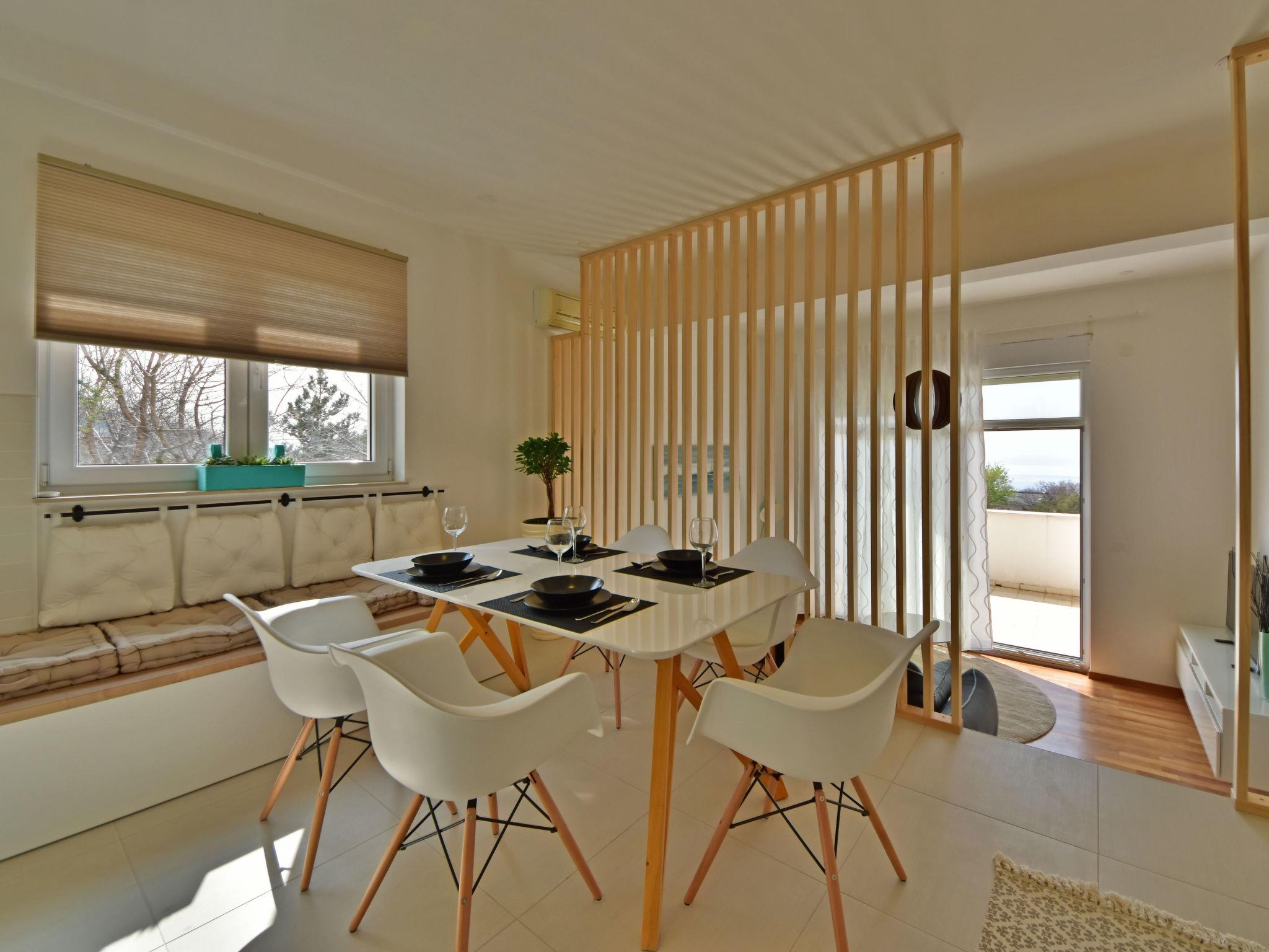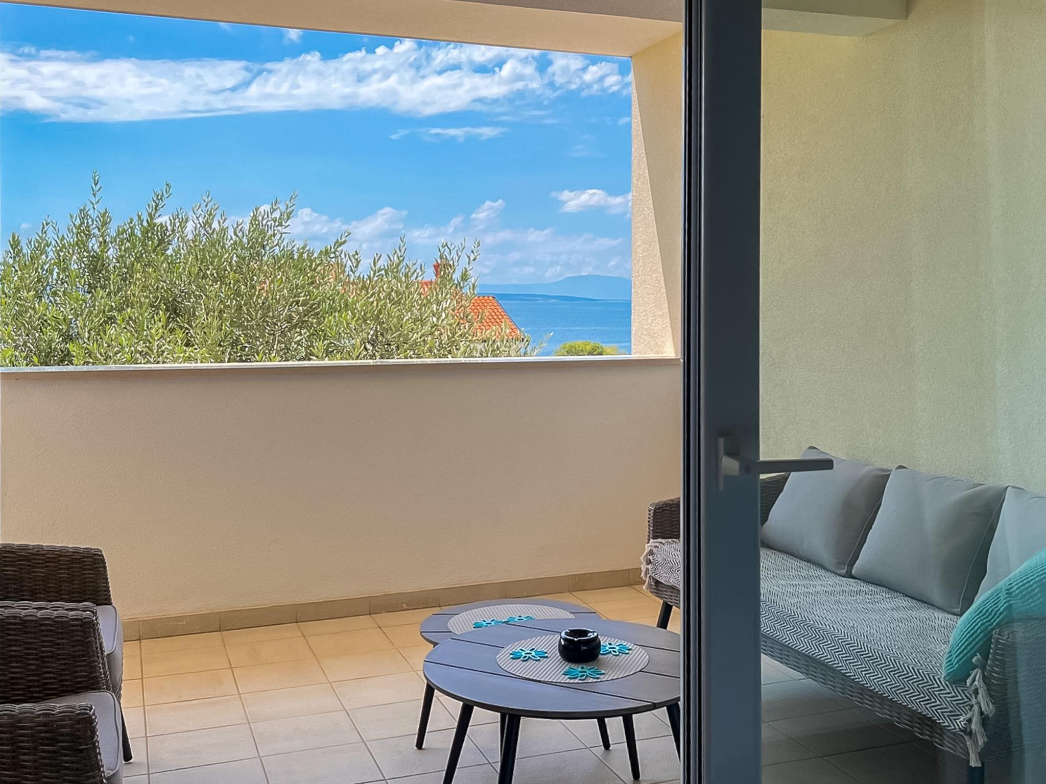 "Cvit 2", 3-room apartment 73 m2, on the ground floor, south facing position. Beautiful and modern furnishings: living/dining room 33 m2 with 1 double sofabed (140 cm, length 220 cm), satellite TV (flat screen), air conditioning. Exit to the terrace. 1 room with 1 french bed (160 cm, length 200 cm). 1 room with 1 french bed (160 cm, length 200 cm), air conditioning. Exit to the terrace. Open kitchen (oven, dishwasher, 4 ceramic glass hob hotplates, freezer, electric coffee machine). 2 showers/WC. No heating option. Terrace 10 m2 partly roofed, terrace 8 m2, roofed. Terrace furniture. Partial view of the sea. Facilities: washing machine, children's high chair, baby cot, hair dryer. Internet (WiFi, free). Parking (1 car). 2900022