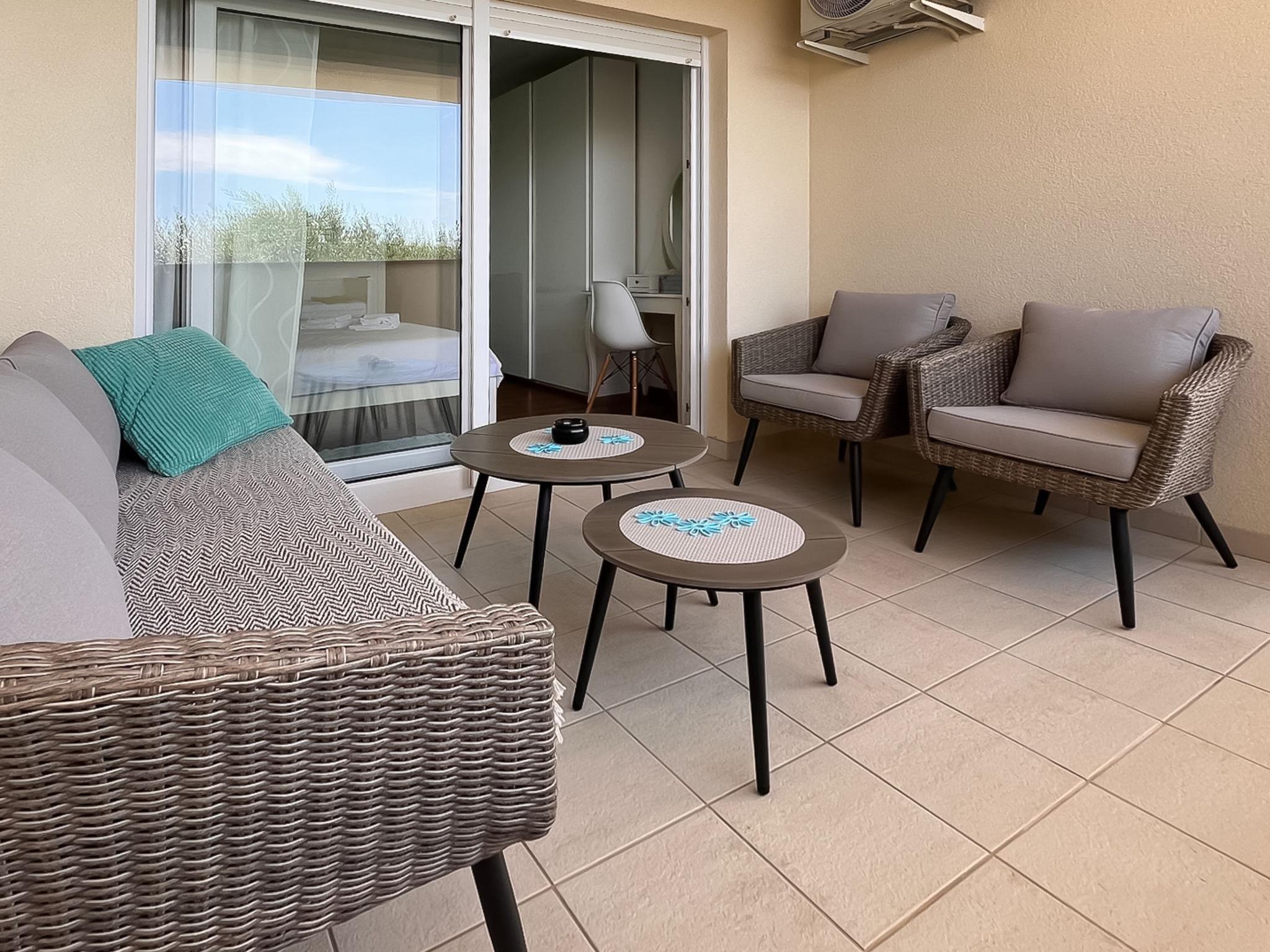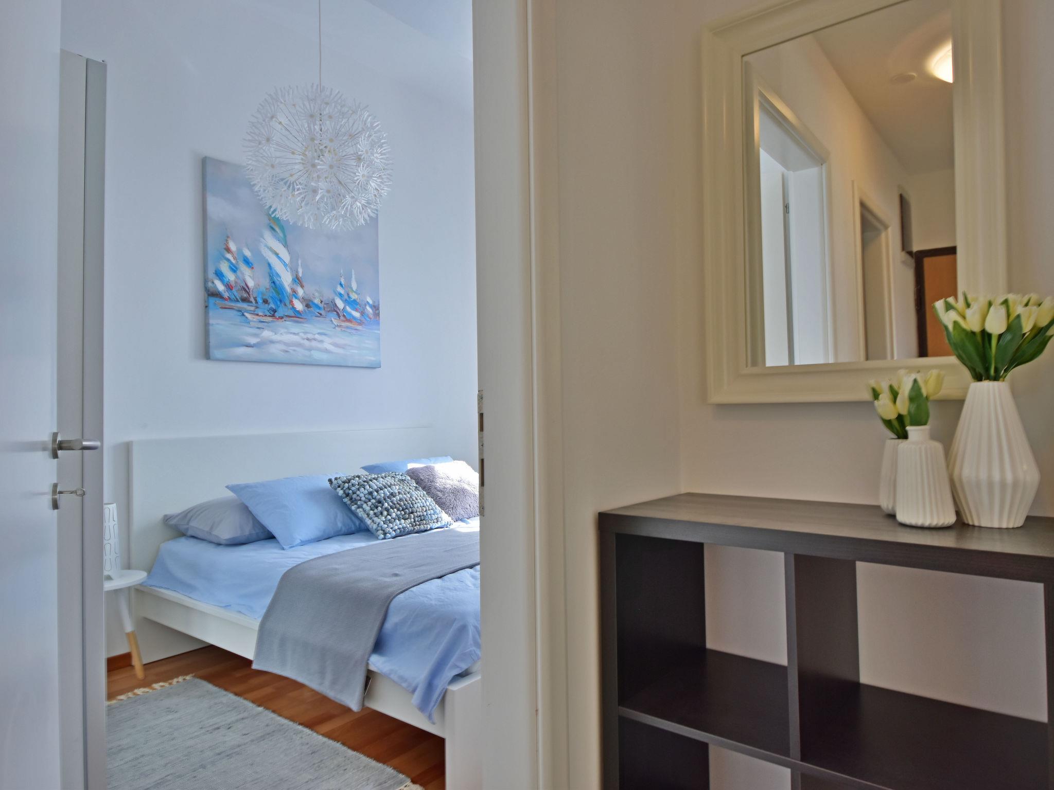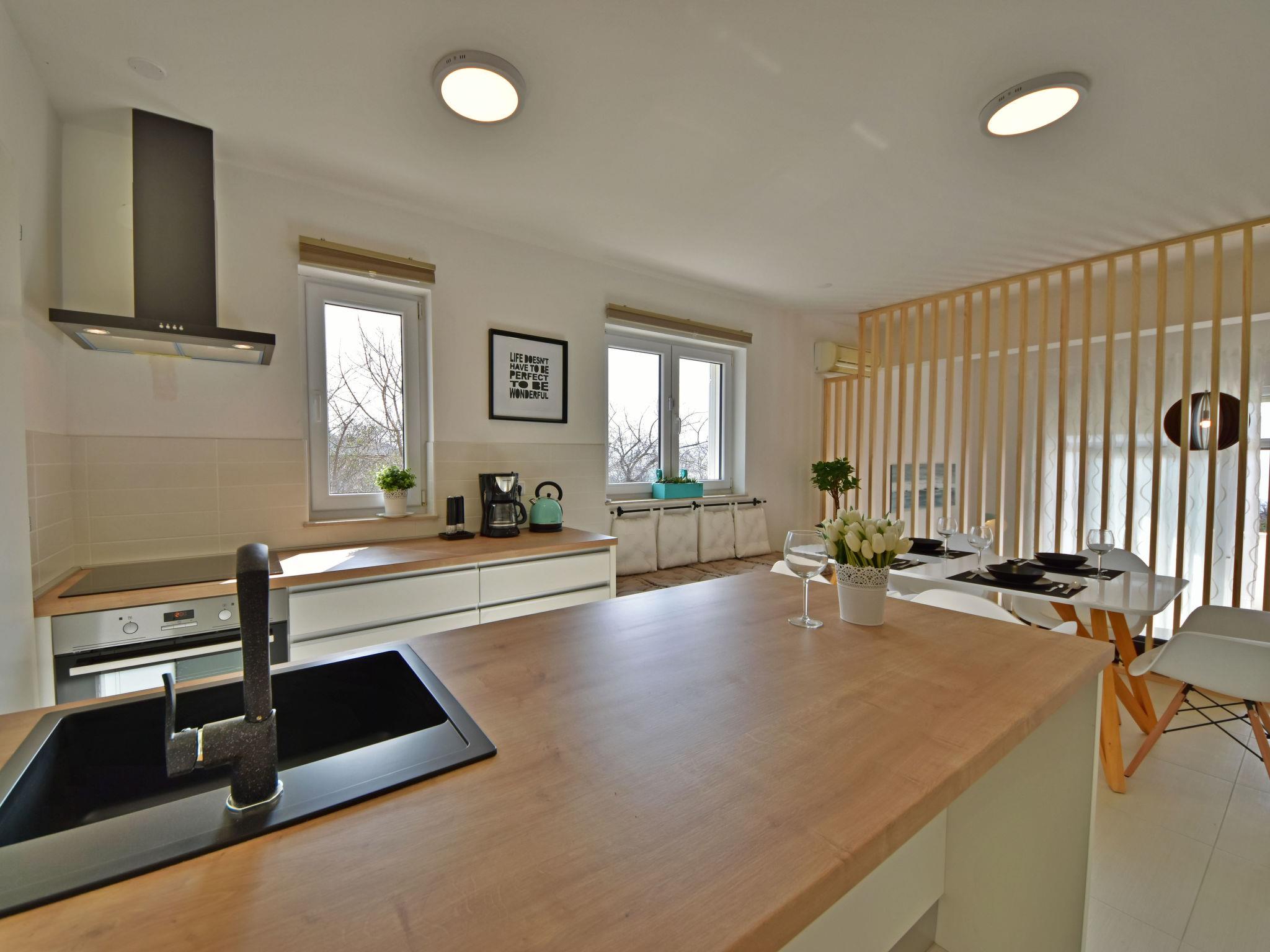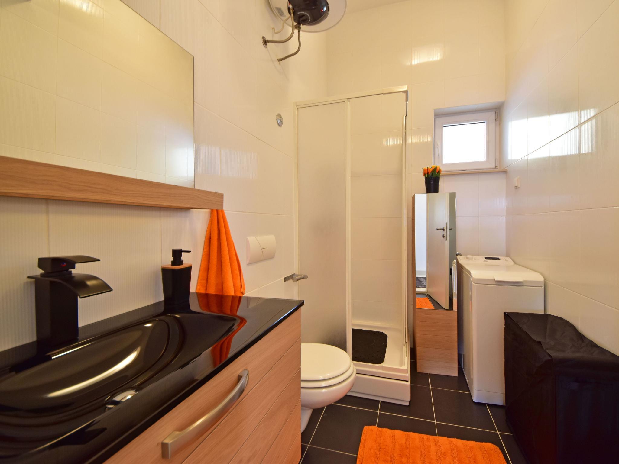 "Cvit 2", 3-room apartment 73 m2, on the ground floor, south facing position. Beautiful and modern furnishings: living/dining room 33 m2 with 1 double sofabed (140 cm, length 220 cm), satellite TV (flat screen), air conditioning. Exit to the terrace. 1 room with 1 french bed (160 cm, length 200 cm). 1 room with 1 french bed (160 cm, length 200 cm), air conditioning. Exit to the terrace. Open kitchen (oven, dishwasher, 4 ceramic glass hob hotplates, freezer, electric coffee machine). 2 showers/WC. No heating option. Terrace 10 m2 partly roofed, terrace 8 m2, roofed. Terrace furniture. Partial view of the sea. Facilities: washing machine, children's high chair, baby cot, hair dryer. Internet (WiFi, free). Parking (1 car). 2900022