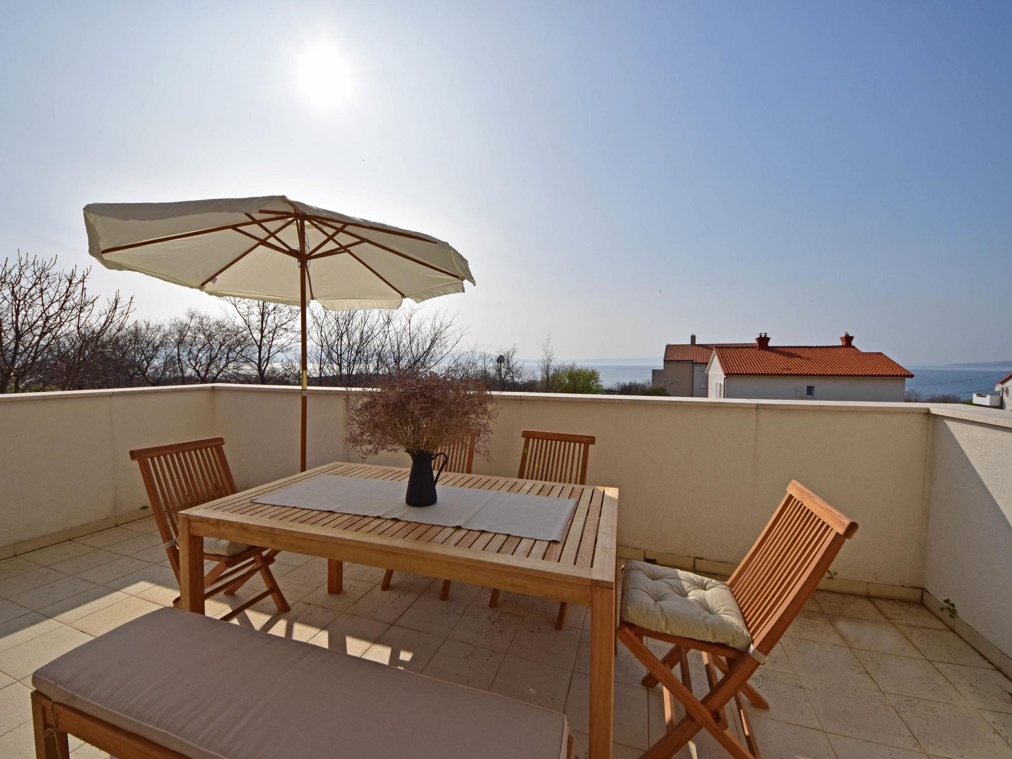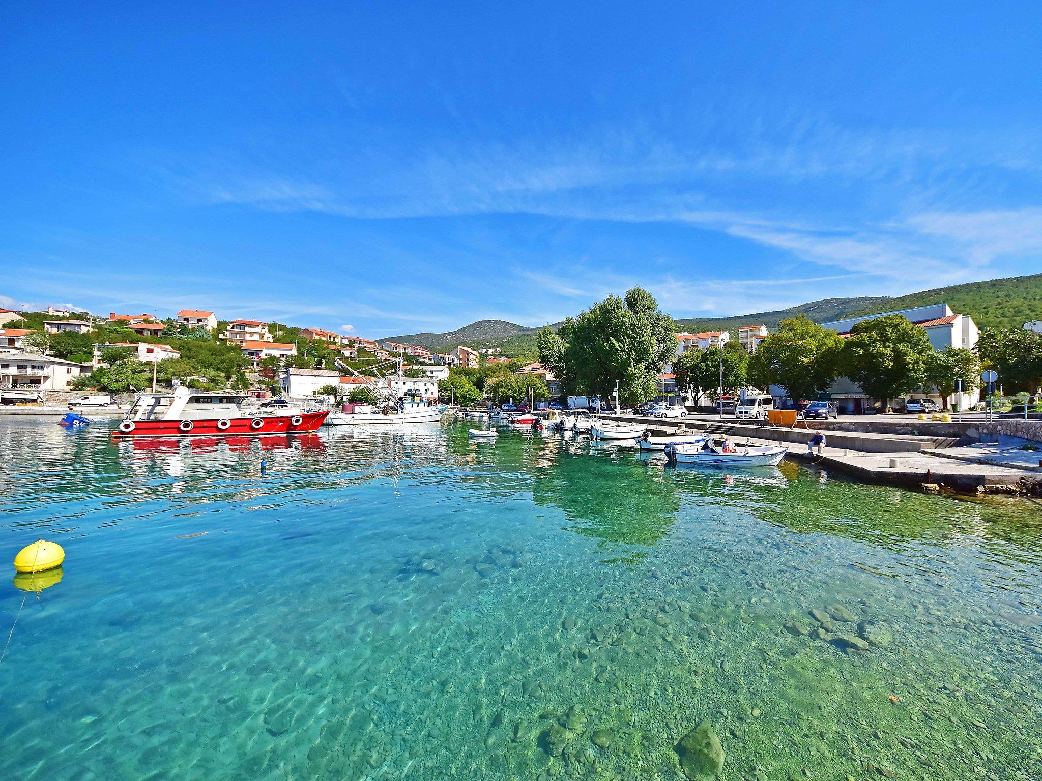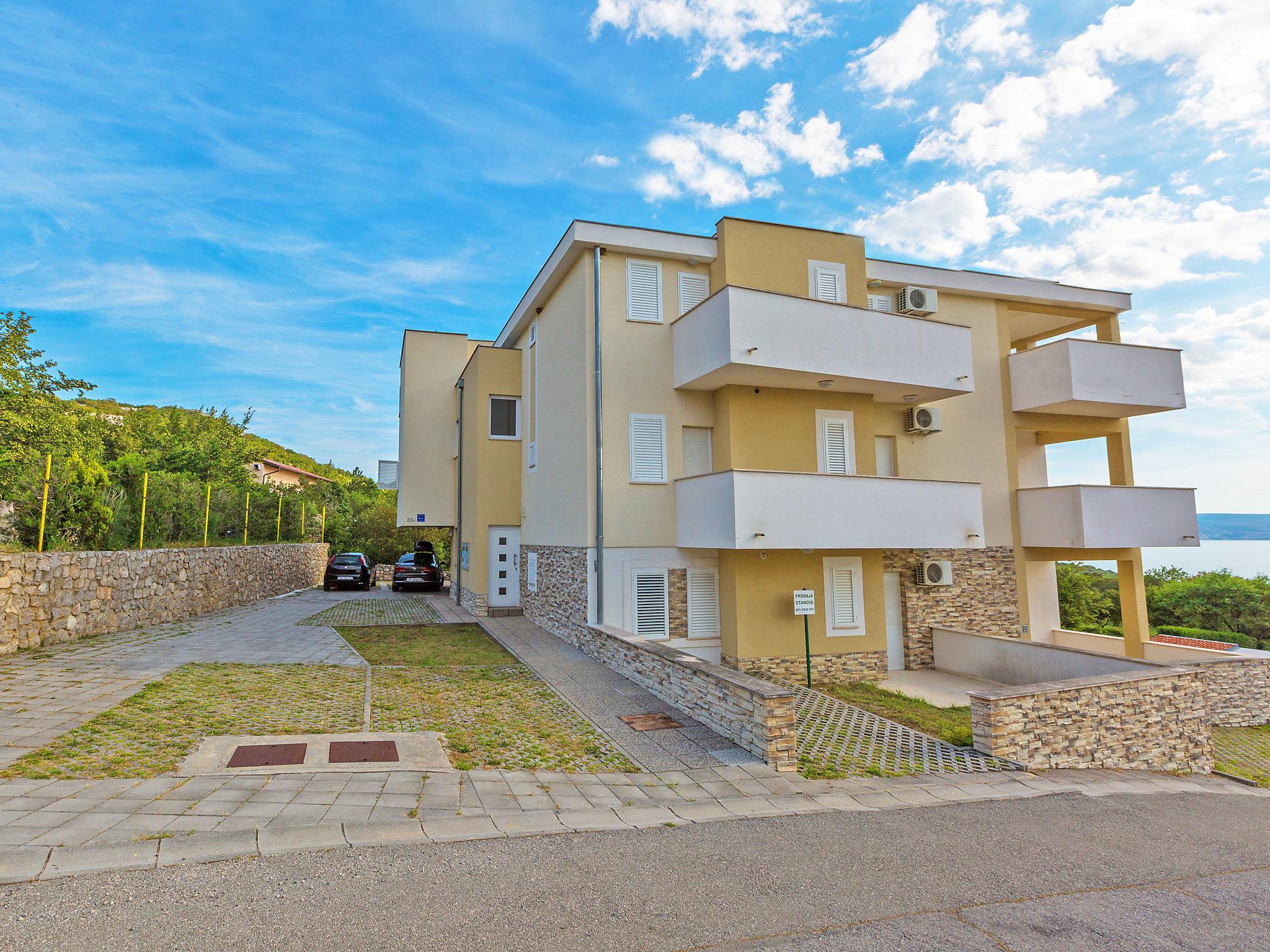 Klenovica 8 km from Novi Vinodolski: Apartment house "Cvit". 600 m from the centre of Klenovica, in a sunny, elevated position, 100 m from the sea, 100 m from the beach. For shared use: property 700 m2. In the house: internet access. Parking at the house on the premises. Shop 100 m, restaurant 80 m, bus stop 1.1 km, pebble beach 100 m.