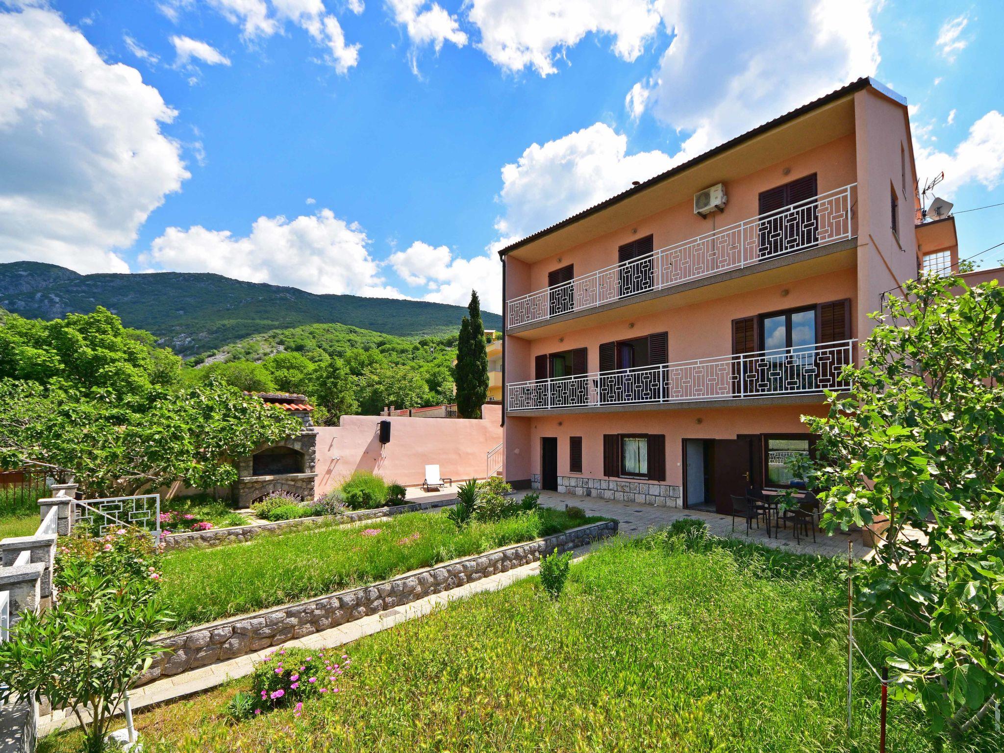 Klenovica 8 km from Novi Vinodolski: Apartment house "Adriana". In the hamlet Sibinj Krmpotski 6 km from the centre of Senj, 14 km from the centre of Novi Vinodolski, in a sunny position, 150 m from the sea, 150 m from the beach, in a cul-de-sac, in the countryside. For shared use: property 600 m2 (fenced), lawn 80 m2, plants. Outdoor shower, terrace (18 m2), barbecue. In the house: internet access. Parking at the house on the premises. Shop 100 m, restaurant 200 m, bus stop 2.5 km, pebble beach 150 m.