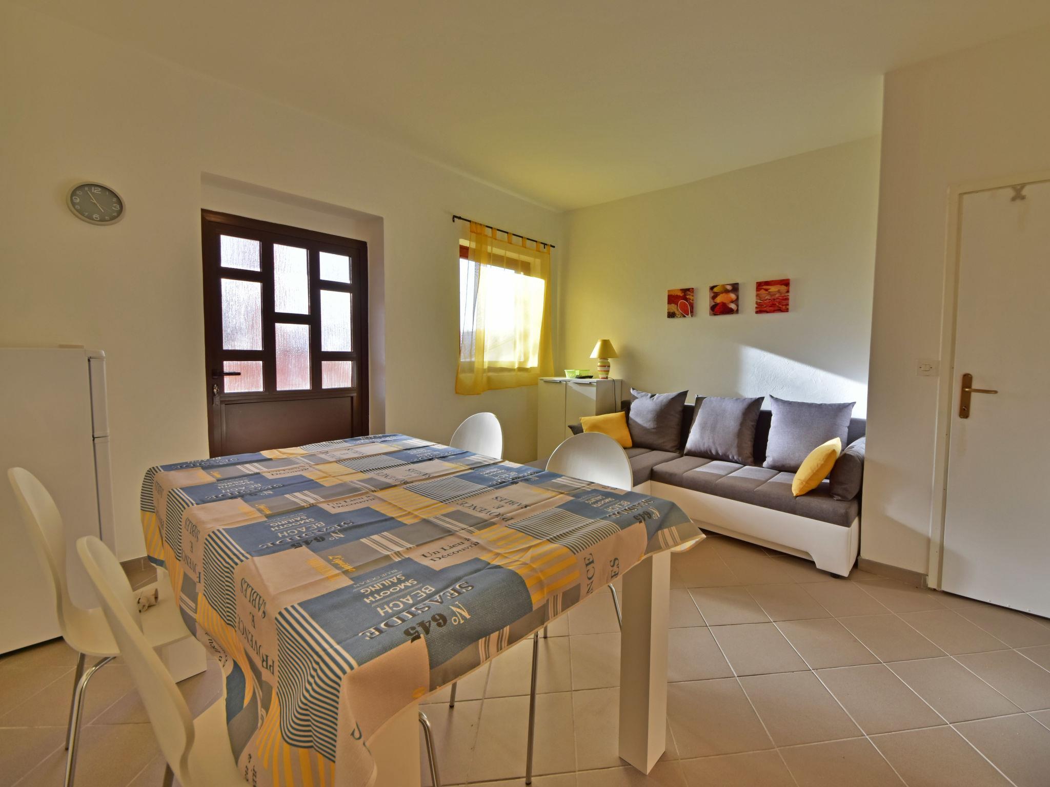2-room apartment 40 m2 on 1st floor. Living/dining room with 1 double sofabed (150 cm, length 200 cm), satellite TV (flat screen), air conditioning. Exit to the terrace. 1 room with 1 french bed (180 cm, length 200 cm). Exit to the balcony. Open kitchen (oven, 4 ceramic glass hob hotplates, freezer, electric coffee machine). Shower/WC. Air-conditioning (extra). No heating option. Balcony 6 m2, terrace 6 m2, roofed. Terrace furniture. View of the sea. Facilities: Internet (WiFi, free).