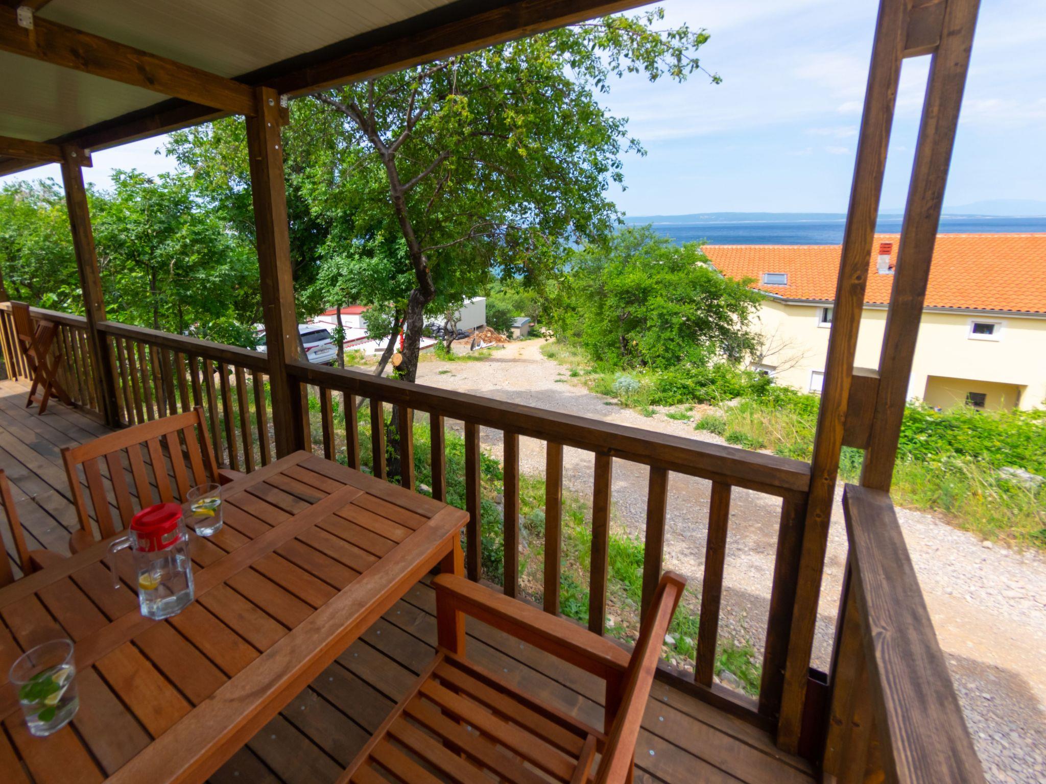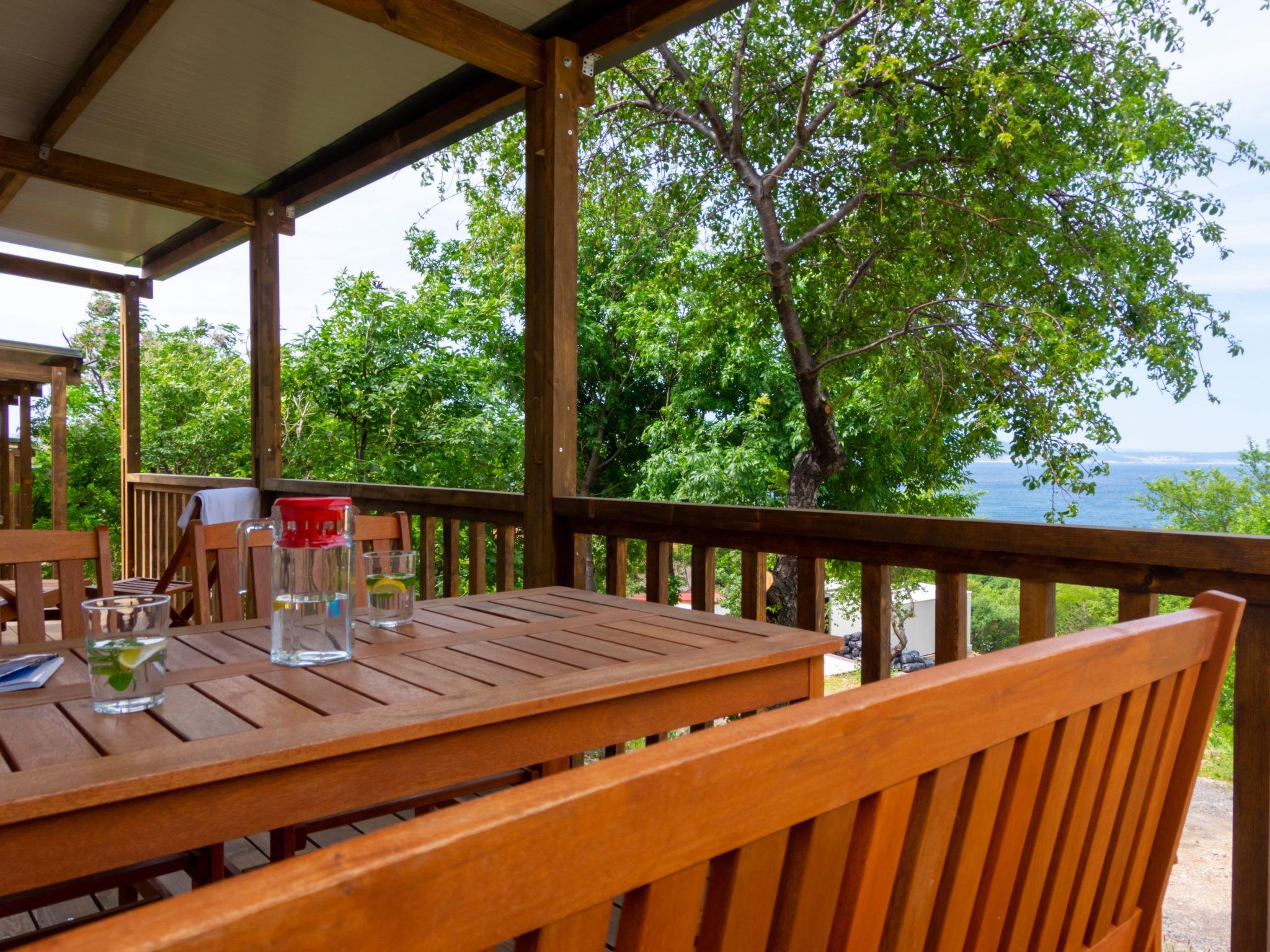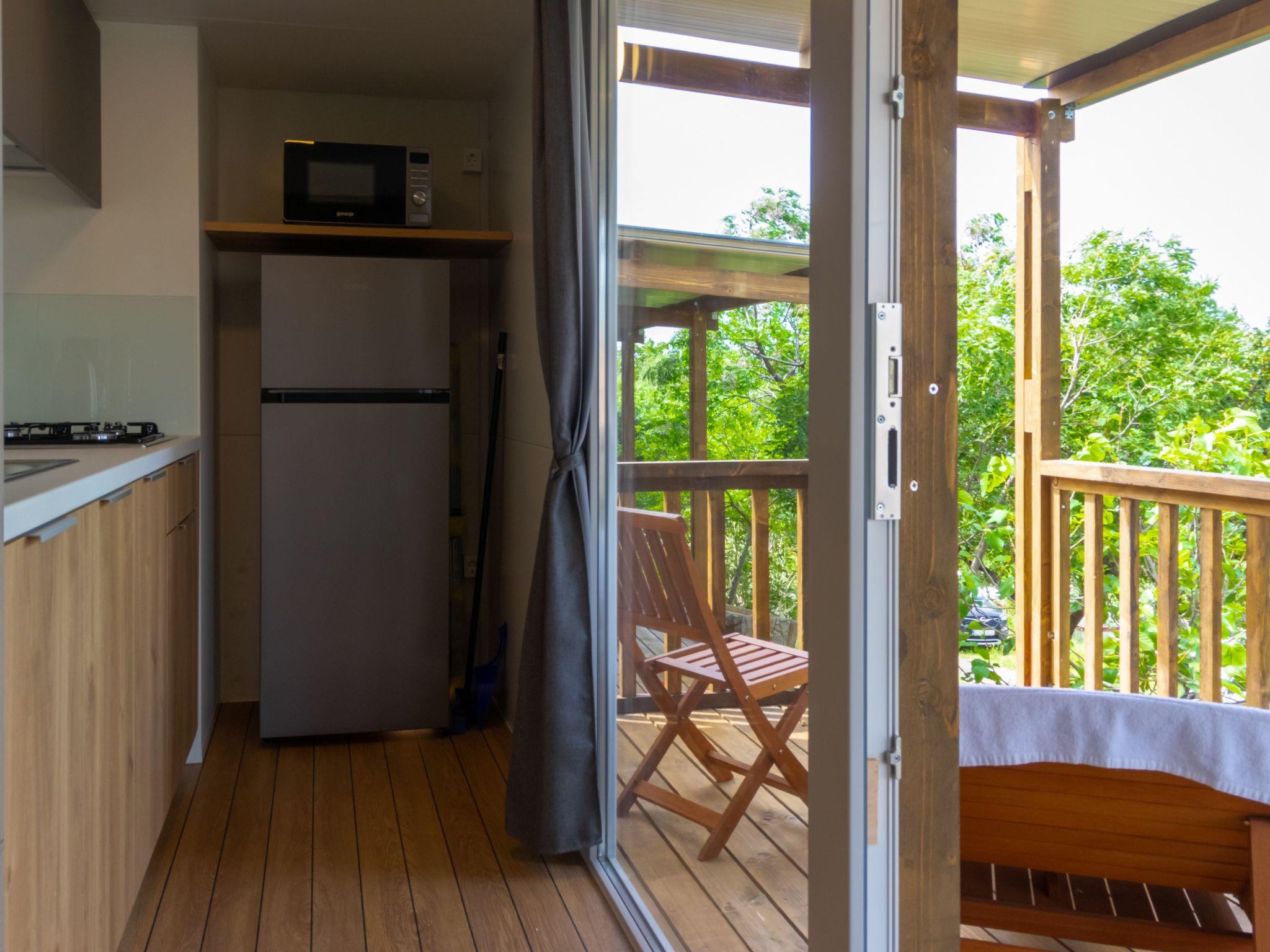 In front of each mobile home there is a wooden terrace with table and chairs. A parking space is available in front of the accommodation.
