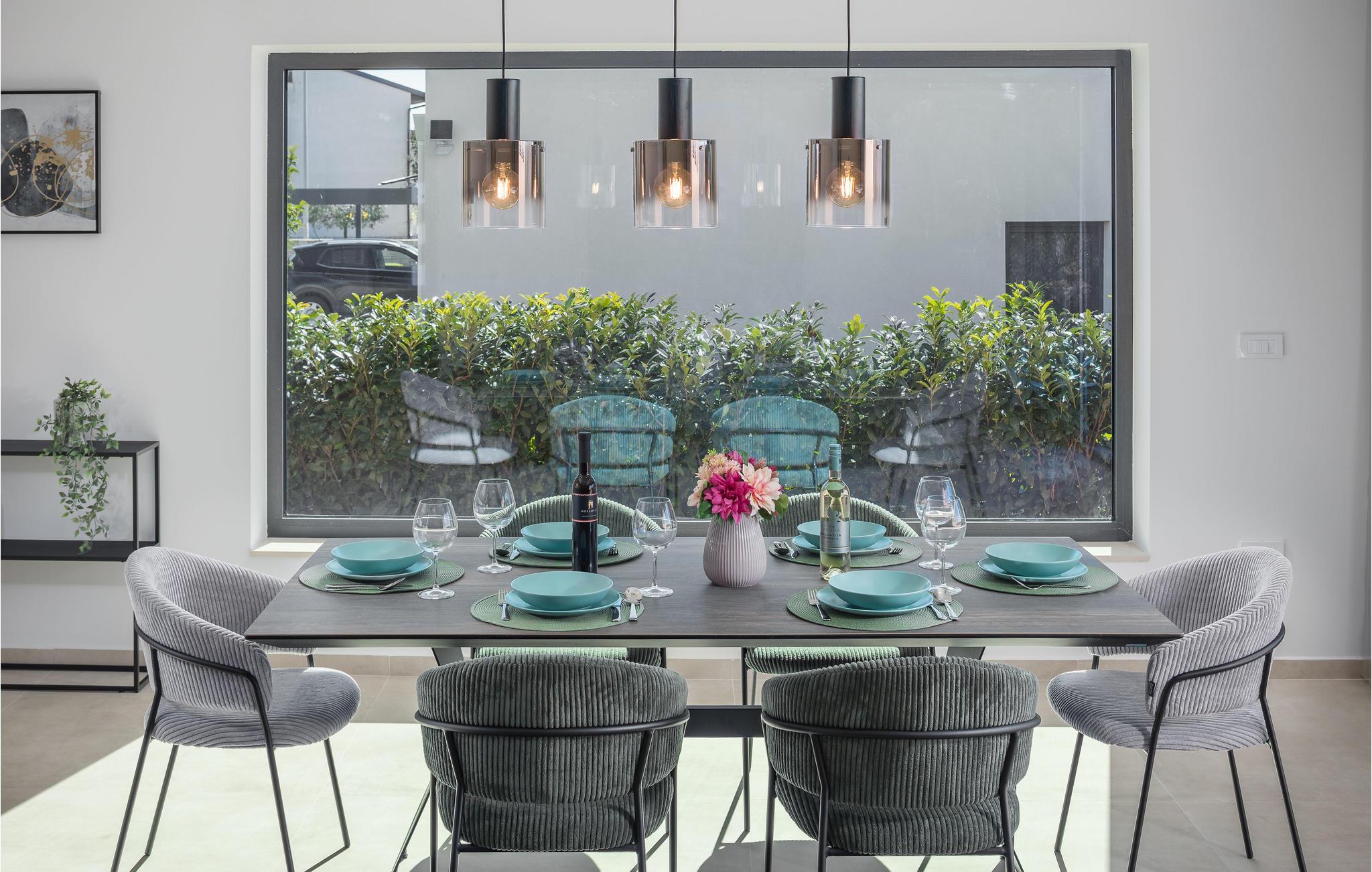Det dejlige hus er det optimale sted for jeres ferie, hvor samvær og afslapning er i fokus. Lyse og luftige værelser, moderne møbler og overordnet stilfuld indretning med charmerende farveaccenter er ingredienserne, der gør feriedrømme til virkelighed her. Føl jer godt tilpas med familien og forkæl jer selv med en velfortjent pause. på grund af store panoramavinduer kan I nyde en vidunderlig udsigt over det fri, mens I spiser sammen. Efter en skøn feriedag inviterer sofalandskabet til at slappe af sammen med en god film.