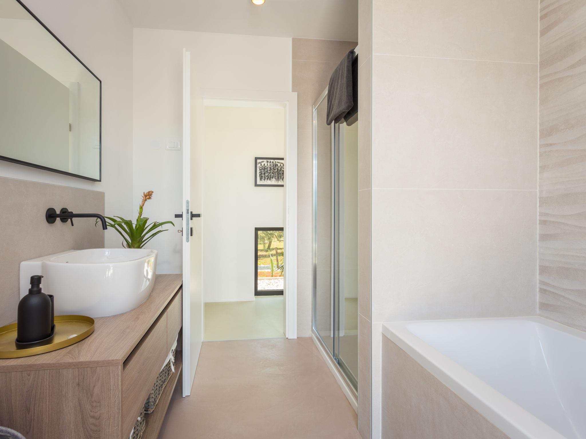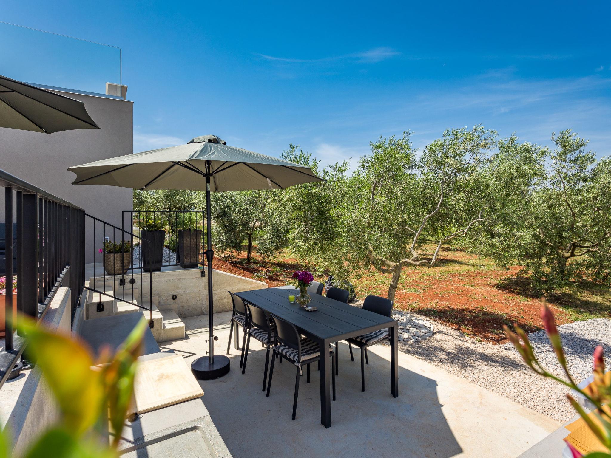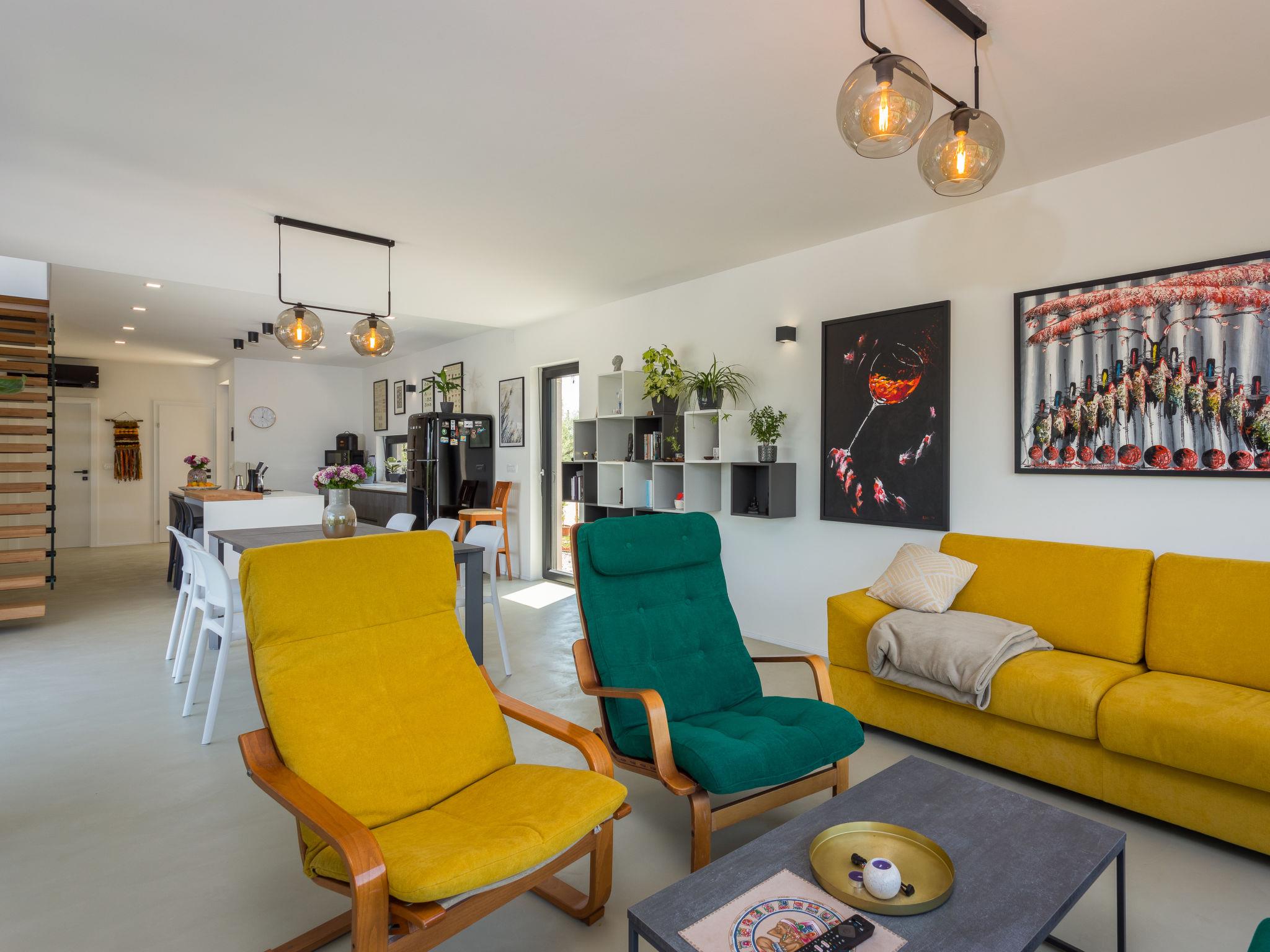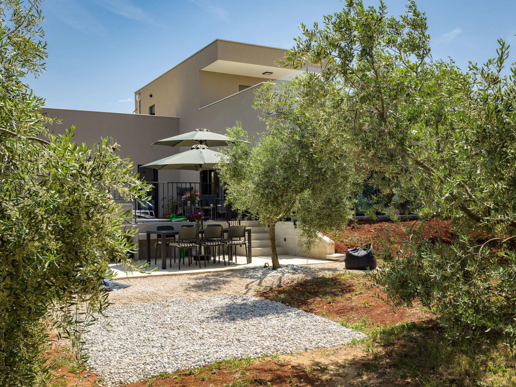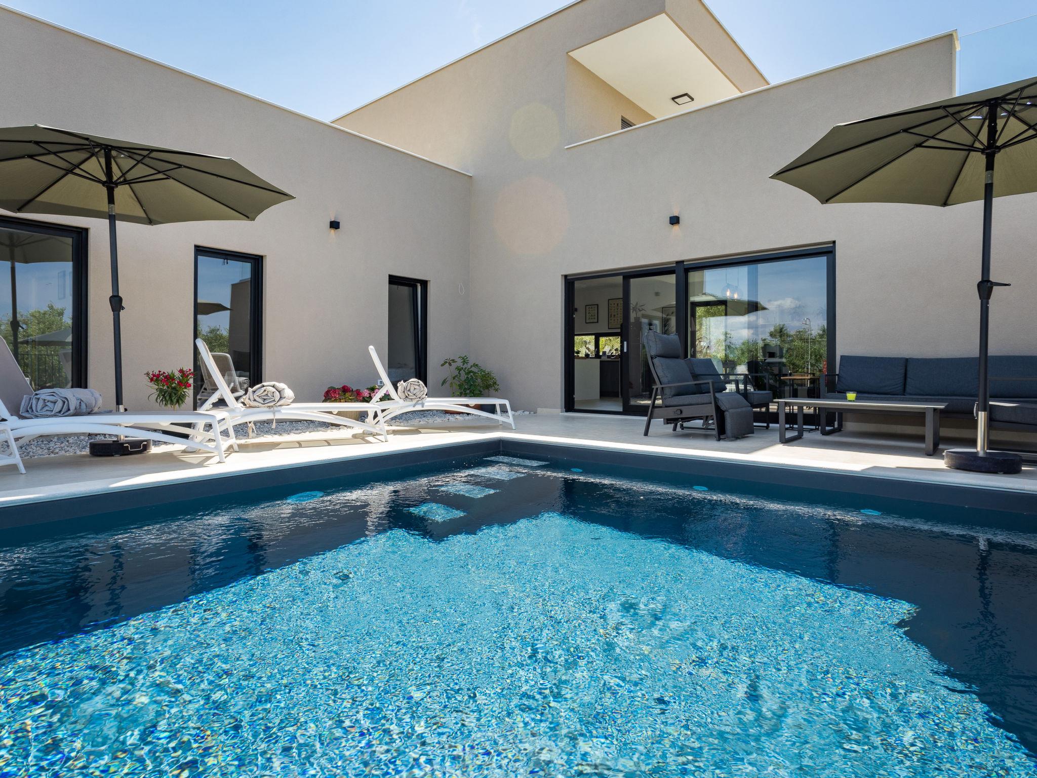 Villa "Altalune", 2 storeys, built in 2022. In the district of Vidal 1 km from the centre of Novigrad, in a secluded, quiet position, 1 km from the sea, 1 km from the beach. Private: property 6'000 m2 with wildlife garden and trees, swimming pool angular (8 x 4 m, depth 150 cm, seasonal availability: 01.May. - 15.Oct.) with internal staircase. Outdoor shower, terrace (80 m2), garden furniture, pool maintenance by the owner/gardener. In the house: internet access, trampoline, washing machine, tumble dryer. Parking (for 2 cars) at the house on the premises. Shop 1 km, supermarket 1 km, restaurant 1 km, bus stop 1.7 km, pebble beach 1 km, shingle beach 1 km, rocky beach 1 km, concrete beach 1 km. Please note: airfield 75 km from the property.